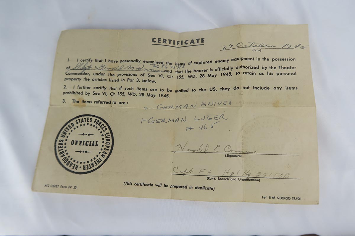 SOLD – RARE Police Simson Luger Rig with Capture Doc