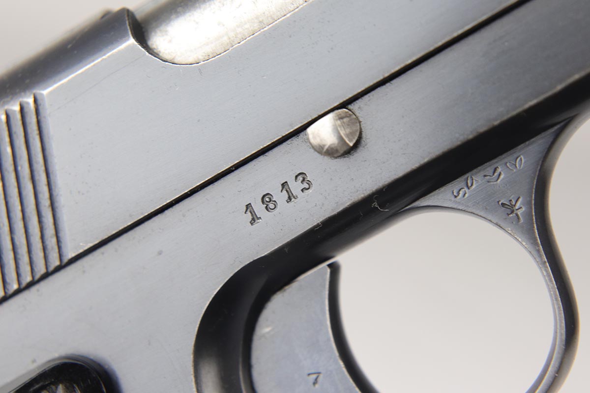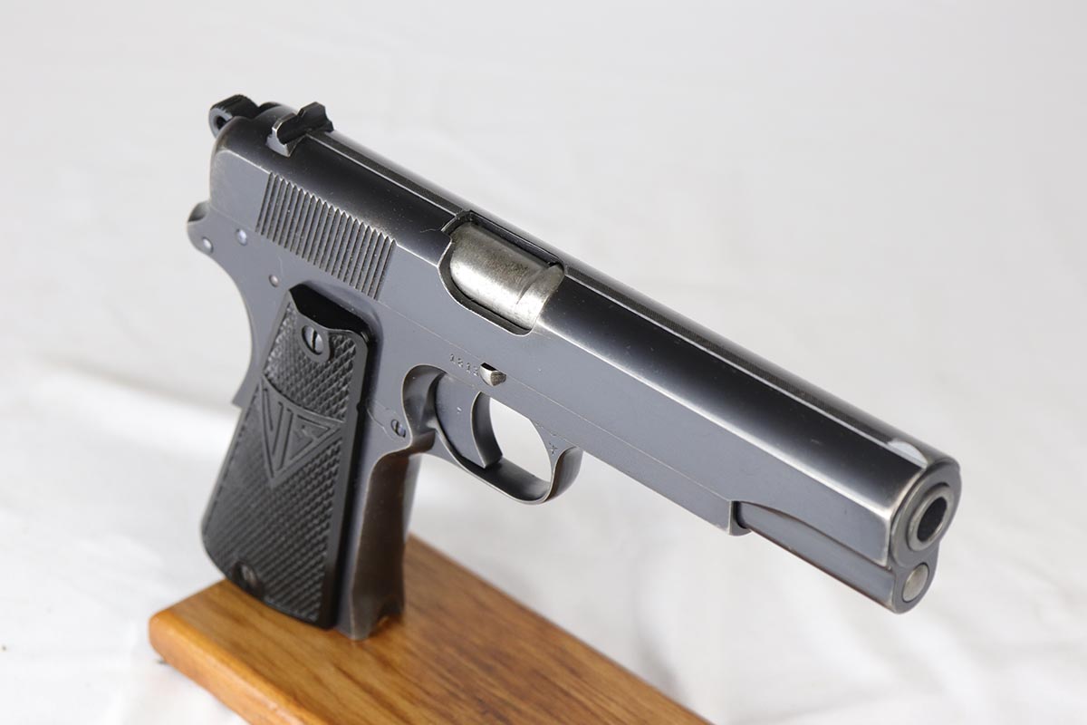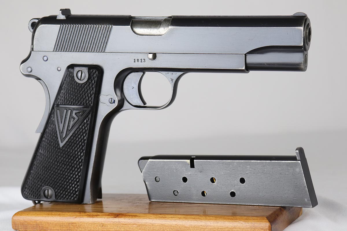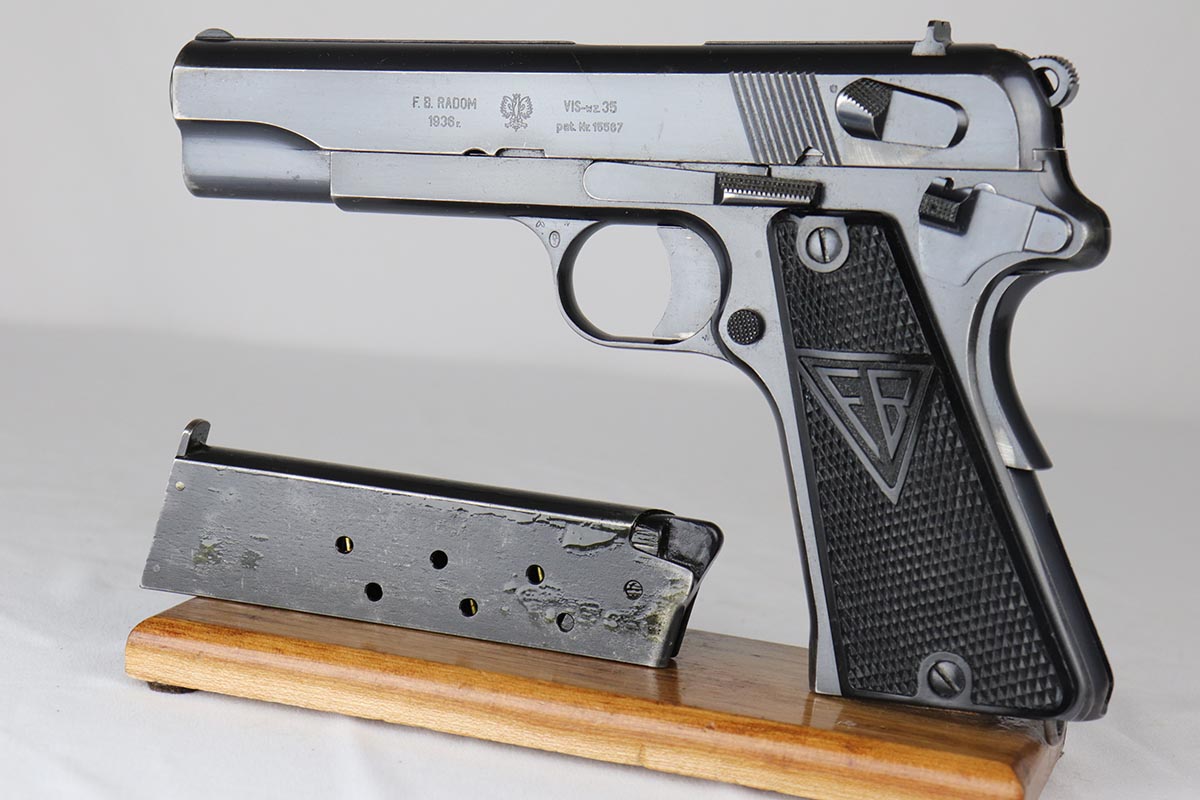 4/10/18 – This is a gorgeous and extremely hard to find Polish Eagle Radom manufactured in 1936. There were only 5,500 of these Radom’s produced in 1936, and this one is on the early end of that range. It’s the 1813th ever made! The original finish rates at 96-97% with minor muzzle wear and edge thinning, as well as a spot of thinning on the front strap and trigger guard. All matching parts. Scarce G2 proofed magazine. Excellent grips and minty bore!