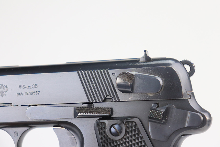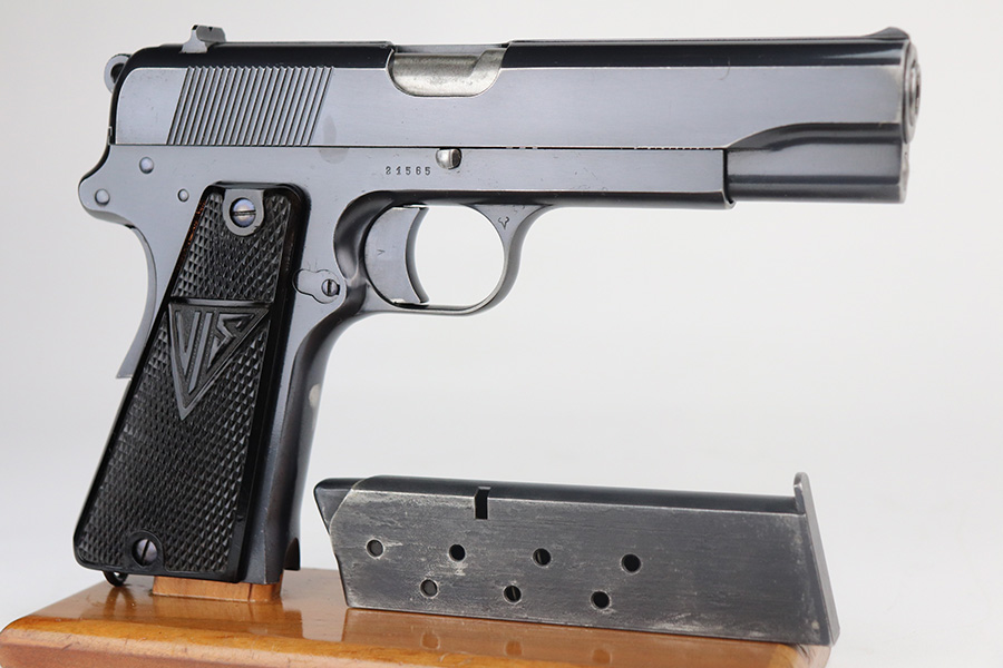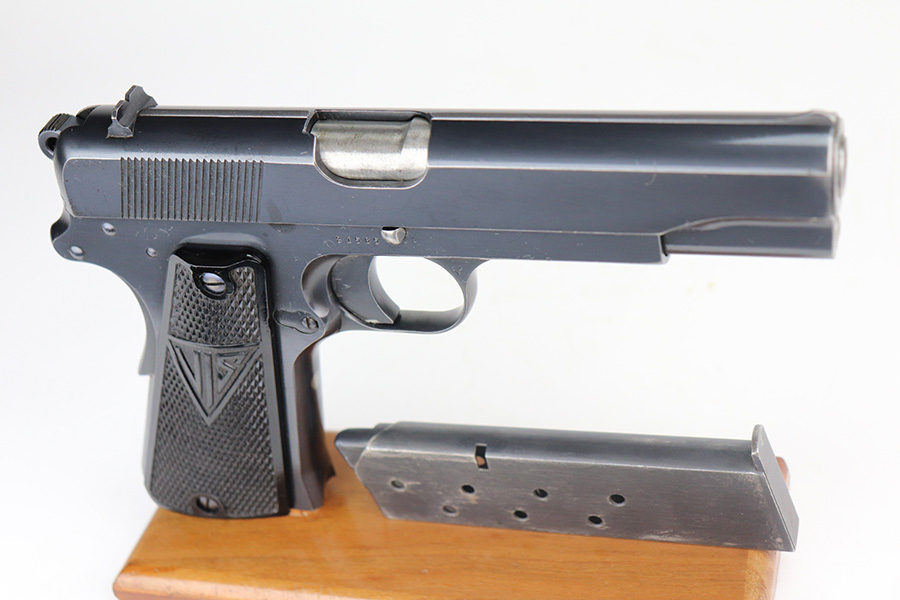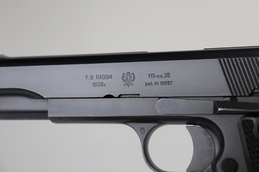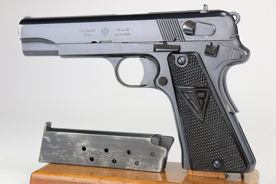 6/25/21 – This is a very nice example of the rare and ever popular Polish Eagle Radom, made in 1938. These were some of the finest made pistols of the era and some of the most requested pistols of 1930s/40s Europe. This particular example is all matching and original with just a few small patches of wear on the left side of the muzzle, front strap and trigger guard. Minty bore, barely looks used. Proper, rare magazine with G2 proof on toe. Terrific black plastic grips.