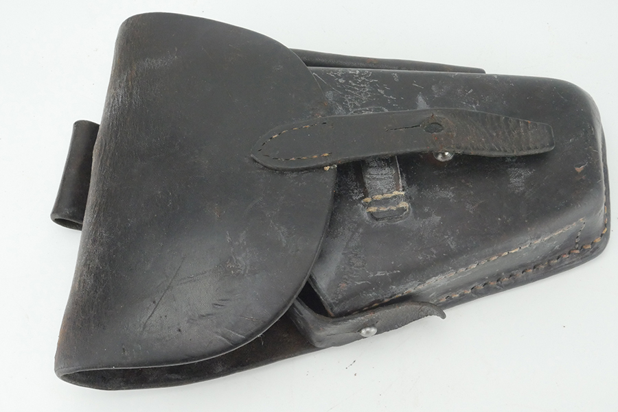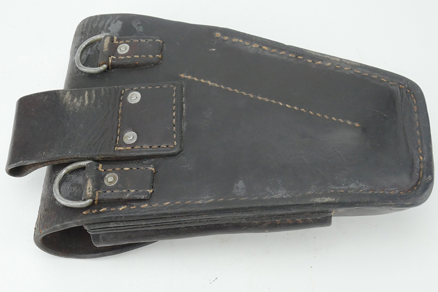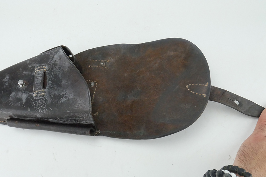 5/21/24 – This is a very nice example of a rare, pre-WW2 leather holster for a Polish Eagle Radom VIS 35. Overall, the leather is soft and malleable. No stitching issues. Some light white mold on the front. No markings.