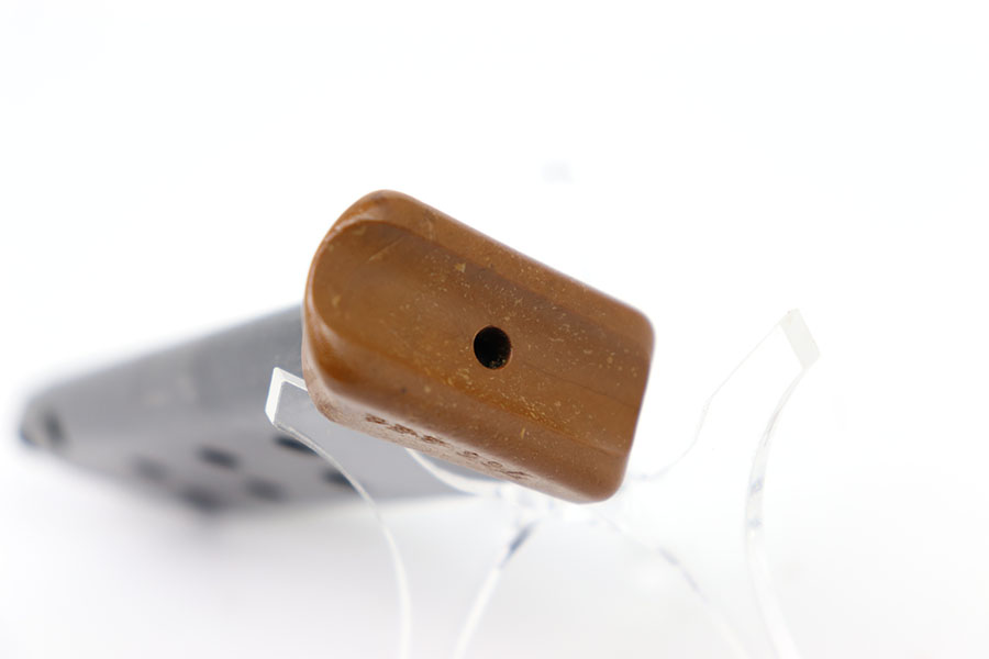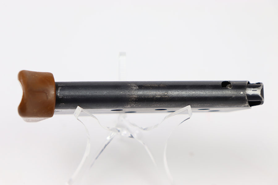 1/16/2024- This is a rare, early pre WW2 production Walther PPK magazine. The bakelite finger extension bottom is a solid light brown color and slab side in style. This goes with PPK’s made from 1930 to about 1933. The right side of the finger extension is numbered in the typical Reichsbank style. The serial number indicates this magazine goes with a early Walther PPK #766244. They are hard to find and desirable to collectors. It has a high polished blued tube in minty condition. Correct Banner-only logo. Excellent spring. 7.65 mm or 32 caliber.