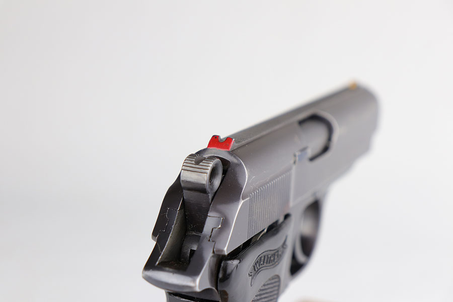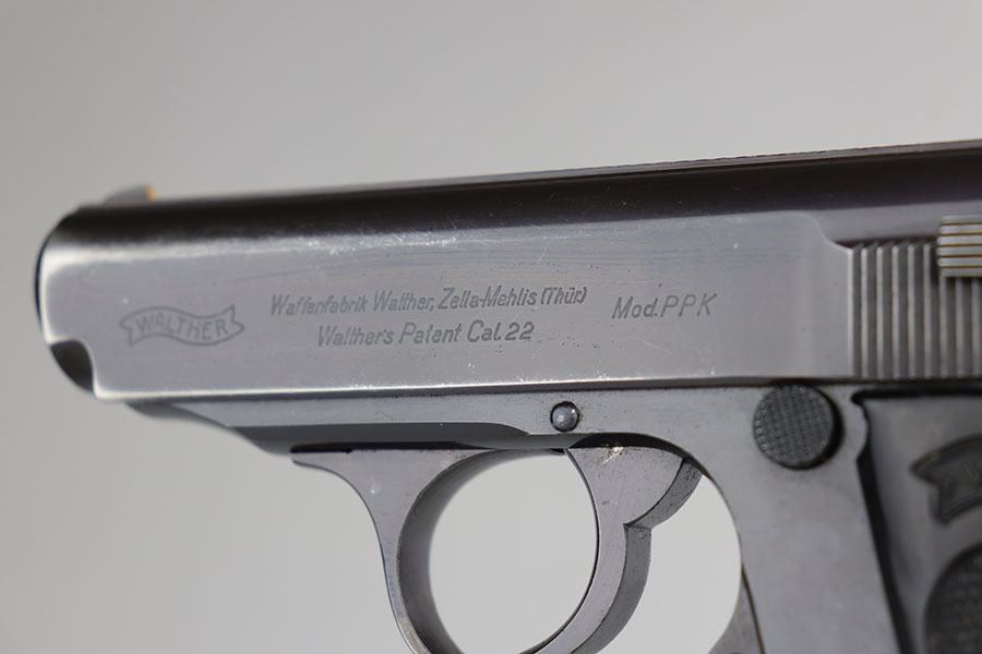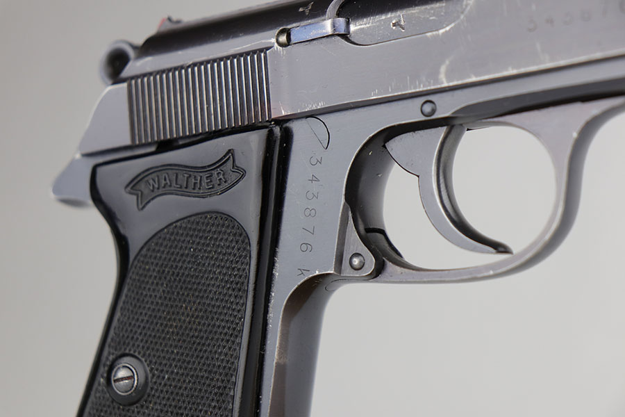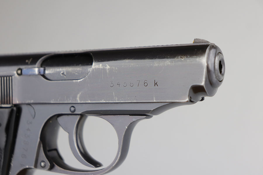7/1/20 – This is a rare, wartime Reichsbank Walther PPK with the original matching magazine. There were only about 100 made mid or late war, and this one is especially uncommon as it’s chambered in .22LR. it has about 92-94% of the high-polish blue, with muzzle and edge wear on both sides of the slide. Mint bore. Magazine numbered on the side of the finger extension and matching to the pistol. Excellent grip with no cracks or chips.