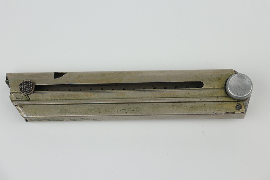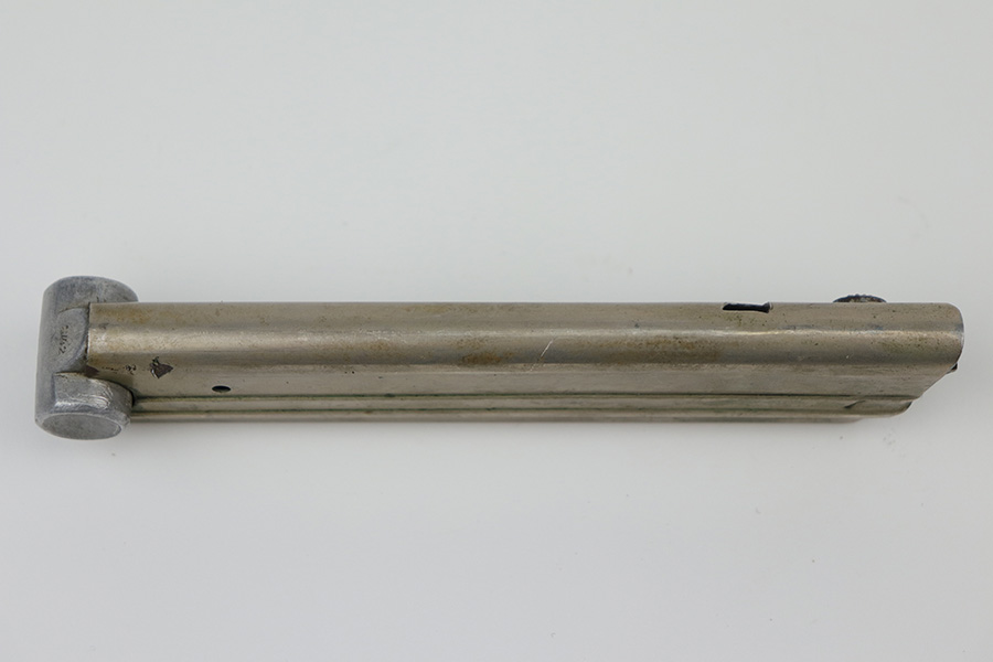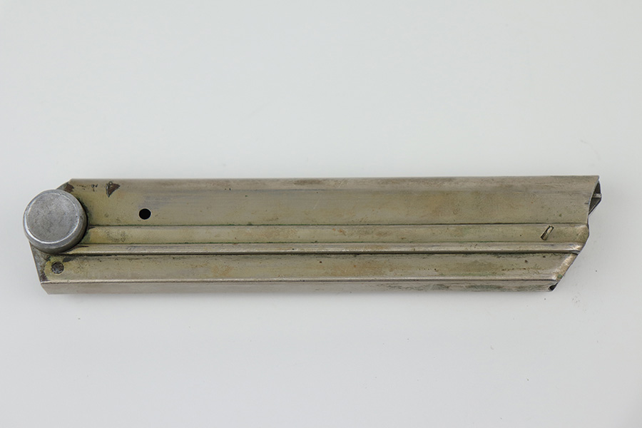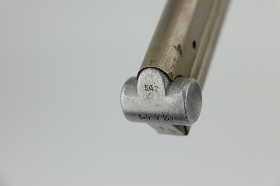 10/19/21 – This is a rare variation G Date luger magazine from pre WW2. The magazine features a W/154 eagle proof stamp from 1935, along with a serial number, a number 1, and a S/42 armory replacement stamp. It’s likely that this magazine was issued in 1935, and then later re-issued by the Germans later on during the war. The magazine is in great condition with a strong spring and no rust or pitting.