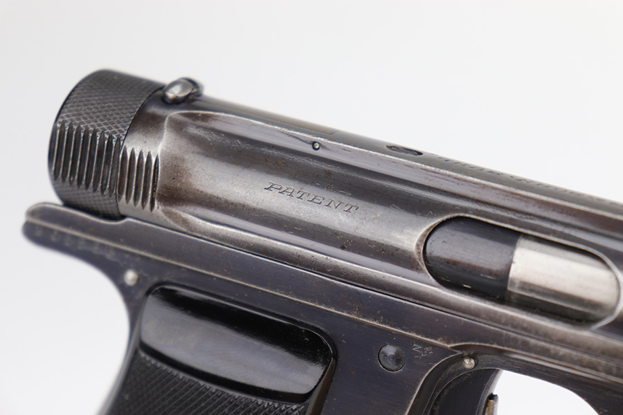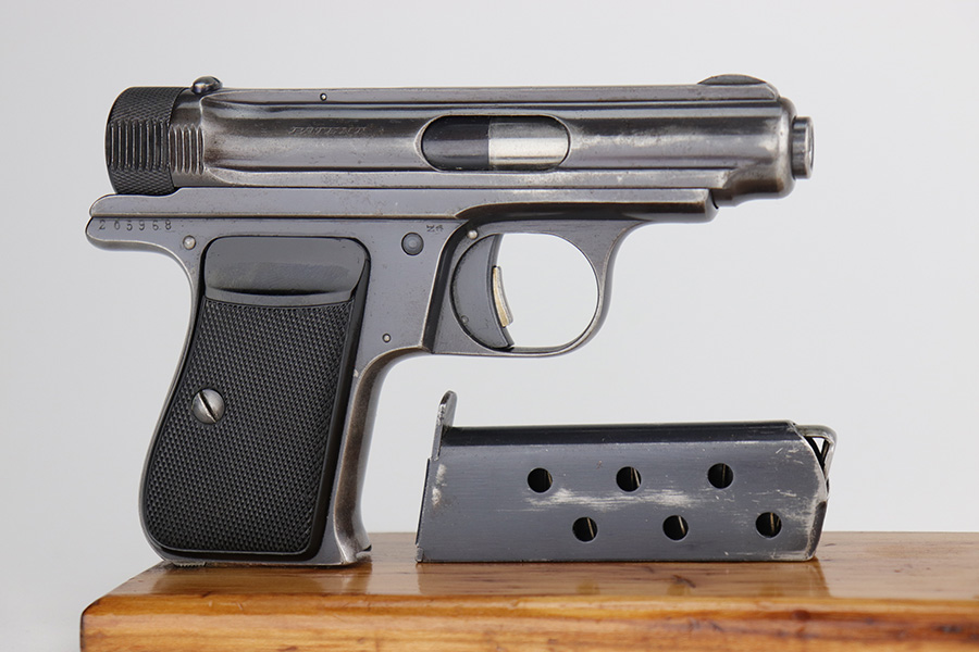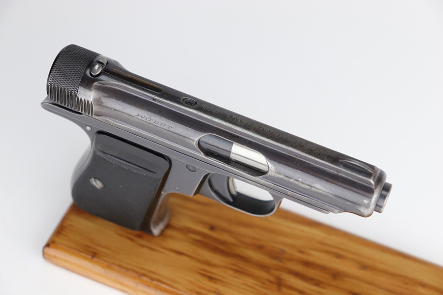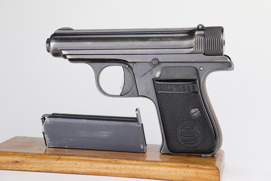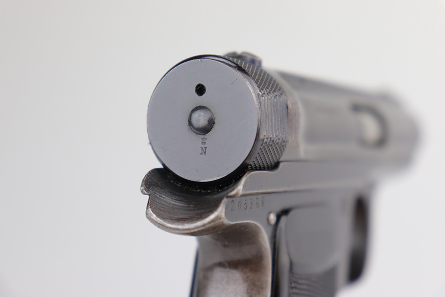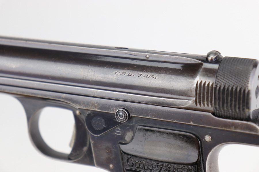 1/27/23 – This is a nice example of a rare Sauer Behorden, manufactured in the 1930’s and chambered in 7.65mm. It is all matching and has the proper “Crown N” proofs throughout. Most of these went to the police, but this one may have been sold in the commercial market – it lacks police proofs of any kind. It has retained roughly 75% of its original high polish finish. There is obvious finish loss throughout, concentrated mostly on the grip straps and along the round edges of the slide. Comes with excellent period-correct black bakelite grips and one proper magazine. Mint bore.