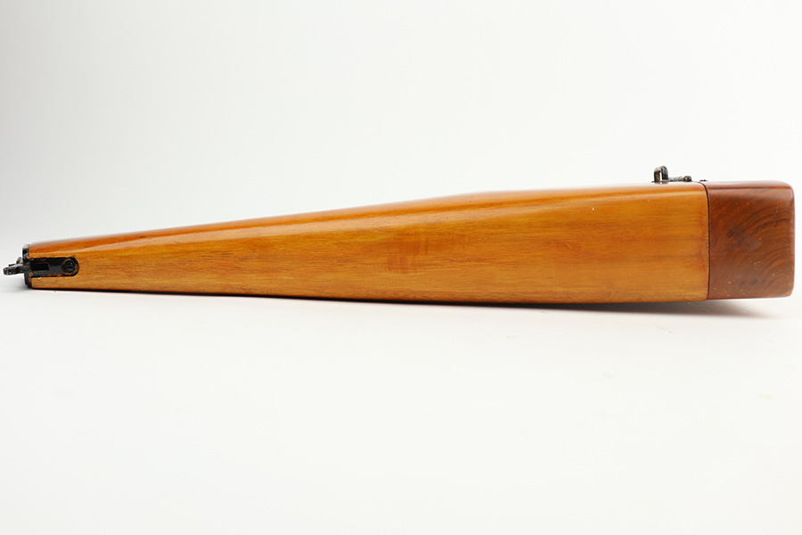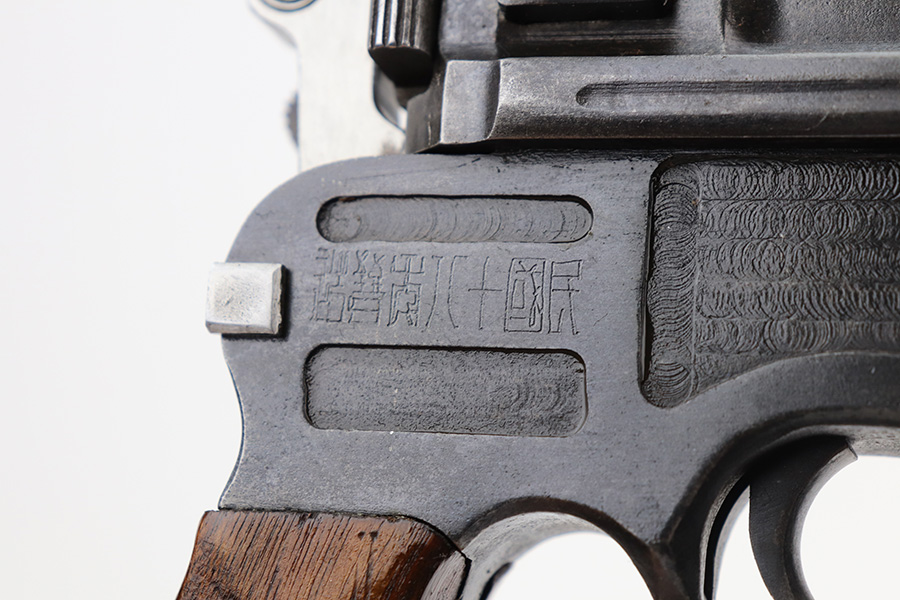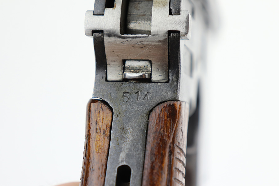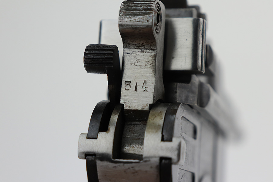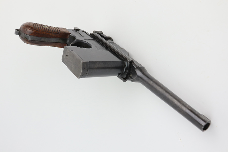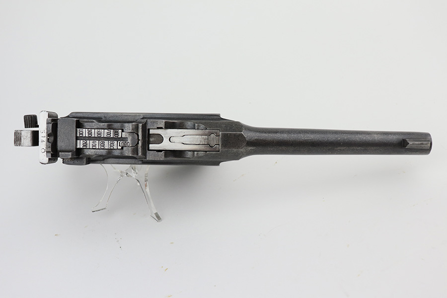 8/17/21 – This is a rare and interesting Shanxi Type 17 rig as produced in the late 1980s as a copy of the ultra rare examples from the 1920s. From Forgotten Weapons, “The best known and most highly valued of the Warlord Era Chinese pistols is undoubtedly the .45 ACP copy of the C96 Mauser. These were made at the Taiyuan Arsenal in Shanxi Province between 1928 and 1931, with more than 8,000 made in total. They were the product of a proper Western-style production line, and Taiyuan Arsenal actually made standard C96 copies in 7.63mm Mauser before scaling up to the .45 ACP version. This change was made because the Arsenal was also making Thompson submachine guns, and it made sense to have caliber compatibility with their C96-style pistols. The result was a truly massive hand cannon, holding 10 rounds of ammunition in its fixed magazine, and fitted with an equally large combination shoulder stock and holster.” This particular gun shows minor thinning to the finish throughout, with most of the wear along the barrel. Matching numbers throughout, including barrel, frame, trigger, hammer, etc. Strong, shiny bore. Comes with an unmarked stock, also a reproduction.