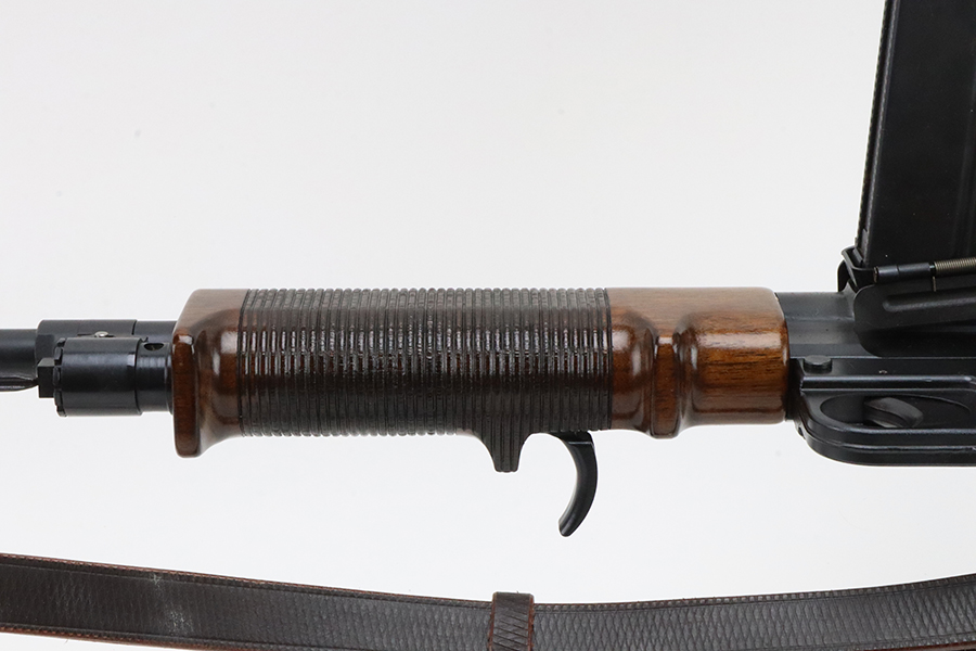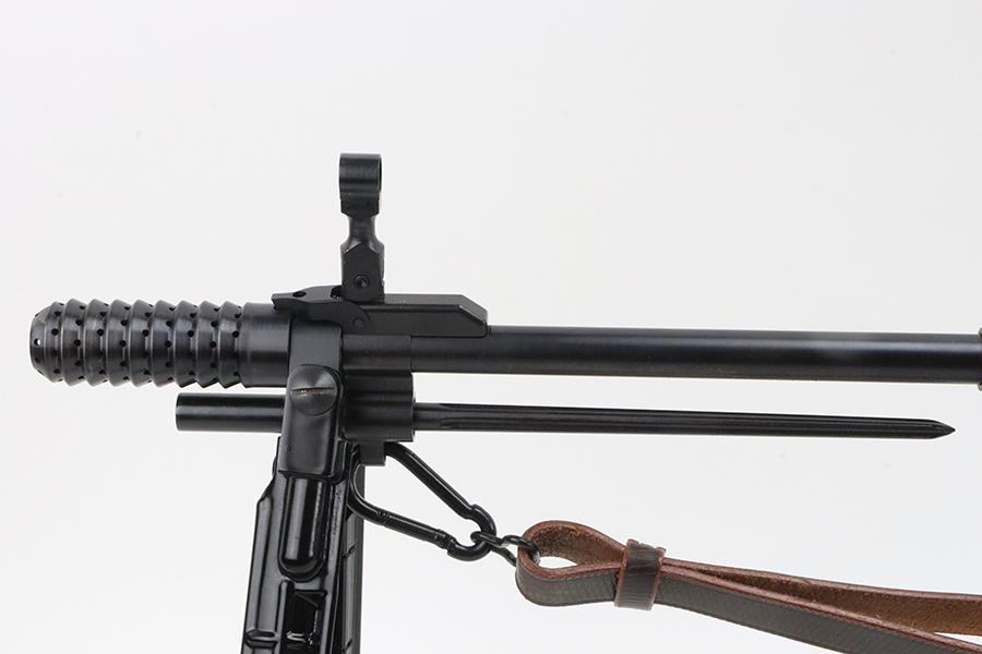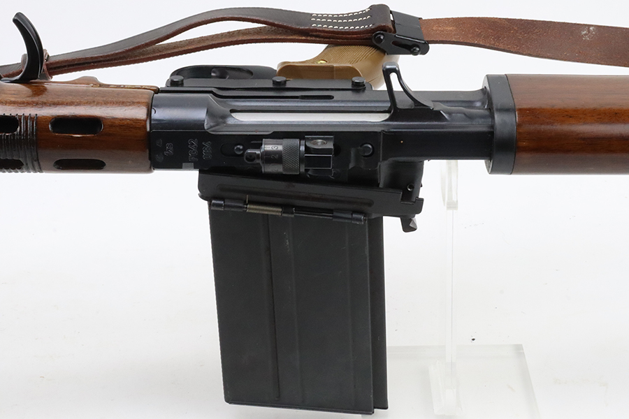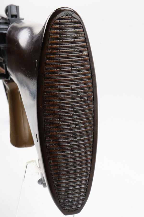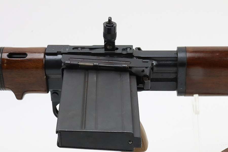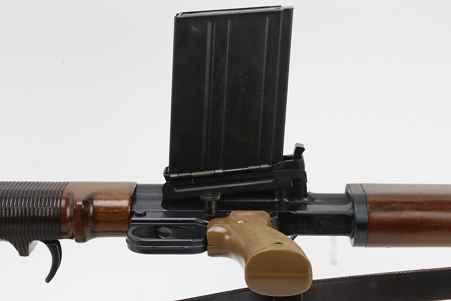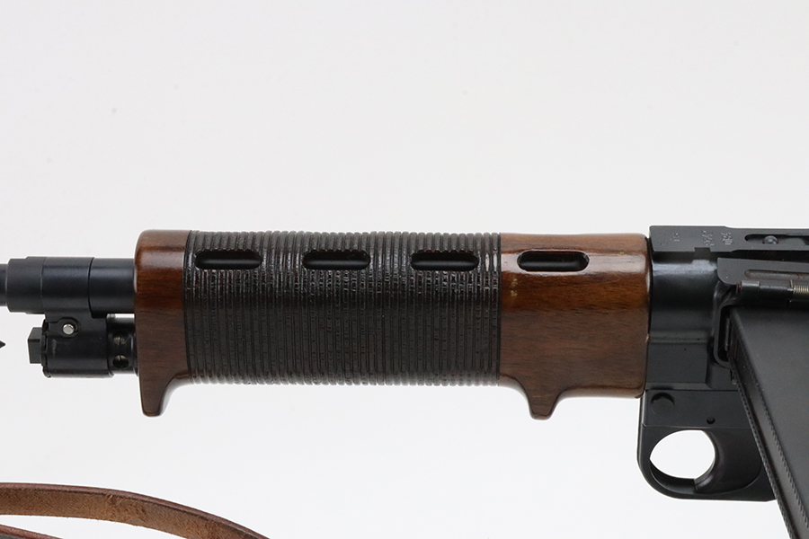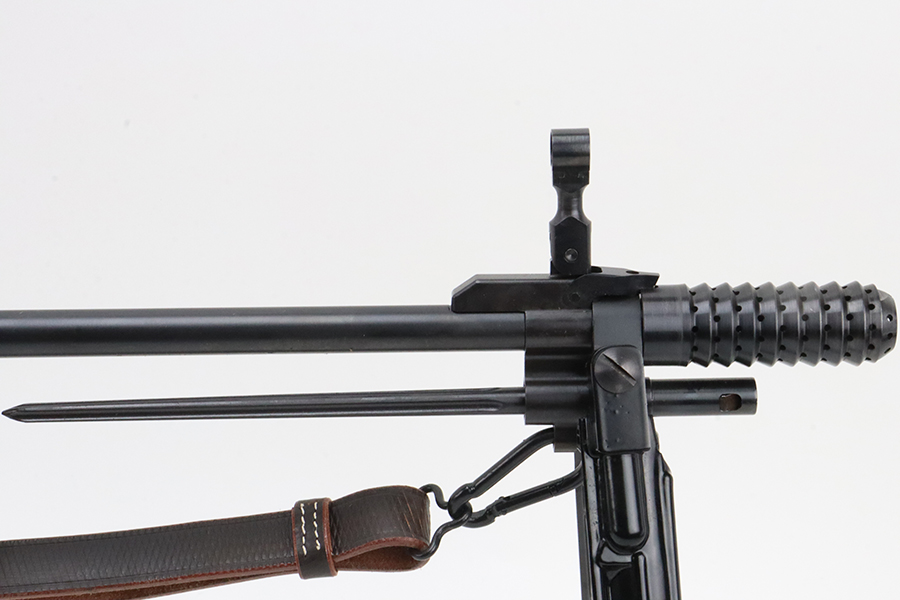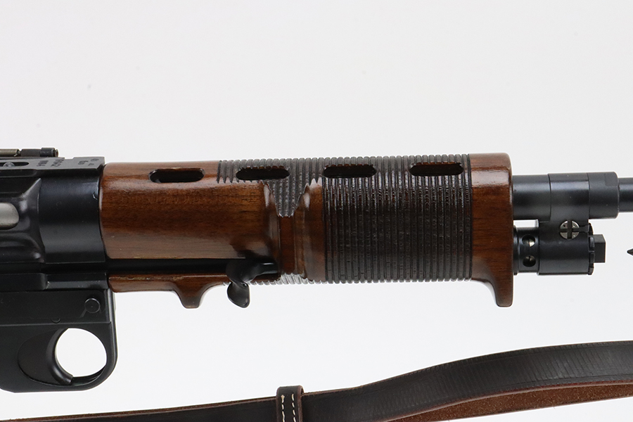 2/20/24 – This is a gorgeous new production of the iconic German FG 42, made by SMG Guns in Texas. It’s a second model example with stamped receiver, wooden stock and bi-pod on the front sight block. Fantastic condition all around – bore, wood, bluing. Appears to be unfired or nearly unfired. Chambered for 8mm Mauser, just like the original. FFL required.