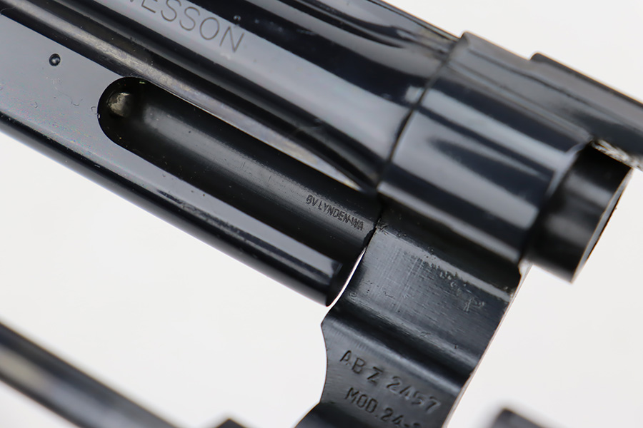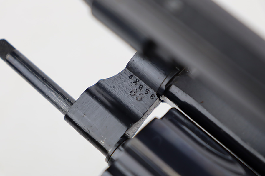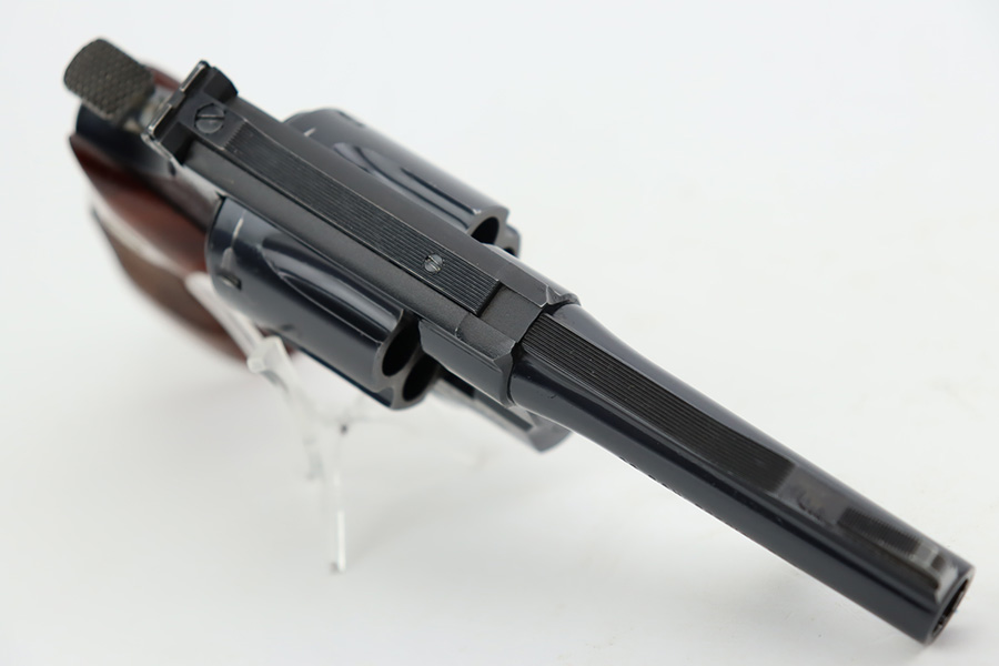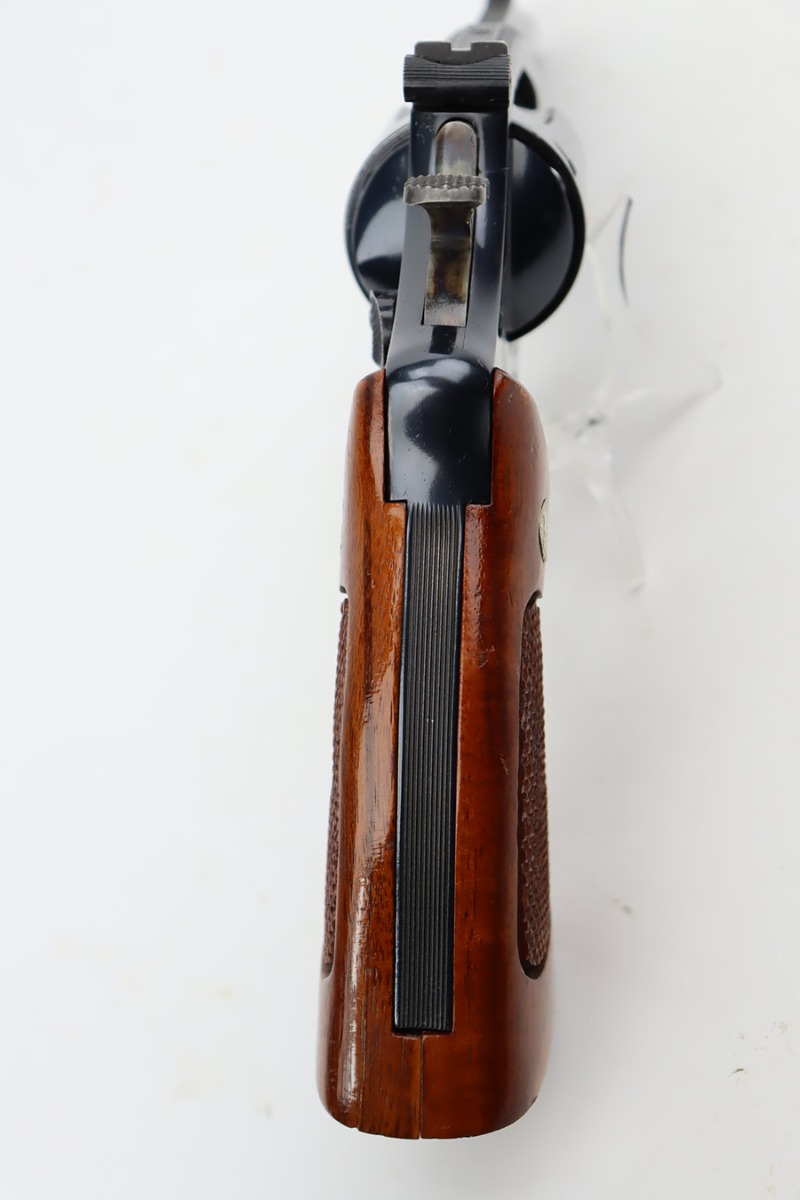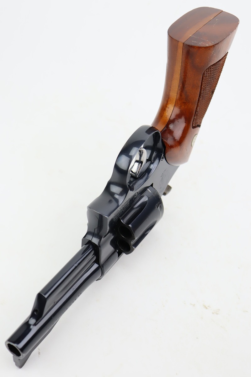 9/11/23 – This is a minty example of a rare Smith & Wesson Model 24-3 revolver. The 24-3 was the reintroduction of the Model 24, with only 7,500 total produced in 1983 and 1984. This one has a 4in barrel, one of only 2,625 made! It has 98-99% of the original blue with only a turn line on the cylinder. Mint bore and excellent grips, with minor wear on the right panel. Good mechanics. FFL required.