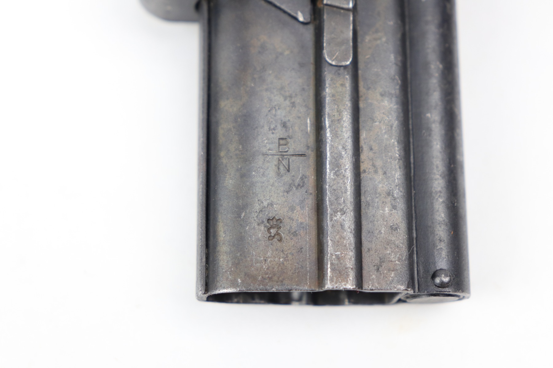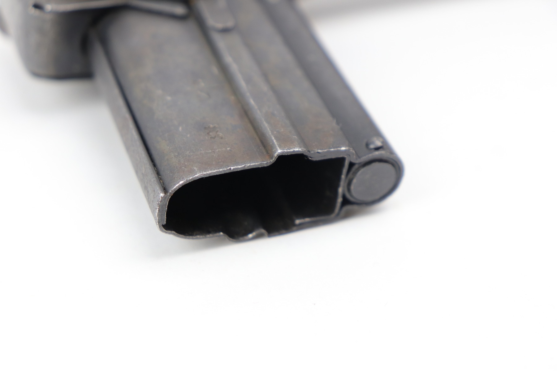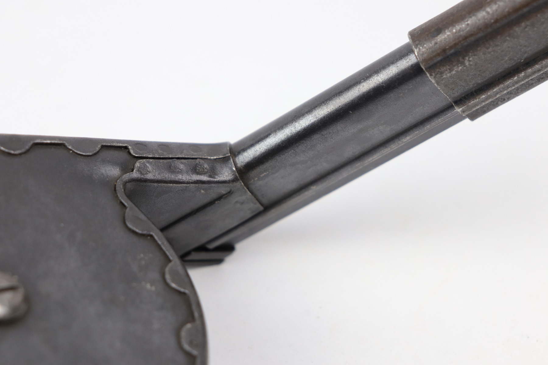 10/6/20 – This is a first model artillery luger snail drum magazine, complete with dust cover and a reproduction loader. The drum seems to be working well and in great overall condition. It is the original drum with dust cover- both marked with the “soccer ball” logo. This is the more scarce, and far more desirable manufacturer, with Bing being much more common. The speed loader is believed to be an excellent quality reproduction. All 3 items included in this listing, priced to sell.