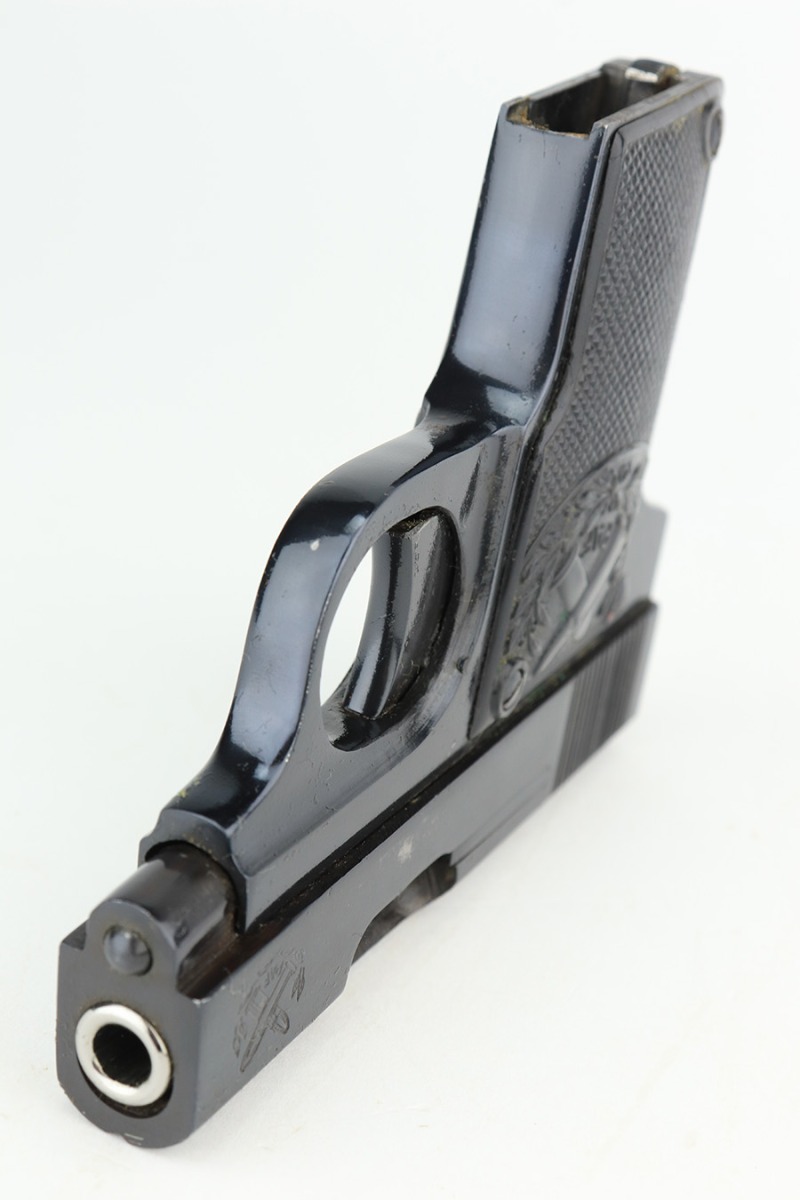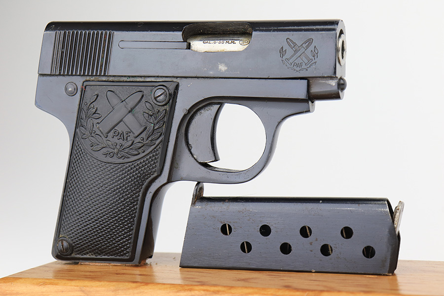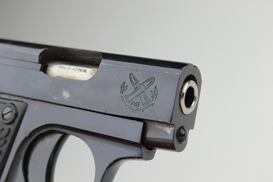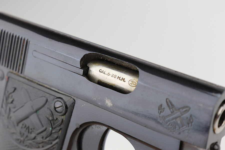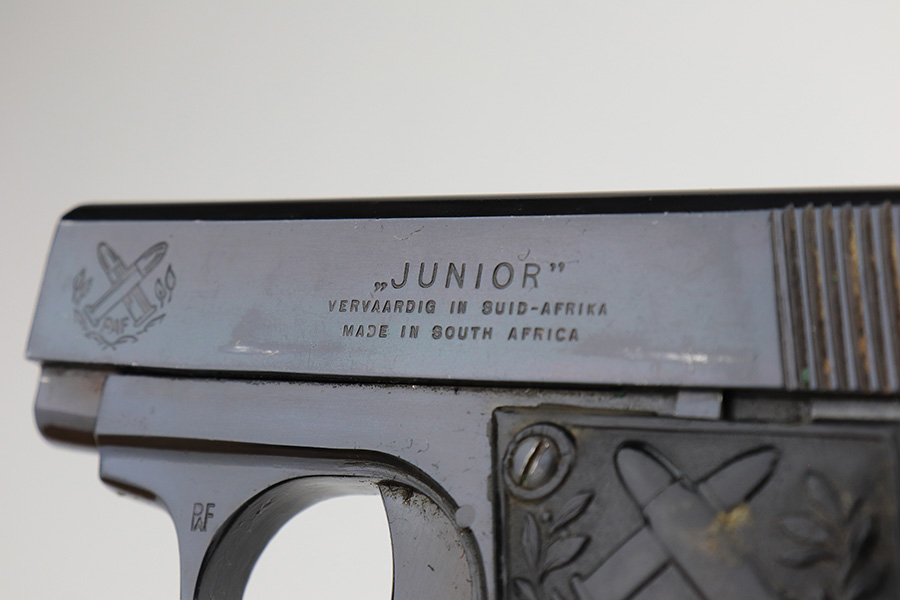 2/27/23 – This is a rare Pretoria Arms Factory “Junior” model pistol, the first commercially produced firearm in South Africa. They were only made from 1954-57, with about 10,000 produced. This one is in near-mint condition with just a spot of wear on the right side of the slide. Excellent bore. The grips are original and show minor handling wear but no major cracks. More info on their history here: https://unblinkingeye.com/Guns/PAF/paf.html