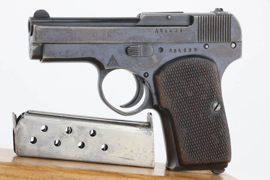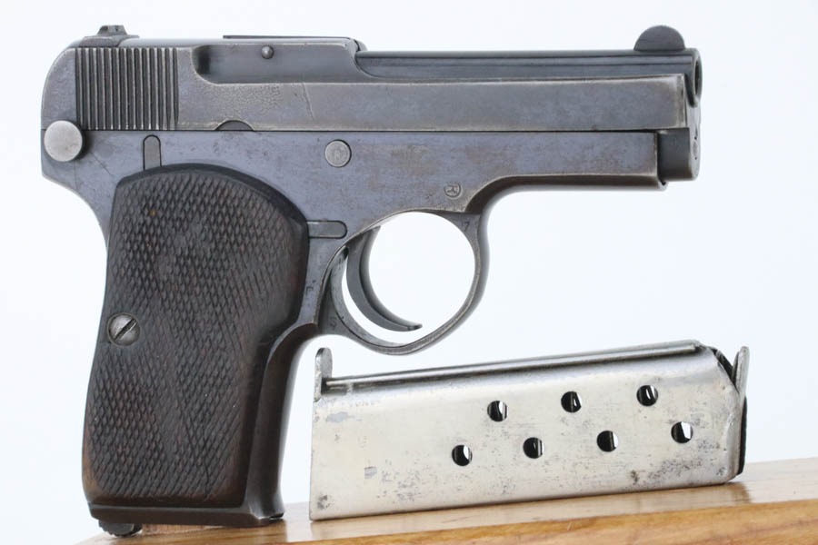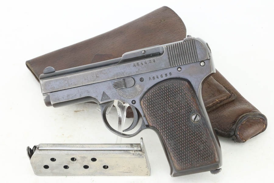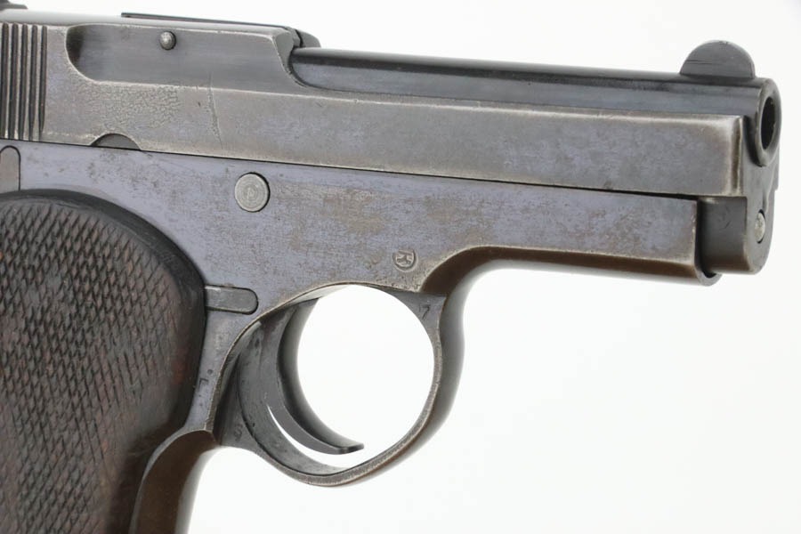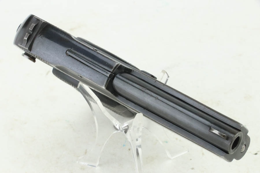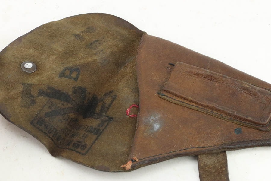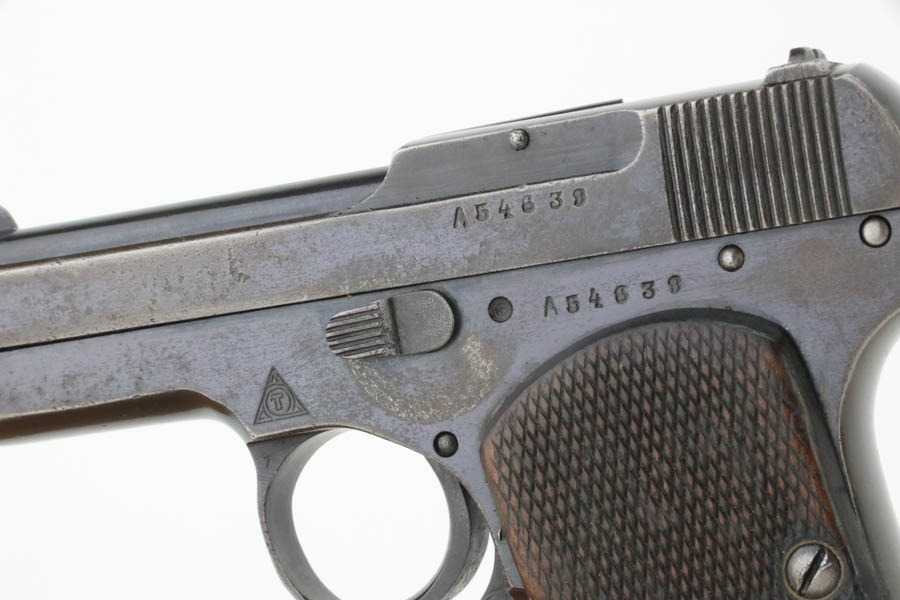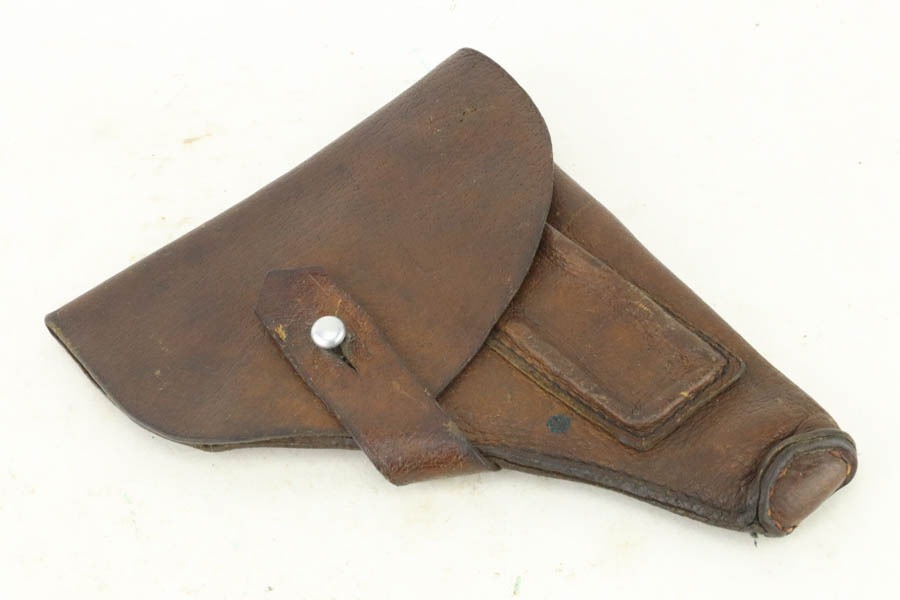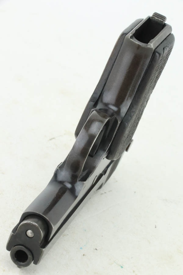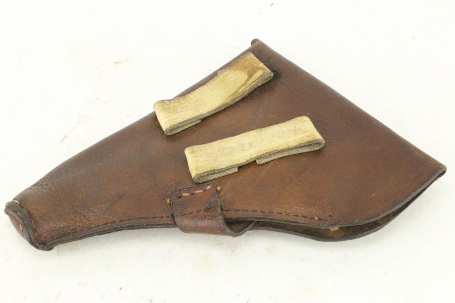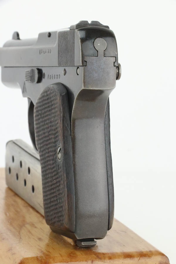 10/23/2024 – For sale is a rare, Soviet Korovin TK pistol made during the Inter War period. The Korovin TK pistol is considered the first successful semi auto issued to the Soviet military. These pistols were treated as how Germans would with the ppk. They were presented to officers and as gifts, but also were used by NKVD officers. The pistol has seem some hard use and the slide has lost the majority of its finish. The sides are well worn with a hint of bluing left. The bluing on the frame has started to age and turning grey and brown. There are spots of oxidation visible and wear on the path of the safety. The grips are well worn but there is a crack on the right panel. The barrel still retains a good bit of its bluing. The bore is bright but frosted. The holster well used and worn. There aren’t any major flaws. The inside of the flap is stamped with Cyrillic that we cannot decipher. The holster does not seem to be original to the Korovin pistol when compared to other examples but the pistol fits nicely inside. The belt loops look to be replacements as they are not the same finish as the rest of the holster and the stitching is rough and also a different color.