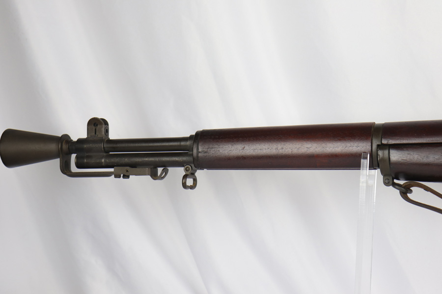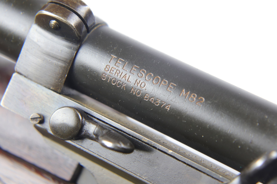 11/9/18 – This is a very rare and desirable Springfield M1C Garand Sniper rifle from the tail end of World War II. Manufactured in early 1945 with late 1944 barrel, this rifle features original M82 scope with properly numbered and matching scope mount and rail. Developed in 1944, the M1C was the first production-level sniper variant of the M1 Garand semi-automatic rifle. While highly effective as a sniper weapon, the manufacturing process was rather involved, requiring a Springfield receiver to be selected off the production line before heat treating, shipped to Griffin & Howe for base installation, and then returned to the Armory to complete the process. While phased out of production in favor of the M1D, which could be produced in-house by Springfield using finished and surplus M1 rifles, the M1C saw sniper duty through Korea and into Vietnam. There were fewer than 8,000 M1Cs produced and only 4,000 issued. This rifle features original cheek pad and sling, as well as M2 flash hider. The stock has clear crossed cannons cartouche and is marked ‘SA NFR’. The scope has crystal clear optics and is marked ‘Telescope M82’ with serial number. The stock is in great shape, though the rear hand guard does have a thin crack and a small chip in it. Excellent, shiny bore.