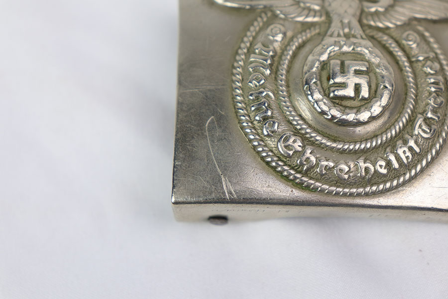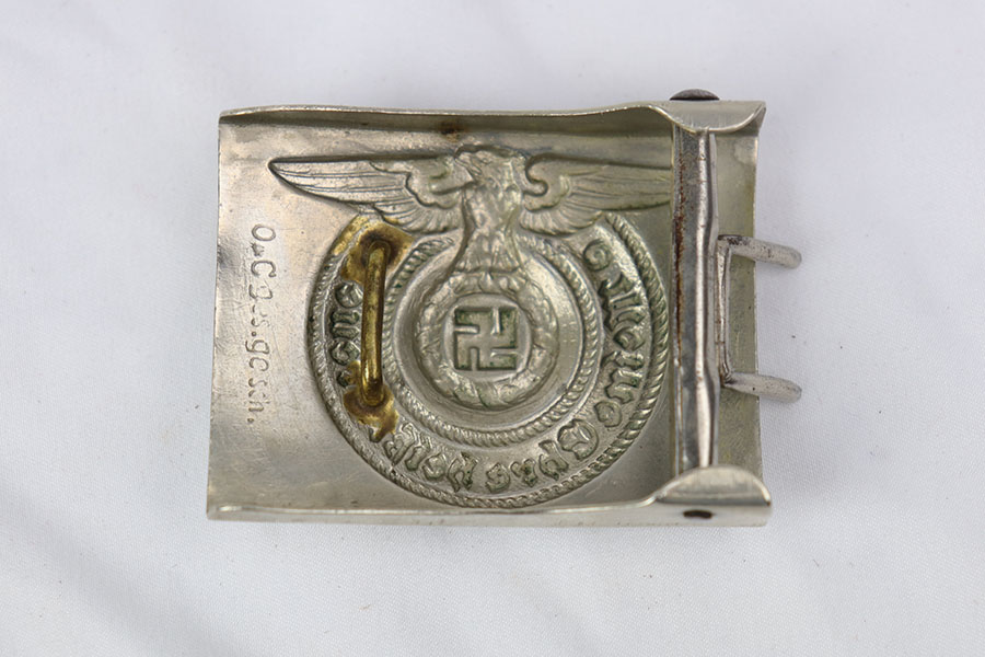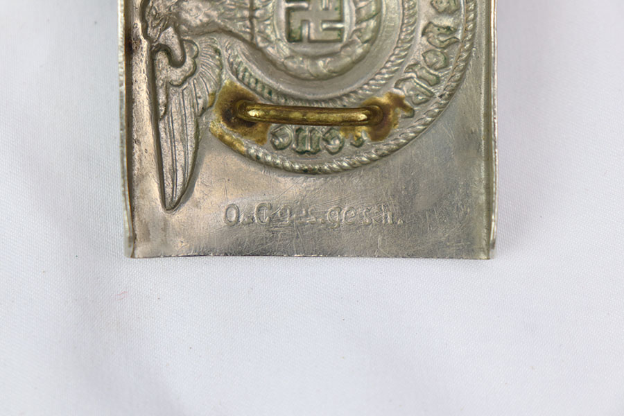 8/11/20 – This is an original WW2 nazi enlisted man’s SS belt buckle. The buckle is made by O&C ges.gesch. and is made in early nickle. There is some minor surface wear / nicks / contact marks and good, normal patina. From around 1927-1931 O&C, Overhoff & Cie, were the exclusive makers of these belt buckles.