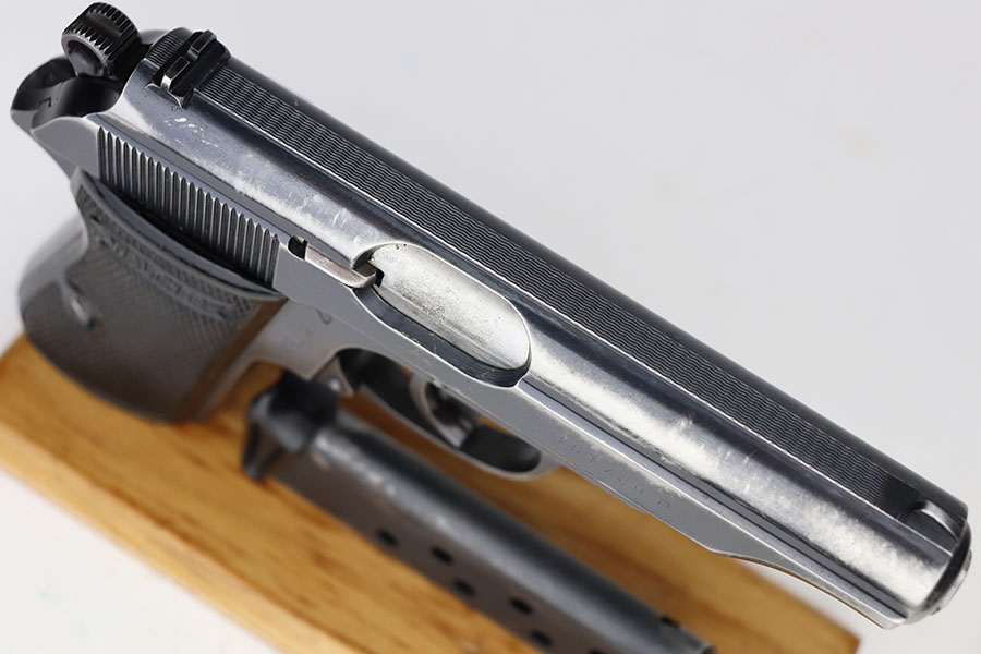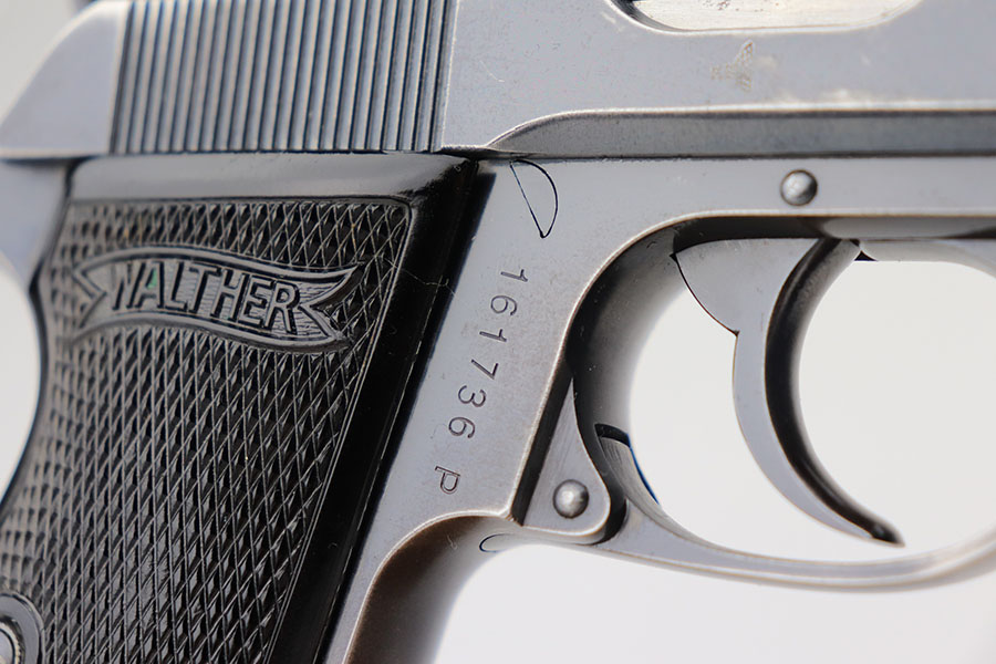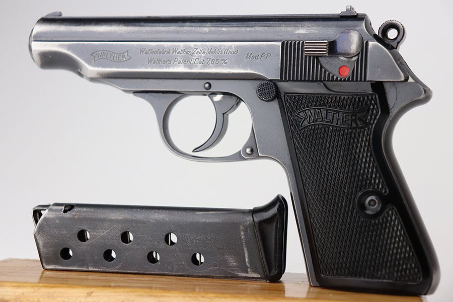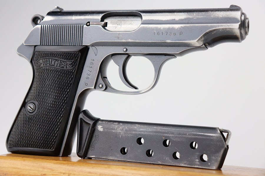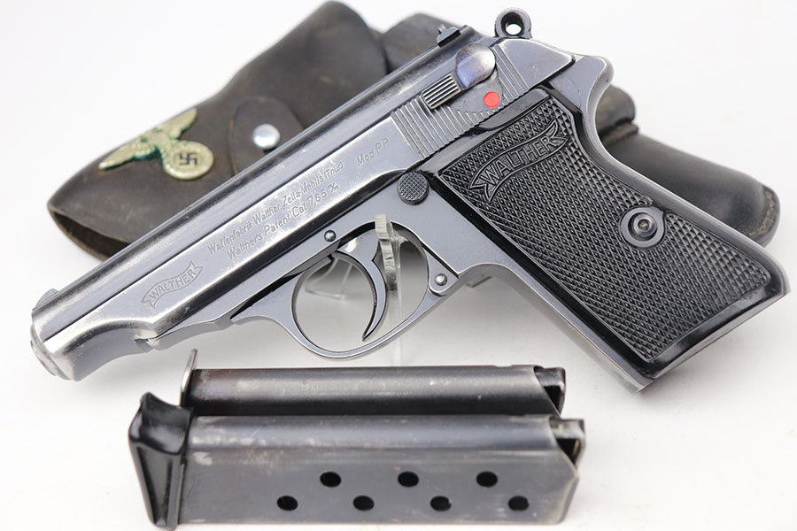 3/3/21 – This is a Walther PP rig that was part of the SS/RSHA contract, and comes with both original matching magazines. The gun is all original and matching with about 70-75% blue remaining. There is holster wear throughout and thinning of the straps. Pistol is in the known SS contract serial range and the magazines are properly numbered. The pistol comes in a period original holster that shows notable wear and is embellished with the SS emblem. Pistol has excellent bore. While the condition is not great, this is the real thing, exactly as it came home from WW2!