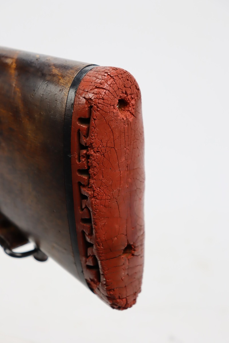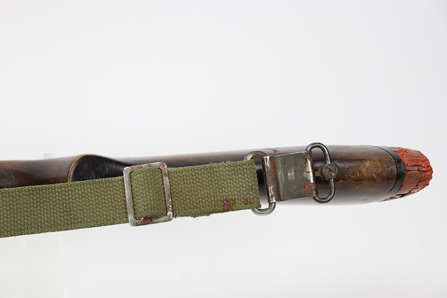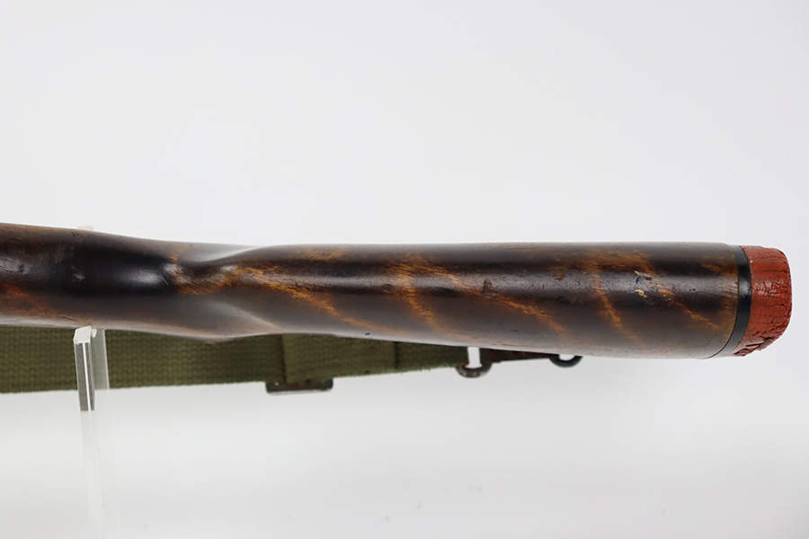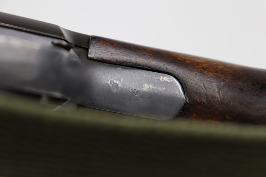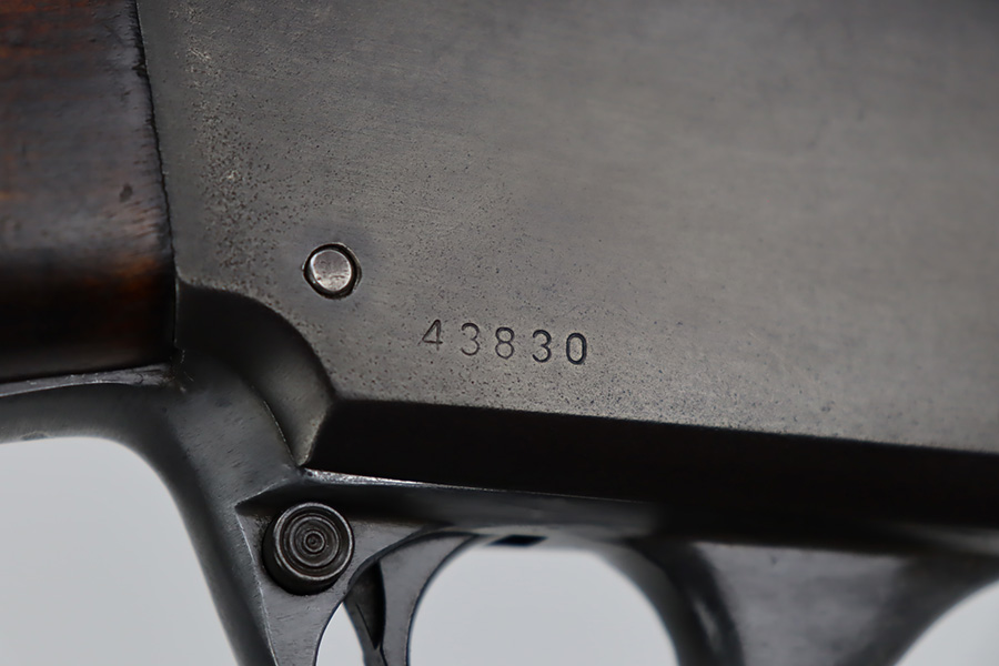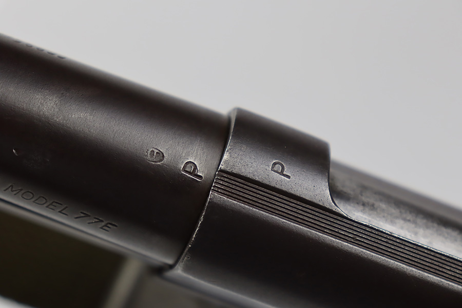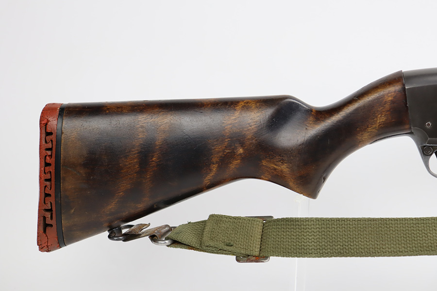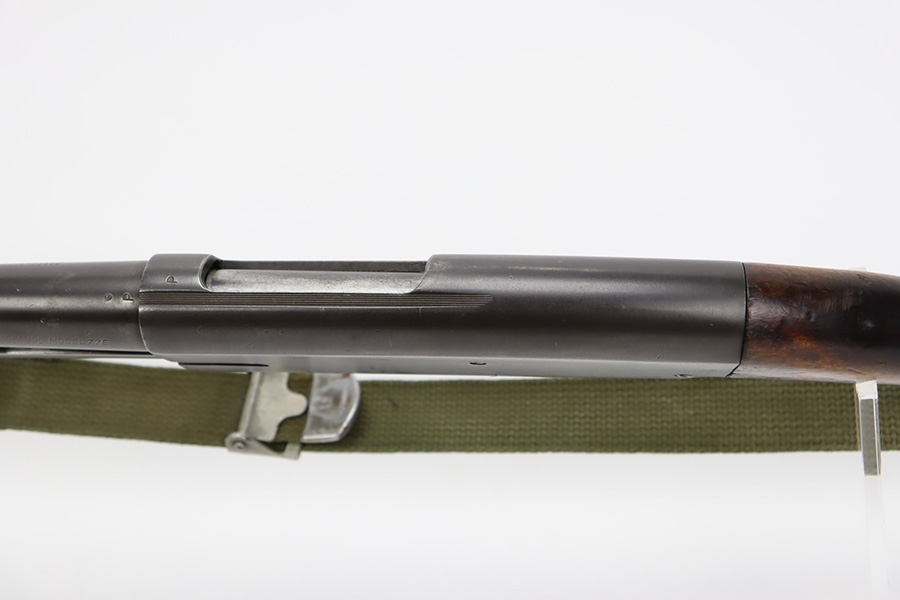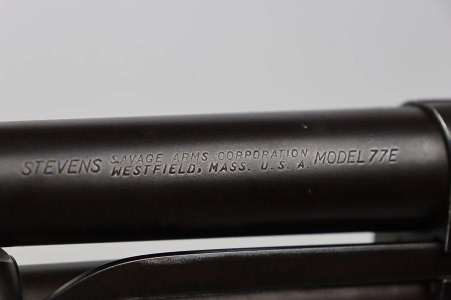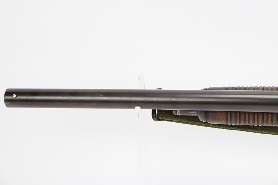 10/2/23 – This is a scarce example of a U.S. marked Stevens Savage Model 77E riot shotgun, manufactured in the 1960’s. Beginning in 1963, the U.S. government purchased a total of 69,097 Model 77E riot shotguns from the Savage Arms Corporation for issue to the South Vietnamese Army; however, they were also widely used by U.S. Army and Marine units in Vietnam. Records indicate that 65,724 of the 69,097 Model 77E shotguns purchased under government contract were issued to the Republic of Vietnam or other allied forces. As a result, very few Model 77E shotguns returned from Vietnam, with estimates at only a few thousand. They have a shorter stock than other U.S. military shotguns as they were modified to accommodate South Vietnamese soldiers. Military models are parkerized with sling swivels and wooden stocks. The right side of the receiver is ‘U.S.’ marked, and ‘P’ proofs are present on barrel and receiver. The metal parts on this one have retained about 90% of their finish. Minor wear around the muzzle and on the high edges in general. While there isn’t much actual finish loss, there is light brown patina visible under the finish throughout. Nice tiger wood stock – some minor dings and bruises. The rubber butt pad is dried and cracking. Excellent bore.