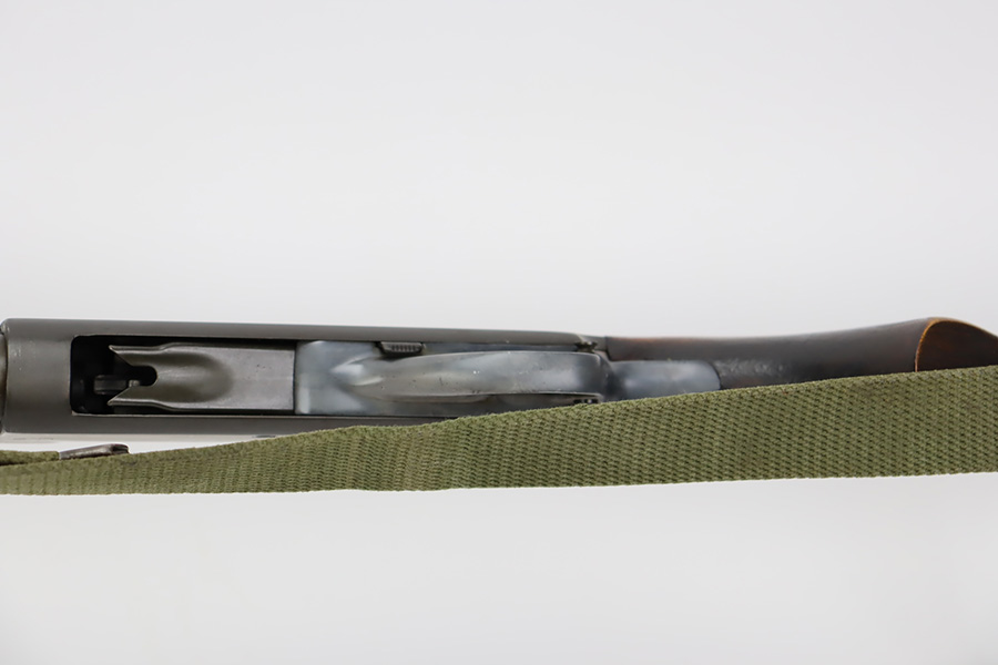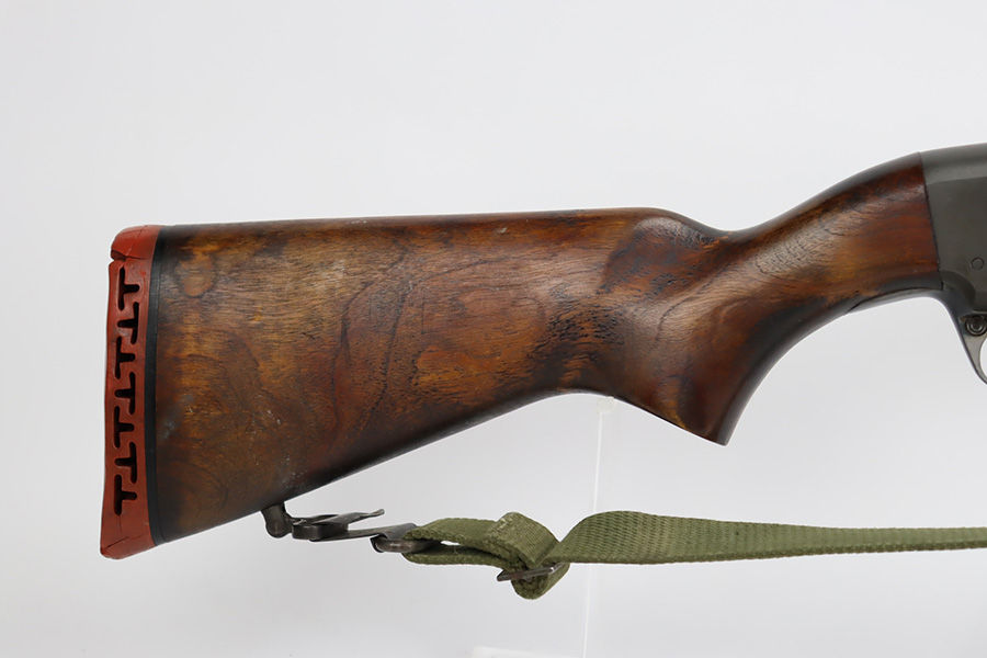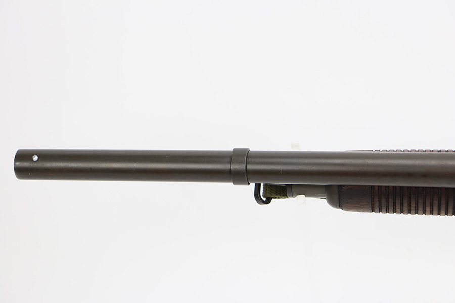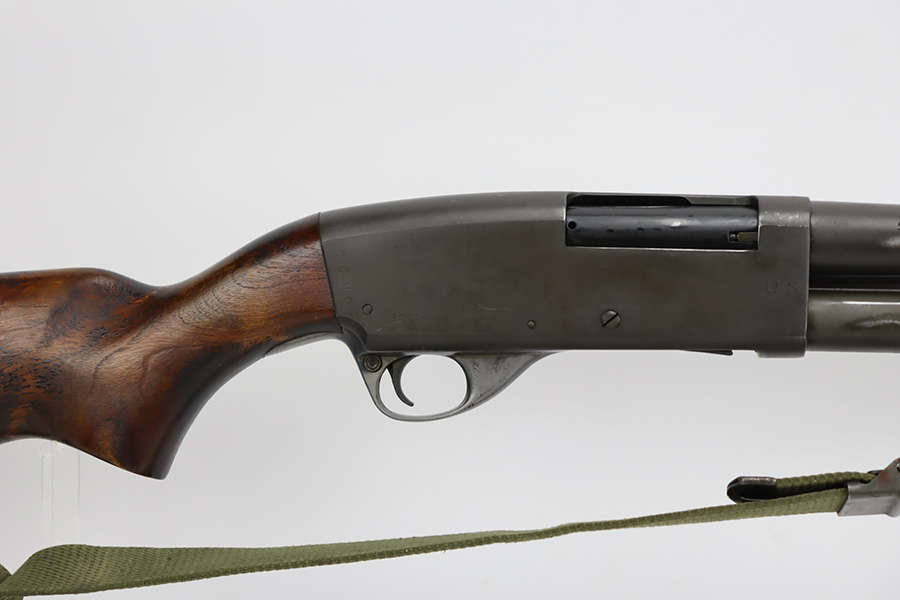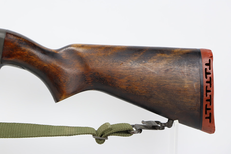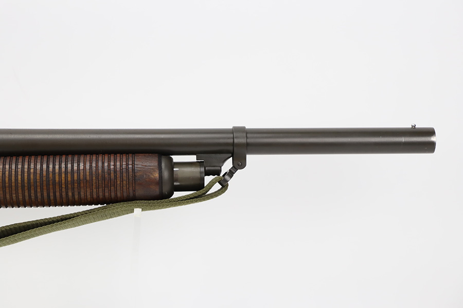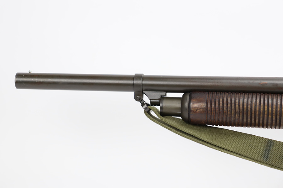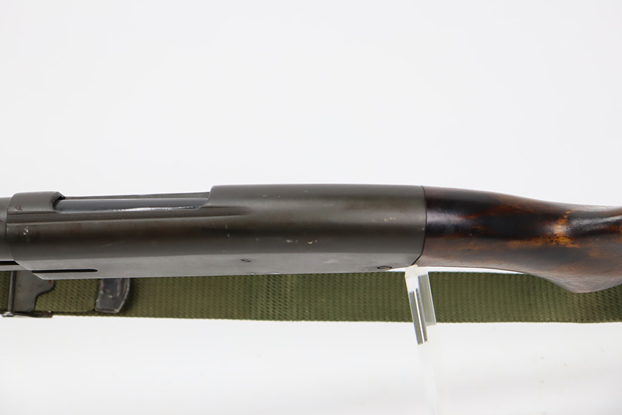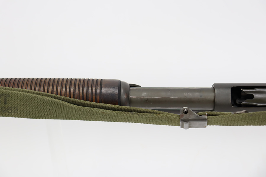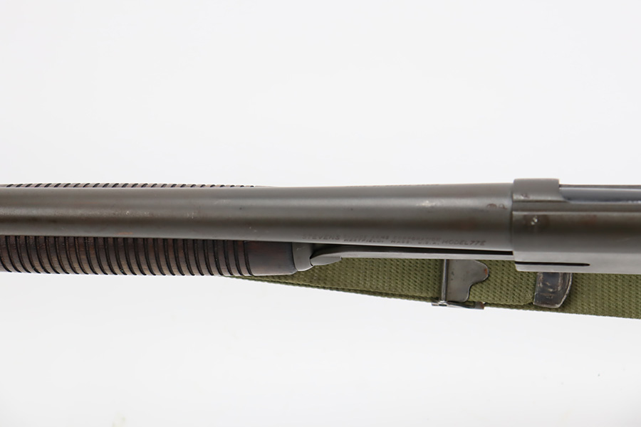 10/2/23 – This is a scarce example of a U.S. marked Stevens Savage Model 77E riot shotgun, manufactured in the 1960’s. Beginning in 1963, the U.S. government purchased a total of 69,097 Model 77E riot shotguns from the Savage Arms Corporation for issue to the South Vietnamese Army; however, they were also widely used by U.S. Army and Marine units in Vietnam. Records indicate that 65,724 of the 69,097 Model 77E shotguns purchased under government contract were issued to the Republic of Vietnam or other allied forces. As a result, very few Model 77E shotguns returned from Vietnam, with estimates at only a few thousand. They have a shorter stock than other U.S. military shotguns as they were modified to accommodate South Vietnamese soldiers. Military models are parkerized with sling swivels and wooden stocks. The right side of the receiver is ‘U.S.’ marked, and ‘P’ proofs are present on barrel and receiver. This one also has an “SCHD” marking on the right side of the receiver, indicating it was issued to the South Carolina Highway Department after its military service. The metal parts on this one have retained about 90% of their finish. Minor wear around the muzzle and on the high edges in general. There are two small areas of wear on the right side of the barrel and magazine tube. Some very light surface scratches and small spots of discoloration here and there. Excellent stock. The rubber butt pad is dried and cracking. Mint bore.