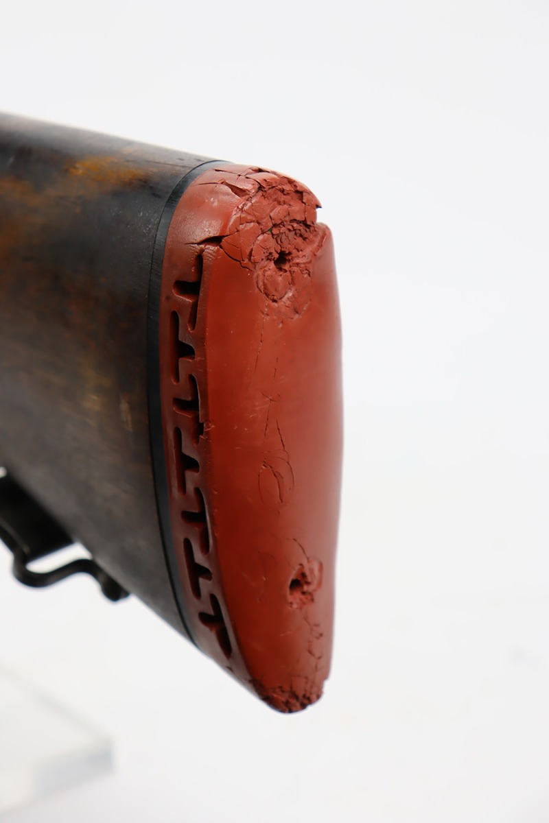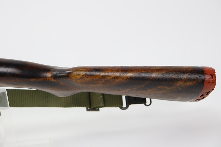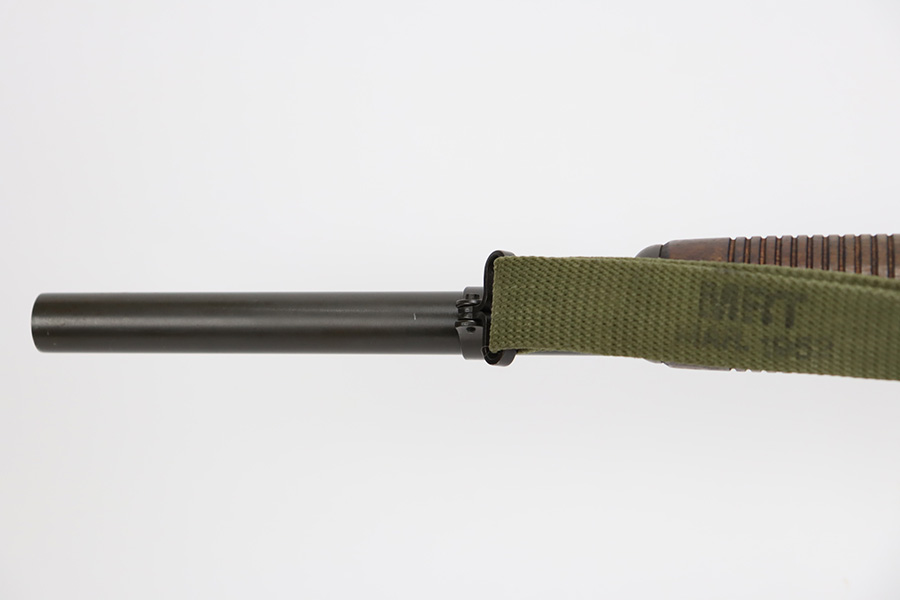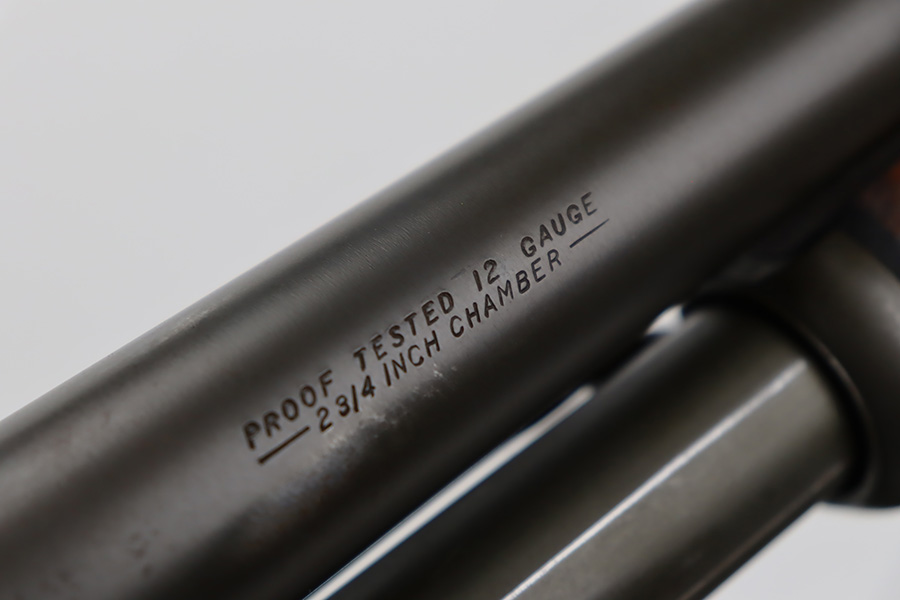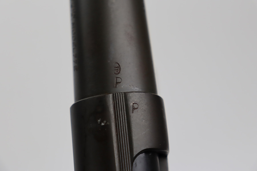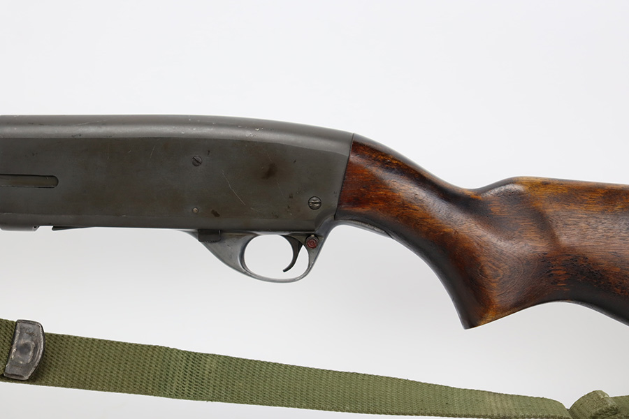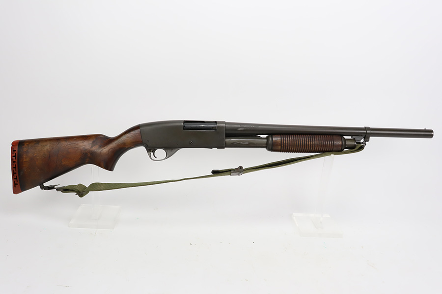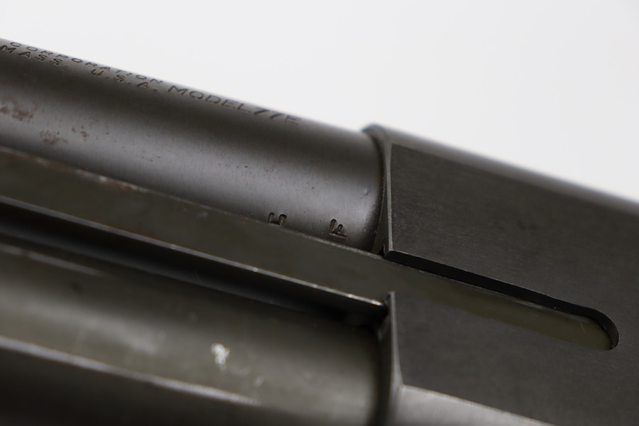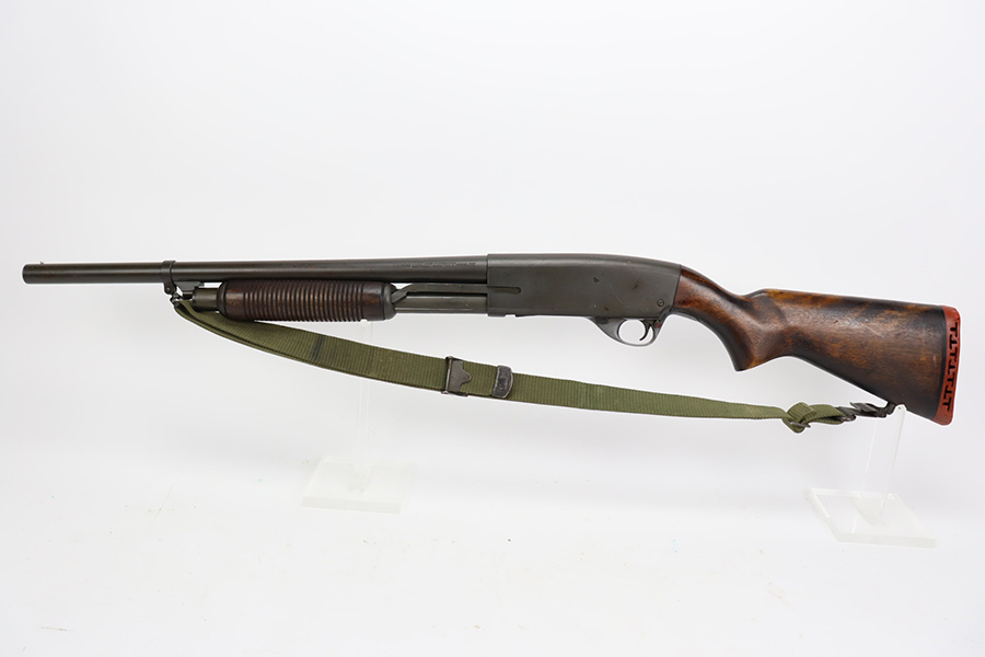 10/2/23 – This is a scarce example of a U.S. marked Stevens Savage Model 77E riot shotgun, manufactured in the 1960’s. Beginning in 1963, the U.S. government purchased a total of 69,097 Model 77E riot shotguns from the Savage Arms Corporation for issue to the South Vietnamese Army; however, they were also widely used by U.S. Army and Marine units in Vietnam. Records indicate that 65,724 of the 69,097 Model 77E shotguns purchased under government contract were issued to the Republic of Vietnam or other allied forces. As a result, very few Model 77E shotguns returned from Vietnam, with estimates at only a few thousand. They have a shorter stock than other U.S. military shotguns as they were modified to accommodate South Vietnamese soldiers. Military models are parkerized with sling swivels and wooden stocks. The right side of the receiver is ‘U.S.’ marked, and ‘P’ proofs are present on barrel and receiver. This one also has an “SCHD” marking on the right side of the receiver, indicating it was issued to the South Carolina Highway Department after its military service. The metal parts on this one have retained about 90% of their finish. Minor wear around the muzzle and on the high edges in general. There are two small areas of wear on the right side of the barrel and magazine tube. Some very light surface scratches and small spots of discoloration here and there. Excellent stock. The rubber butt pad is dried and cracking. Mint bore.