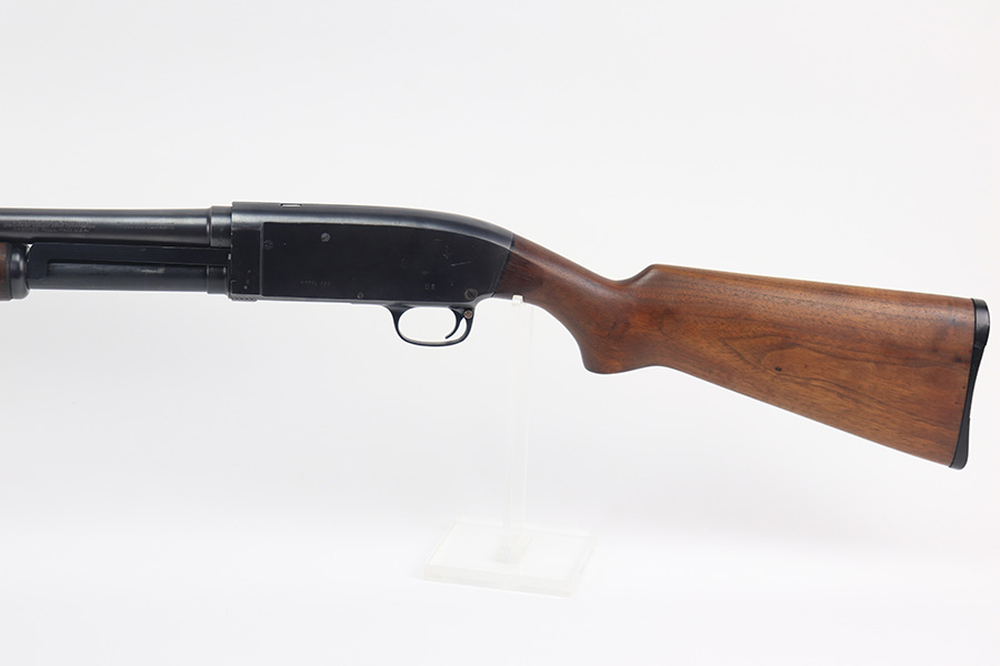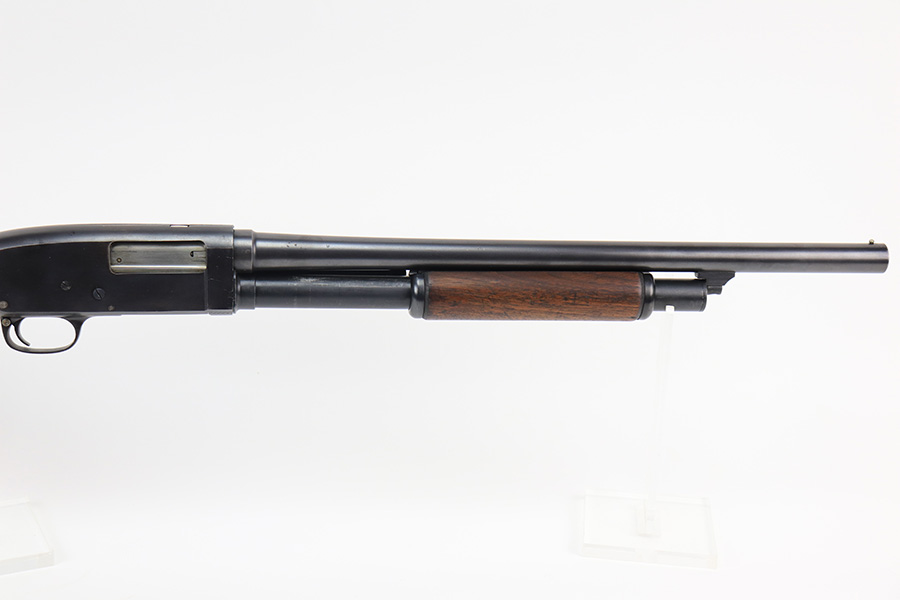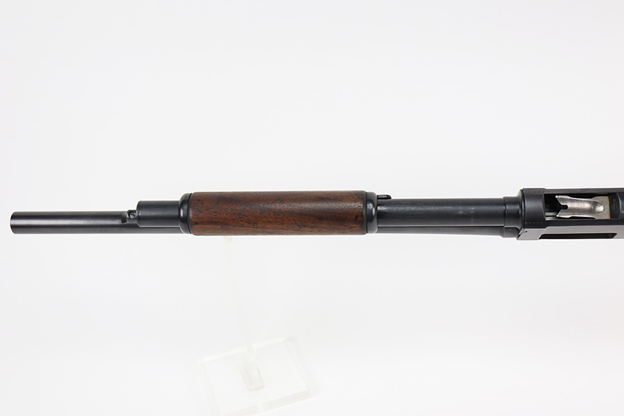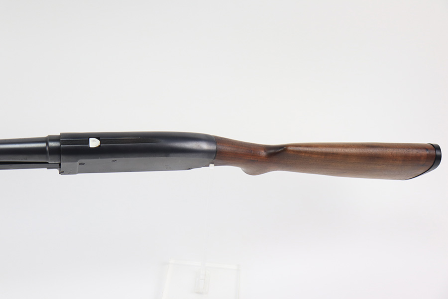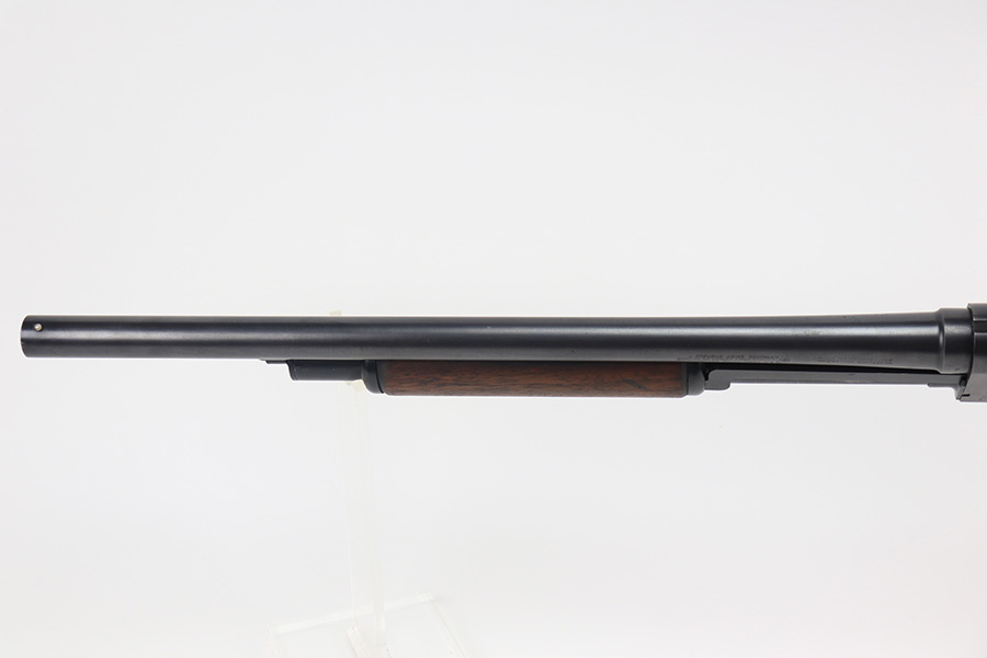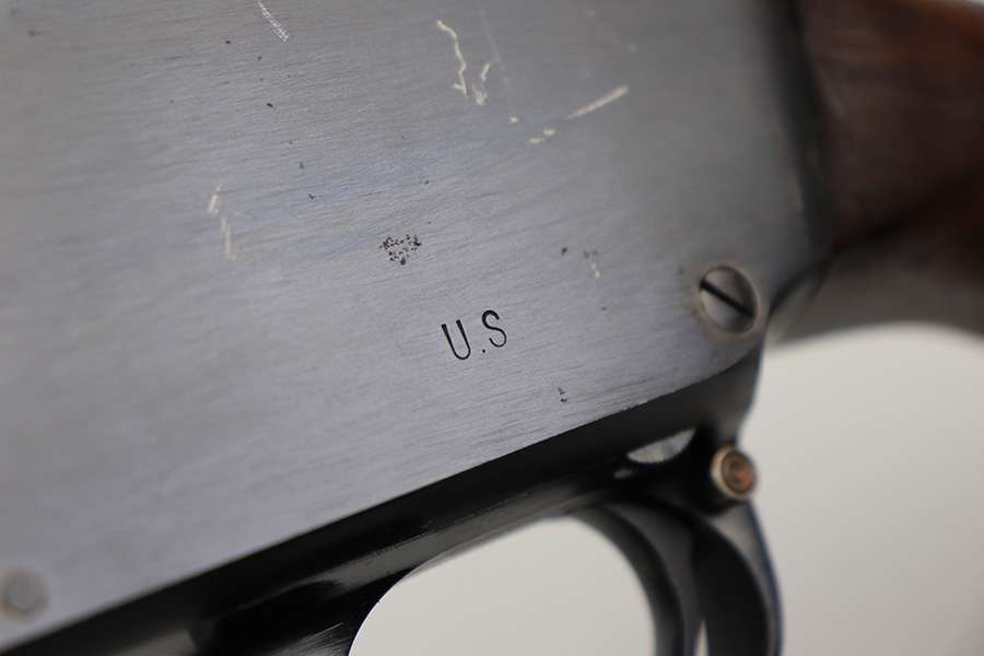5/18/22 – This is a very rarely encountered Stevens Savage Model 620 trench shotgun, made as a part of US military procurement during WWII. Unlike its M520 counterpart, this was a hammerless model, very much like Winchester M12. The military configuration is actually the Model 620A, so this rifle should be labeled as such but their receivers were marked 620 only for whatever reason. They were produced in trench, riot and training versions with only ~12,000 total produced. So presumably only a few thousand of these riot 620A’s were made. This one is all original and in excellent condition. Excellent wood furniture aside from initials that were very lightly scratched on the right side of the buttstock. The bluing shows only a few minor surface scratches on the receiver, and the barrel has excellent bluing. Receiver is marked U.S. with flaming bomb proof. Strong bore with just a little frost. Smooth mechanics.
