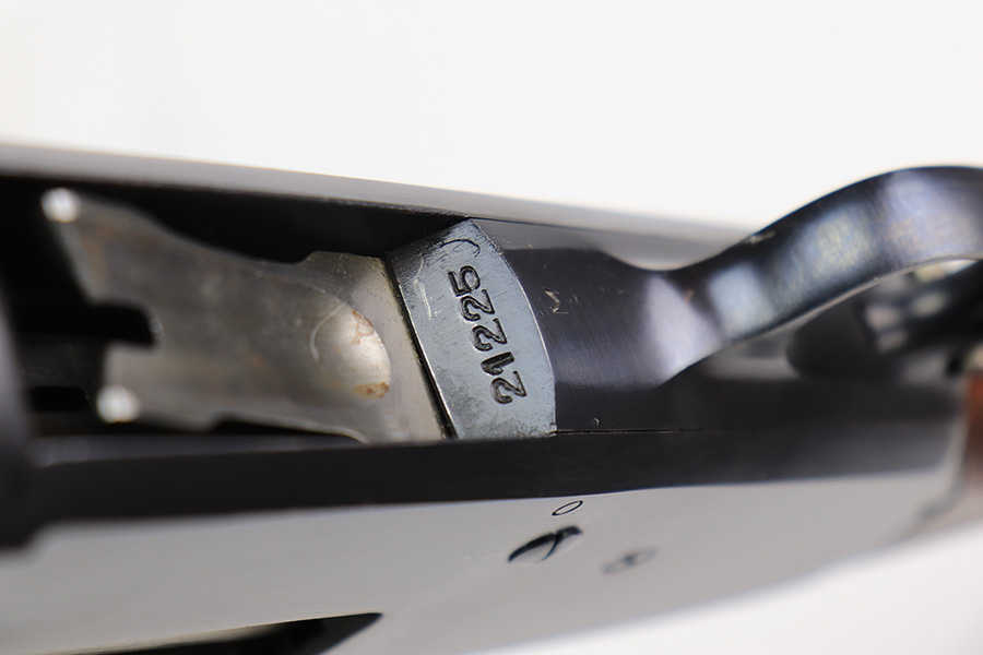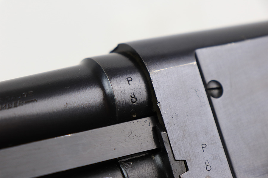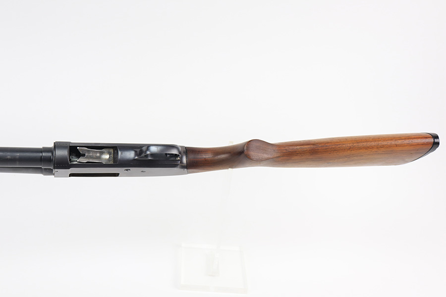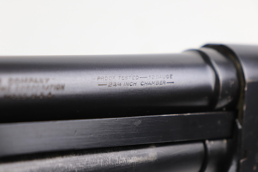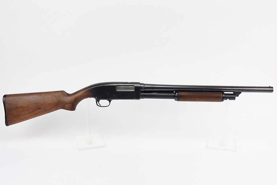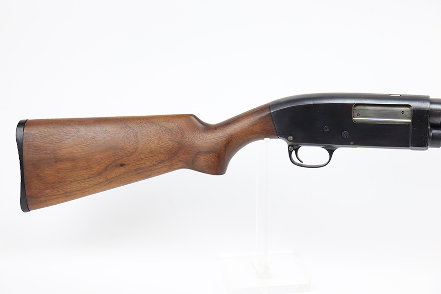 5/18/22 – This is a very rarely encountered Stevens Savage Model 620 trench shotgun, made as a part of US military procurement during WWII. Unlike its M520 counterpart, this was a hammerless model, very much like Winchester M12. The military configuration is actually the Model 620A, so this rifle should be labeled as such but their receivers were marked 620 only for whatever reason. They were produced in trench, riot and training versions with only ~12,000 total produced. So presumably only a few thousand of these riot 620A’s were made. This one is all original and in excellent condition. Excellent wood furniture aside from initials that were very lightly scratched on the right side of the buttstock. The bluing shows only a few minor surface scratches on the receiver, and the barrel has excellent bluing. Receiver is marked U.S. with flaming bomb proof. Strong bore with just a little frost. Smooth mechanics.