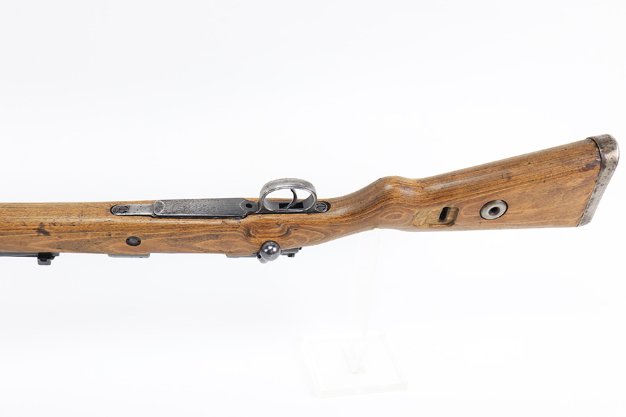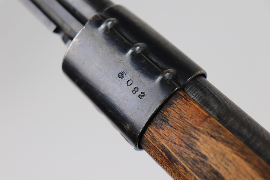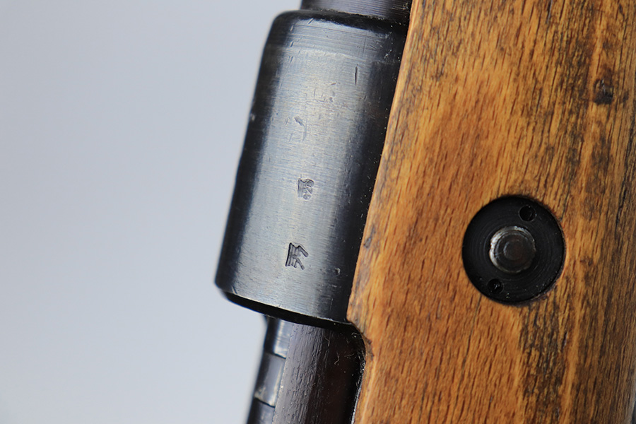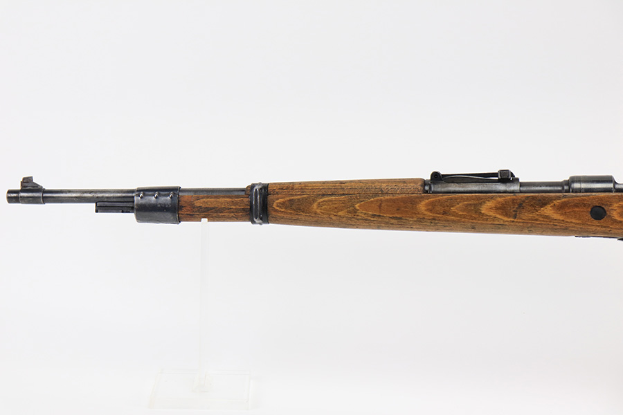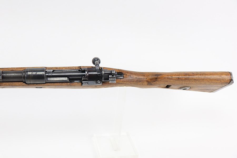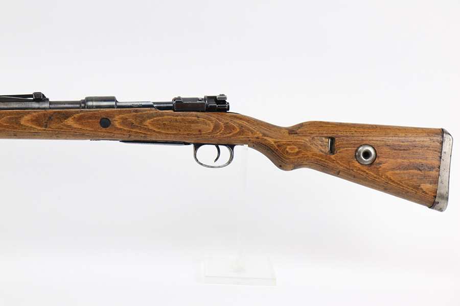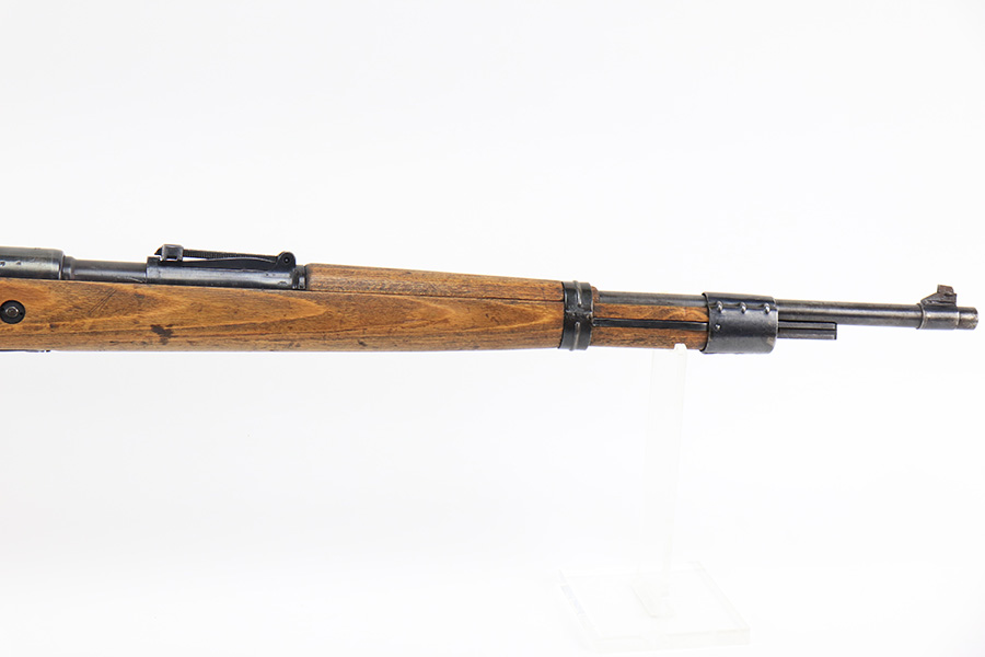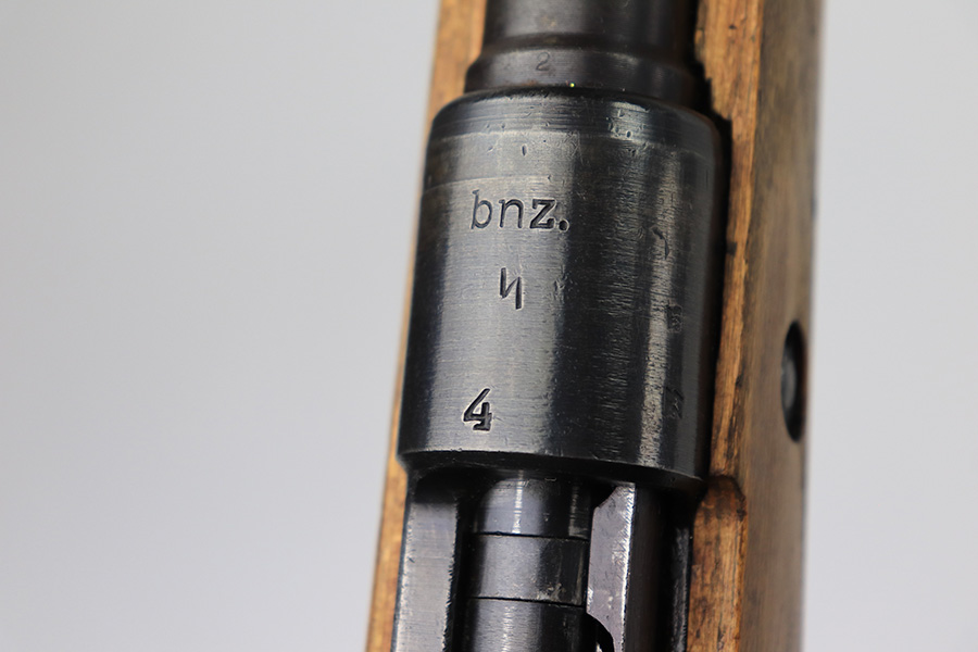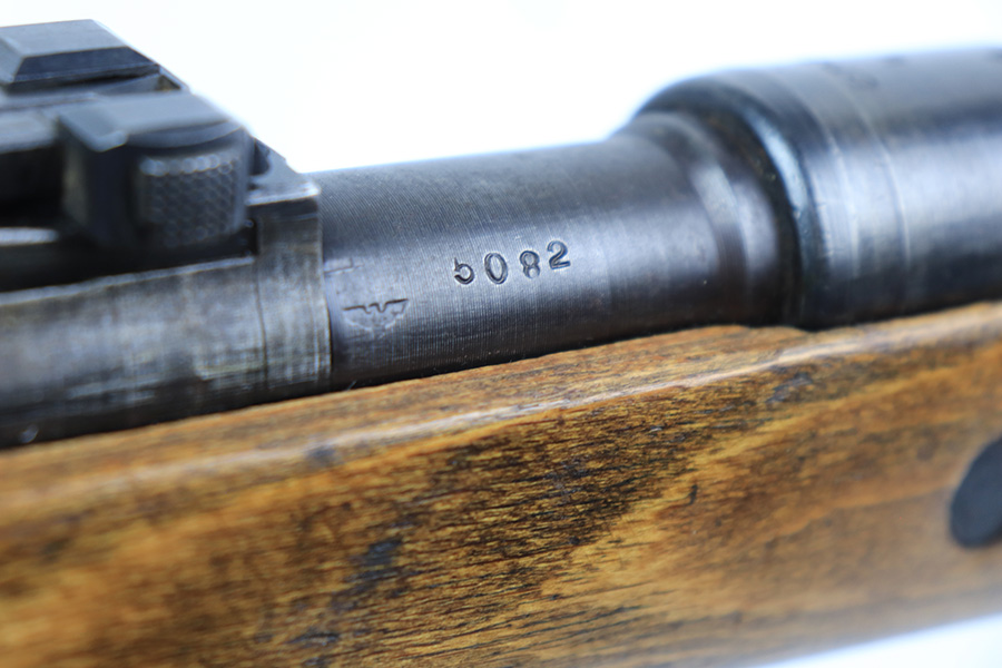 8/24/22 – This is a rare SS contract K98 rifle as produced at the Steyr factory in 1944. Receiver is marked ‘bnz / 4’ with single rune marking. Matching numbers throughout, including the stock and handguard internally. Other numbered parts include the front band, rear band, rear sight, bolt, safety and floorplate. Stock has waffenamt on right face, but may have been lightly sanded at some point in the past. Bore is excellent and shiny with strong rifling. Finish on the receiver is excellent overall but most of the finish loss is on the barrel or trigger group.