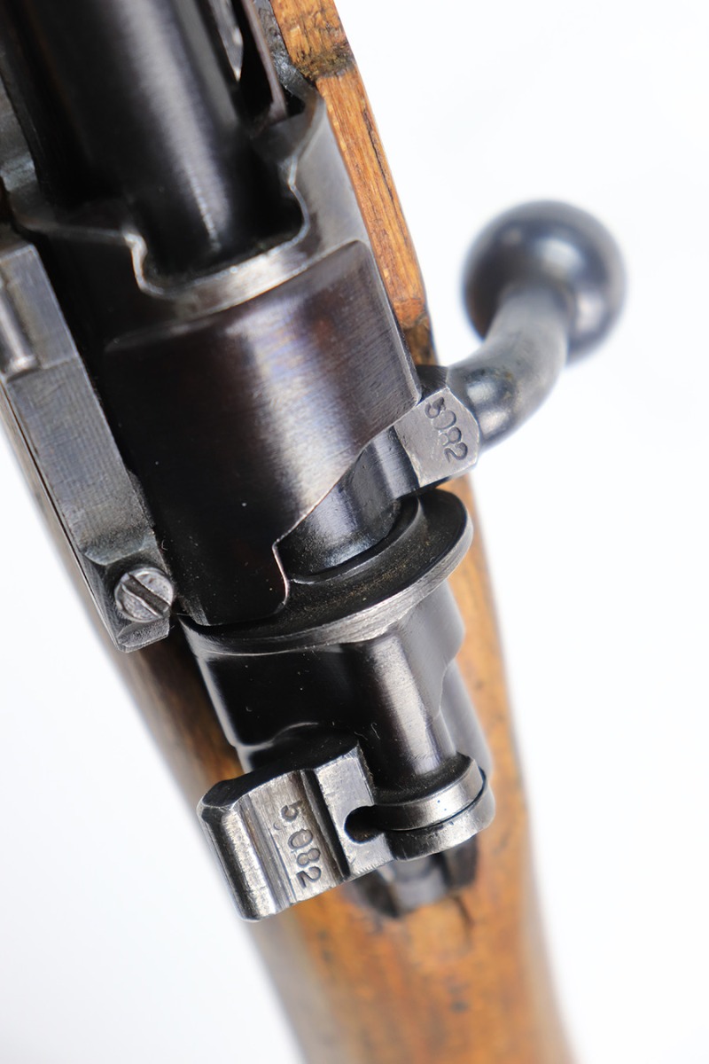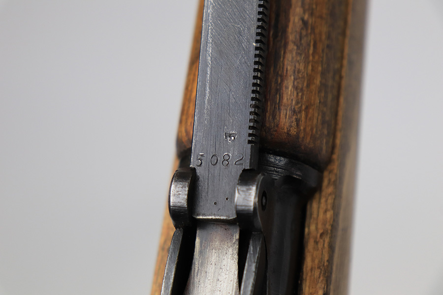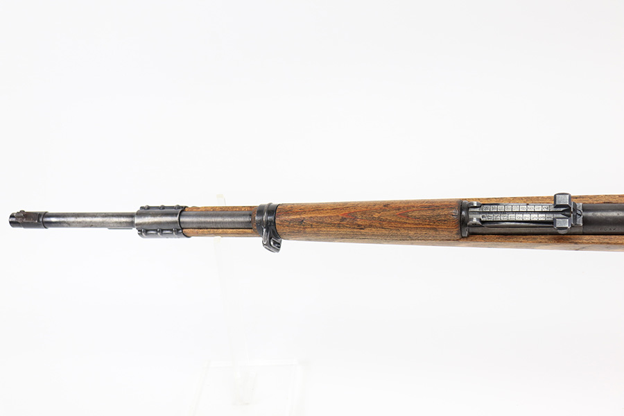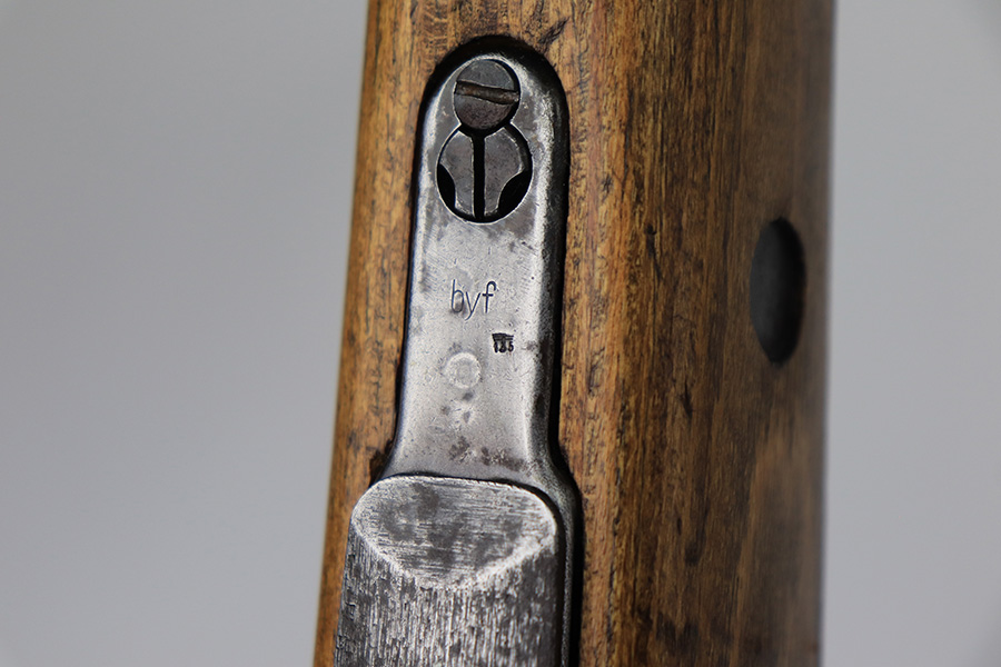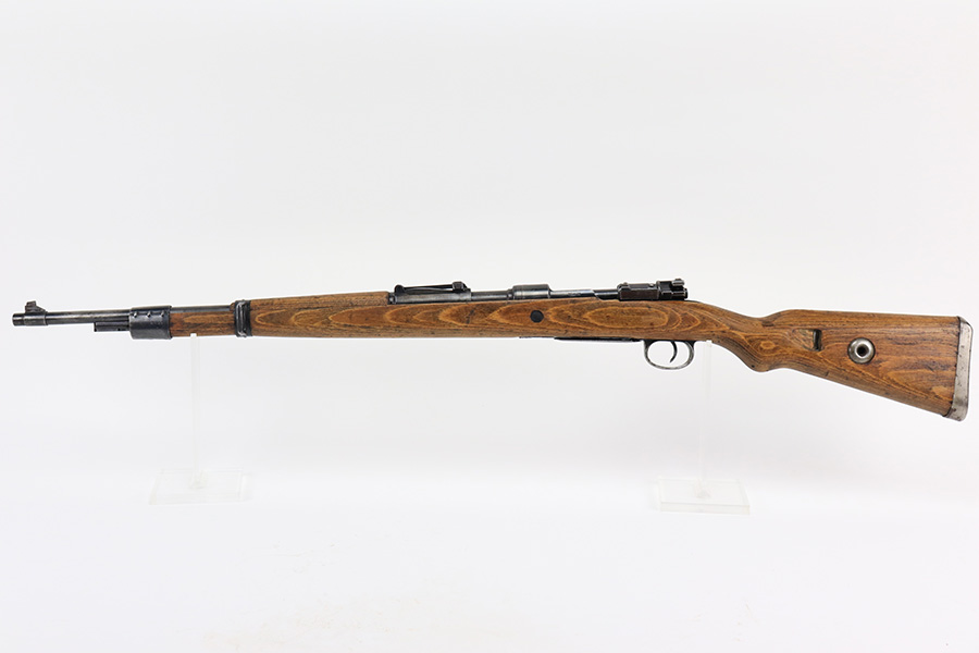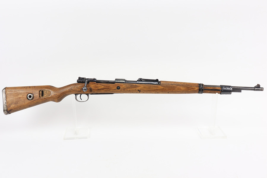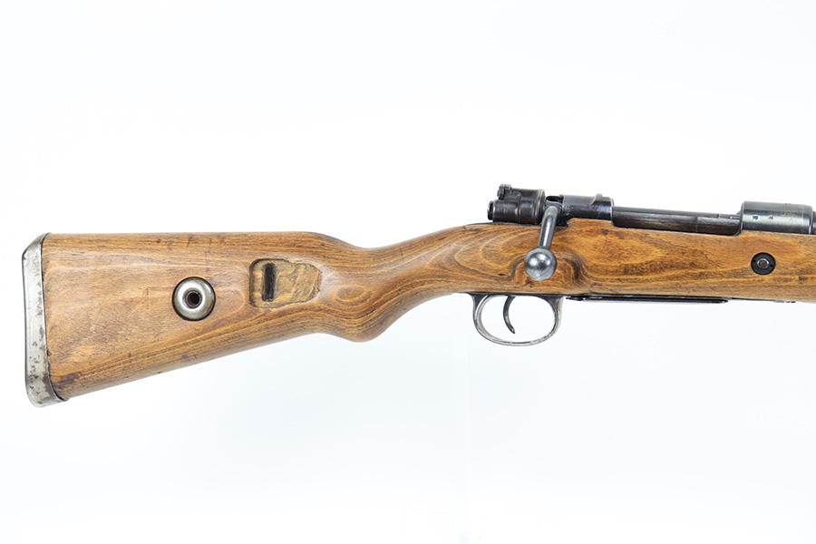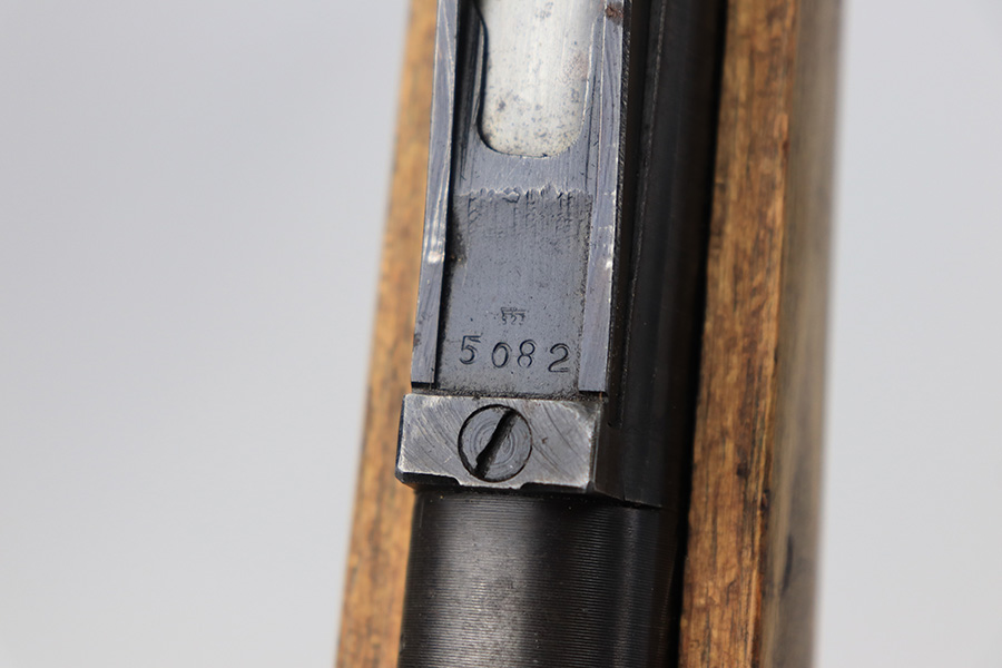 8/24/22 – This is a rare SS contract K98 rifle as produced at the Steyr factory in 1944. Receiver is marked ‘bnz / 4’ with single rune marking. Matching numbers throughout, including the stock and handguard internally. Other numbered parts include the front band, rear band, rear sight, bolt, safety and floorplate. Stock has waffenamt on right face, but may have been lightly sanded at some point in the past. Bore is excellent and shiny with strong rifling. Finish on the receiver is excellent overall but most of the finish loss is on the barrel or trigger group.