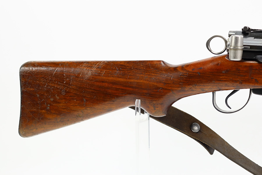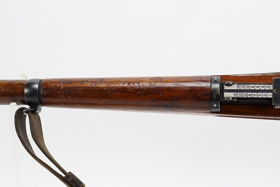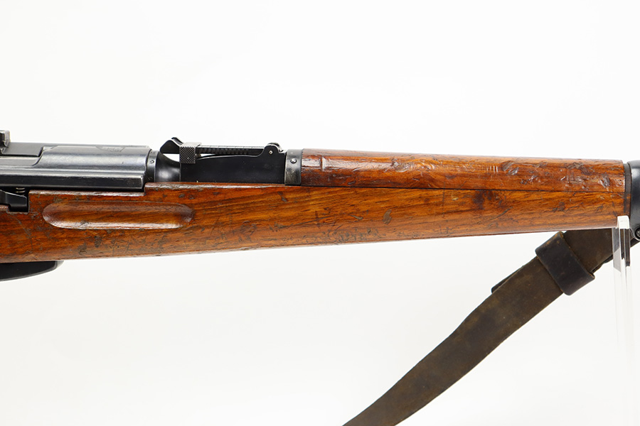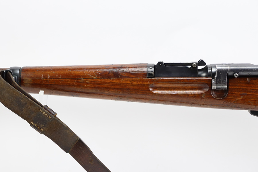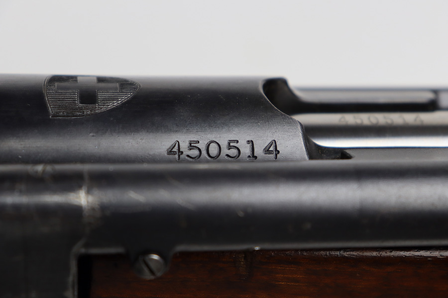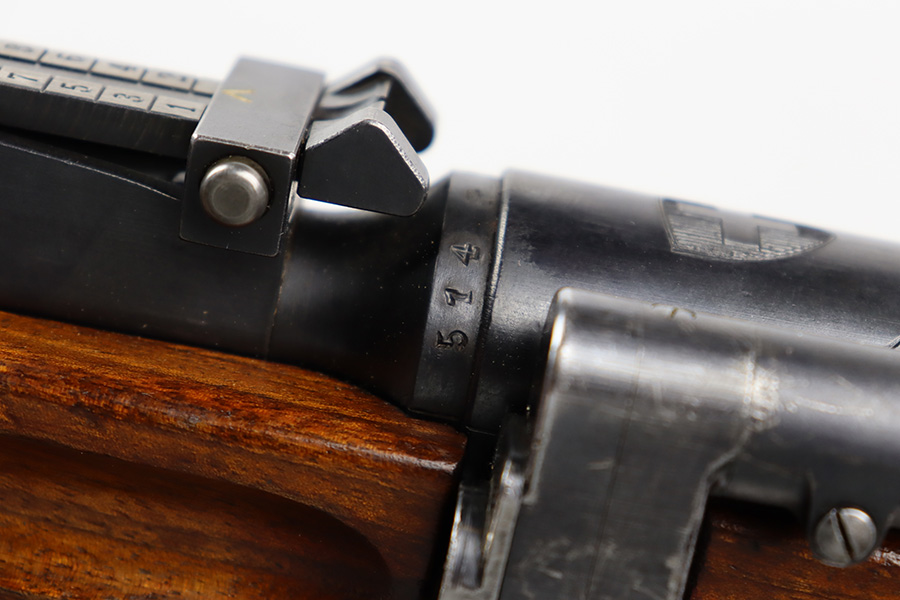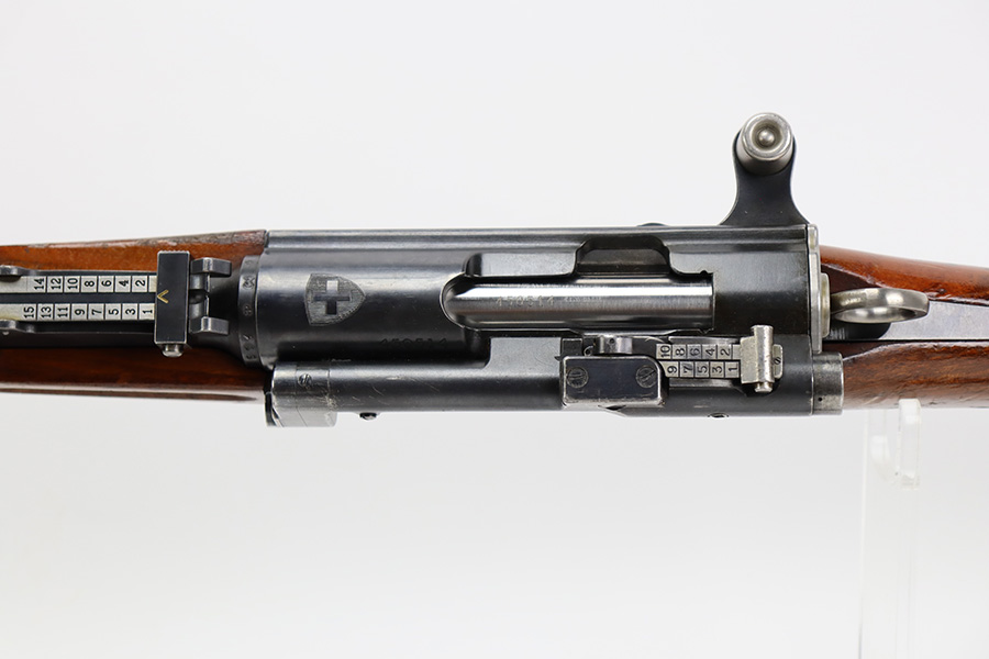 7/13/23 – This is a beautiful example of a super rare Swiss K31/42 sniper rifle from 1942. There were only 2,300 ZFK31/42 and ZFK31/43 rifles produced in total, with the only distinction being the zoom power of the optic. A variant of Swiss K31 straight-pull service rifle, these were the first Swiss sniper rifle designed during WWII and used a 1.89x side mount sniper scope with a folding front objective head that folds down on to the side of the stock for protection during transport. The scope was designed this way to keep the snipers head down. It has the standard Swiss wide, inverted “v” reticle and the optics on this particular example are clear/excellent. It also features an adjustable sight with slider to compensate for bullet drop. The rifle features matching numbers on the barrel, receiver and magazine. Terrific bluing throughout, aside from on the scope itself which shows nearly all of the bluing loss. The stock shows various dings and nicks throughout but no structural issues. Small import mark discretely hidden under the flip up portion of the scope. Minty bore. Comes with a leather sling.