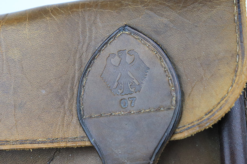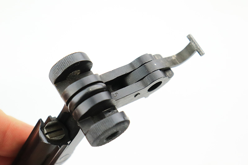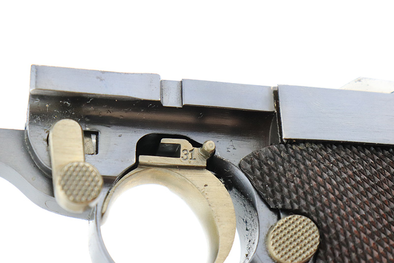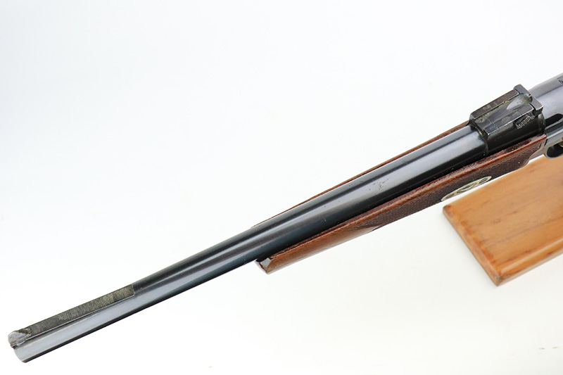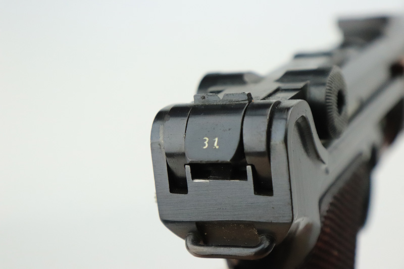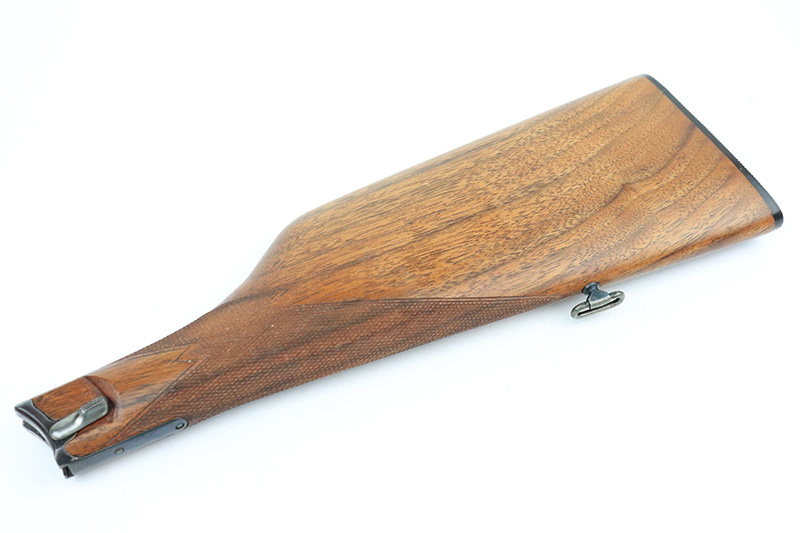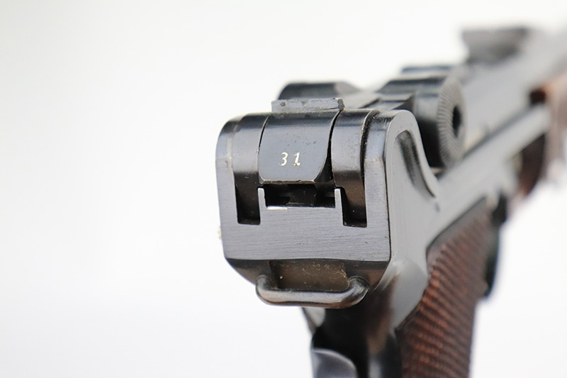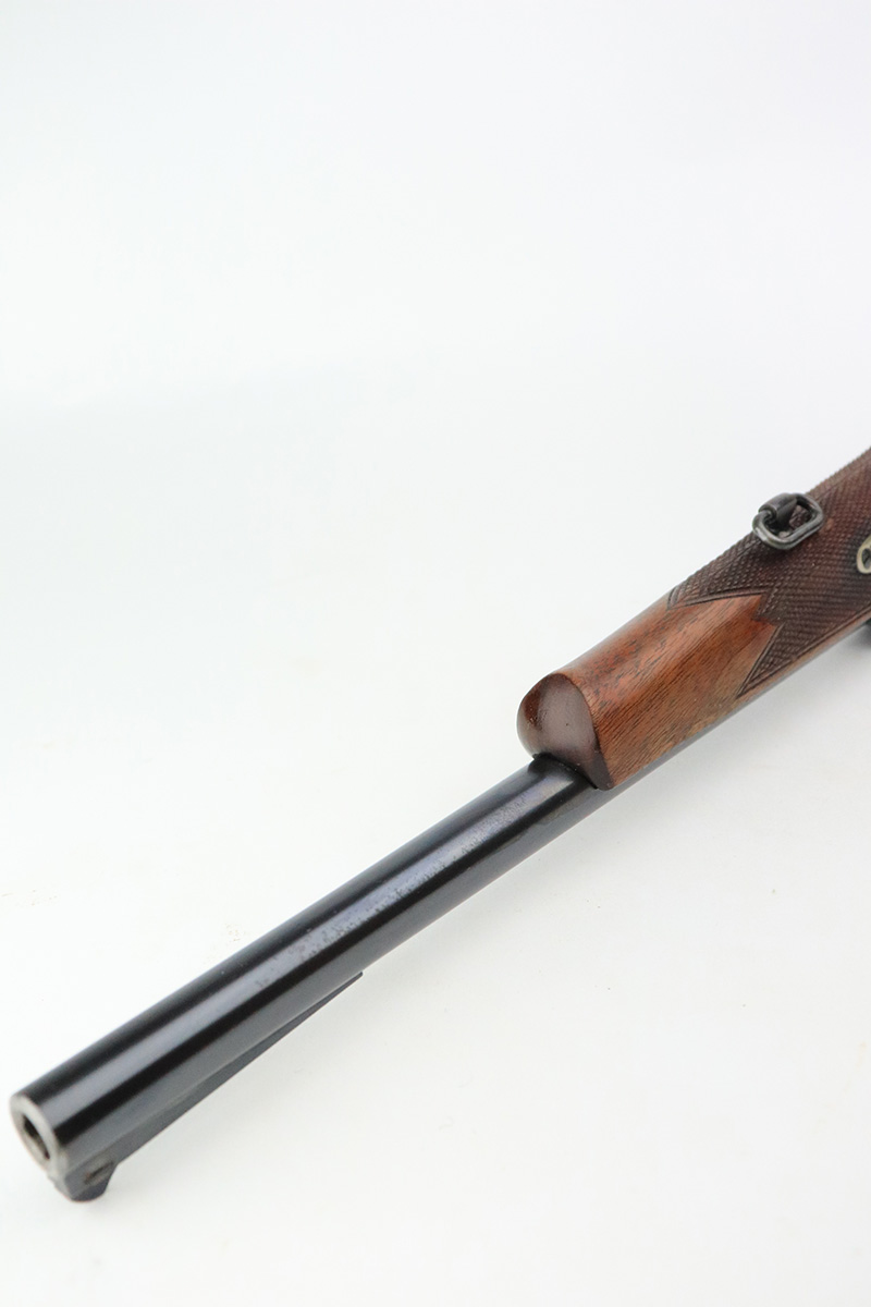 8/14/24 – This is a beautiful and interesting example of a 1920 DWM Luger Carbine rig with case and stock. These pistols were made for general commercial sales, both within Germany and abroad. This particular example is marked ‘MADE IN GERMANY’, so was originally sent to the United States. Serial numbers do match throughout, including the stock. The bluing is excellent, with only minor wear on the lug due to attaching the stock. It has a 1920-style forend with no cracks or chips. It’s fitted with wood grips in excellent condition. Mint bore. The stock is numbered on the wood and metal attachment, and matches the pistol. It’s in very good condition with no cracks and fits the stock lug correctly. The listing also includes a rare holster that fits all the items, and is in excellent condition. Robert Saltsman collection.