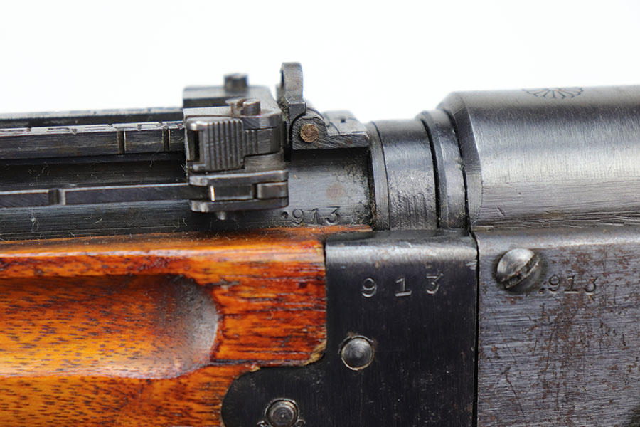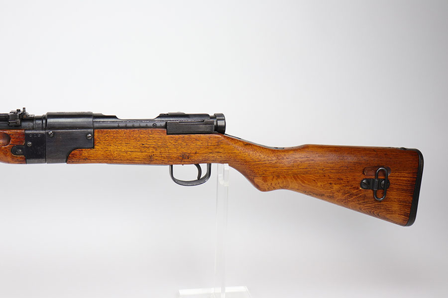 10/8/20 – This is a scarce and highly desirable Japanese Paratrooper rifle from World War II. Exclusively made at Nagoya Arsenal, the rifle is all matching and original and in excellent condition. The chrome-lined bore is near-mint, and there is only minor finish loss to the metal parts, mostly on high edges. The mum is completely intact. The takedown mechanism is also all matching, and correctly not matching to the serial of the receiver as these were numbered separately. Receiver also features Kanji denoting it is a “Type II” rifle. Original cleaning rod and aircraft sights are present. The inside of the action and magazine assembly are excellent, indicating it was shot very little. The stock shows minor dings and nicks but no cracks or major issues with the wood. There were only an estimated 19,000 of these produced, but finding them in such excellent, original condition is very difficult.