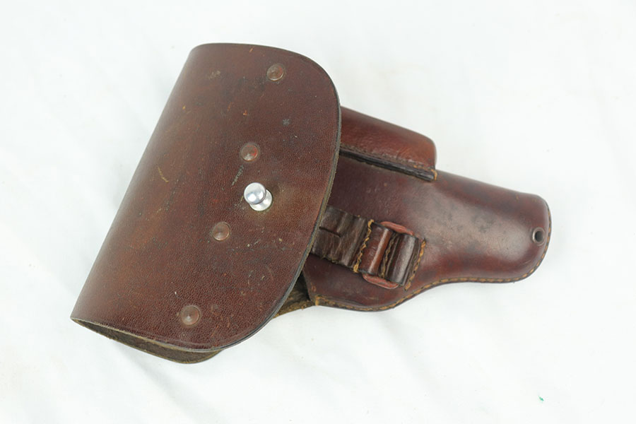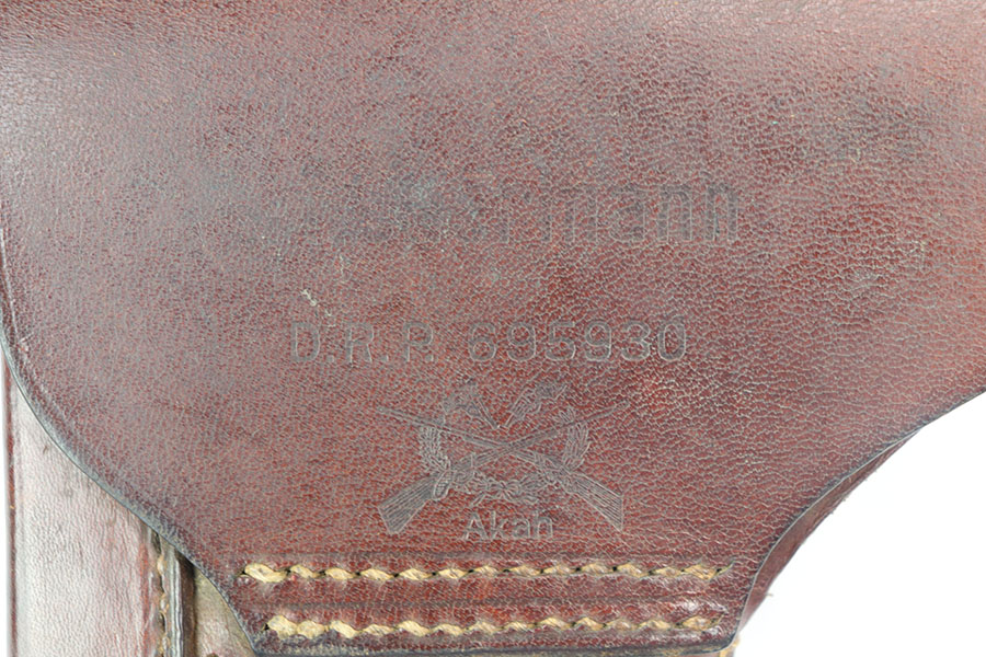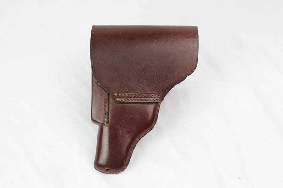 8/19/20 – This is an original and very scarce Type 1 Theuermann AKAH Walther PP holster. The holster is “Type 1” because of the interior lift straps that was only seen on the earliest variation of these holsters. The light brown leather is excellent overall on this piece. Stamped on the back with the Theuermann designation and AKAH maker stamp. The interior leather still has the original ink stamp as well. All original stitching in tact as well. A highly collectible holster.