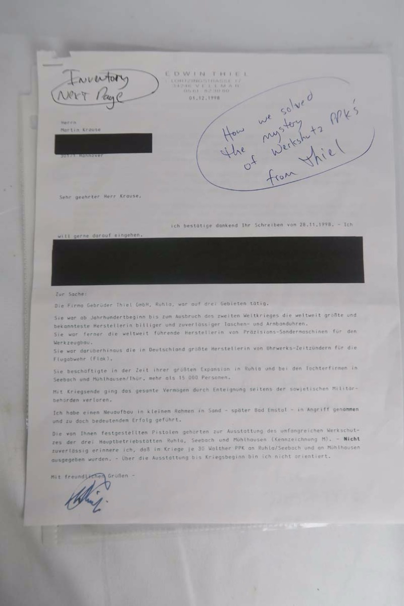 SOLD – Rare Thiel Marked Walther PPK with Thiel Fuse and Documents!