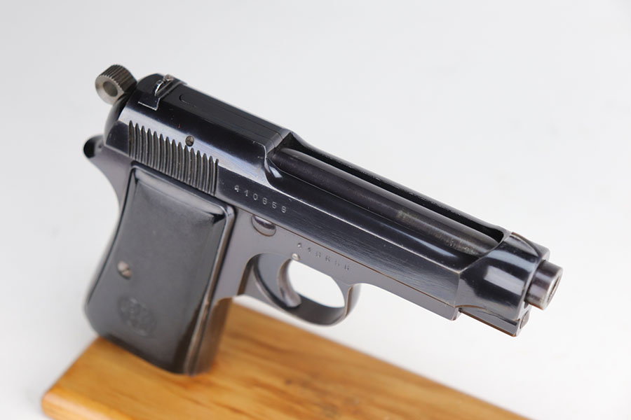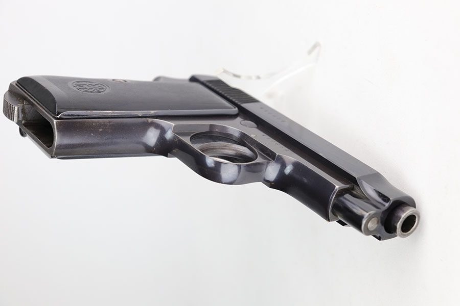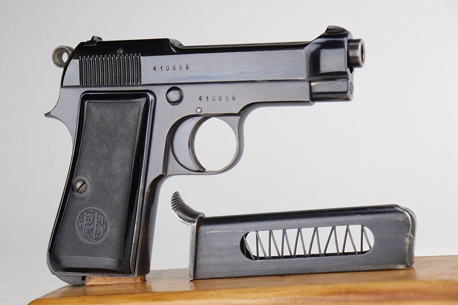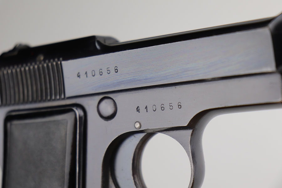 12/29/20 – This is a super rare example of a transitional Beretta as production moved from the Model 1931 to the Model 1935, but is marked Mo. 1934 despite being chambered for 7.65mm. Further, it was issued to the Royal Italian Air Force, making this an almost never seen example. Wood’s book on Beretta Automatic Pistols says the gun was shipping as part of a very small batch in May of 1935. The gun is in excellent condition overall, with most of the wear on the back strap. All matching and original with a beautiful profile. The bore has pronounced rifling but does have some freckling throughout. Excellent grips, original mag.