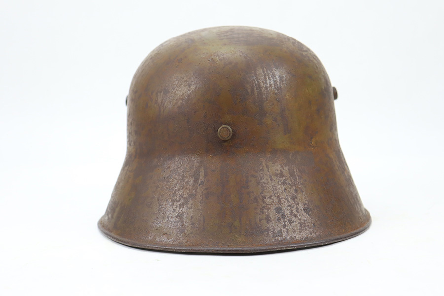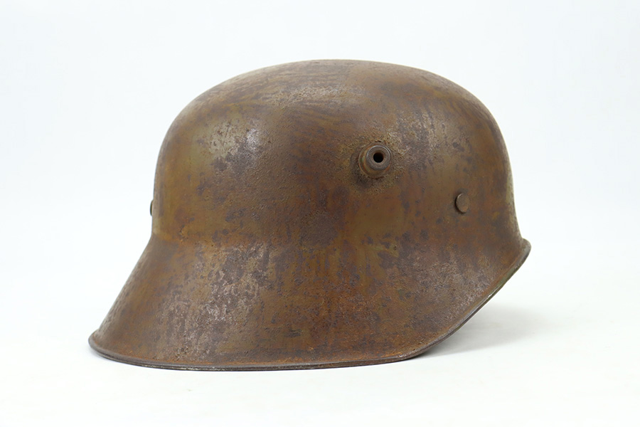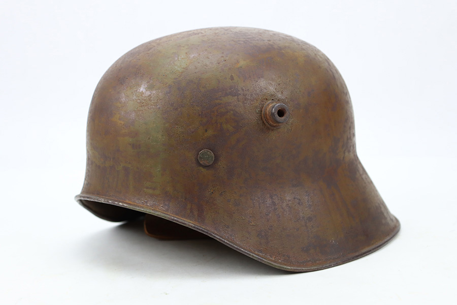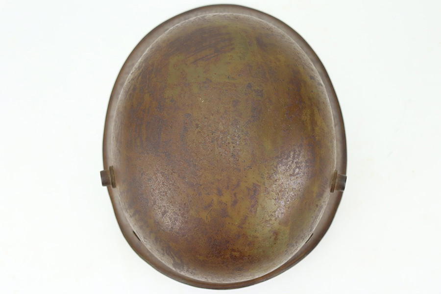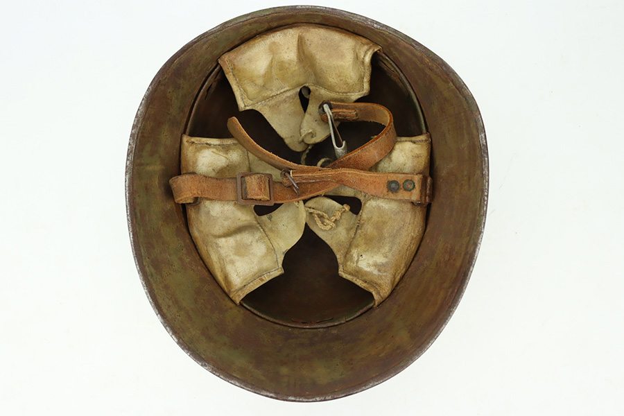 1/9/24 – This is an original Turkish Stahlhelm (M18 Combat Helmet) from World War I. These are probably the most rare of all WW1 steel helmets, with only 5,400 produced in Germany for shipment to their ally, Turkey. Very similar to the German M-18 helmet but with the peak removed. Liner is still intact, and in good condition though dry/stiff. Chin strap also present. Outer finish shows its age and patina but no major defects to note specifically.
