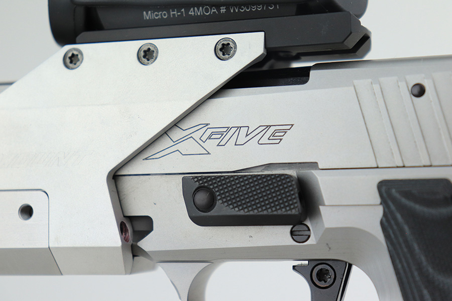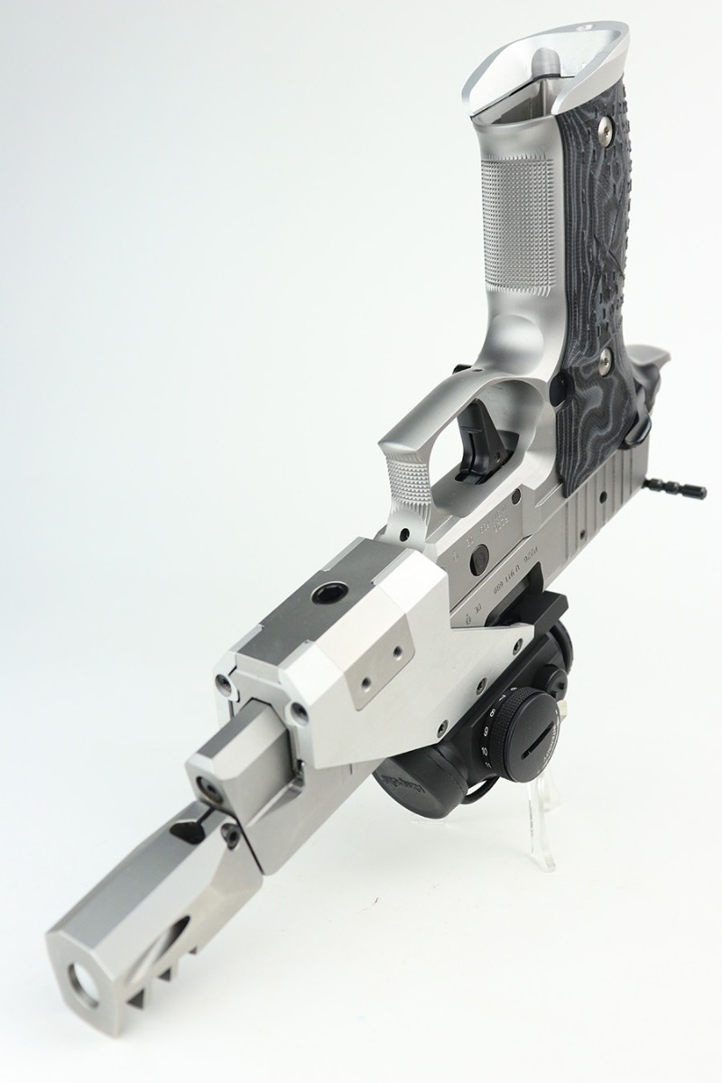 6/1/22 – This is a mint example of the rare Sig Sauer Mastershop P226 X Five Open pistol with the original matching test target, manual, two total magazines (20rd), Aimpoint tool, the Sig gun grease and the Pelican case. Our consignor bought this pistol factory new and never fired it. The X-Series pistols are all made in Germany and designed to meet the extreme demands of competition shooters. The Open model features a compensator and G10 grips, and includes a bridge mount for the optic, which is an Aimpoint Micro H-1 with 4MOA in this case. Five inch barrel with stainless steel slide and frame. X-Line G10 handle scales and checkering for positive handling and manipulation. Extended aluminum magazine well. Fully adjustable trigger with one of the smoothest, lightest pulls you can imagine. FFL required.