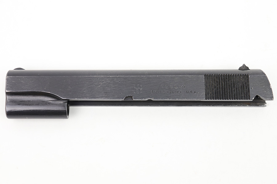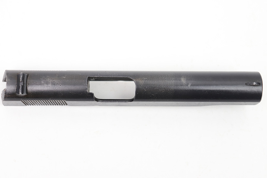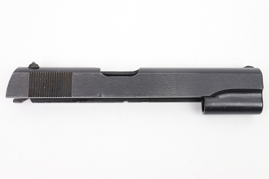 1/27/23 – This is an original, rare variation WW2 era M1911A1 pistol slide made by Union Switch & Signal. The original finish is in about 95% overall condition with some mild edge wear and light thinning on the top of the slide. No rust or pitting. No internal parts included.