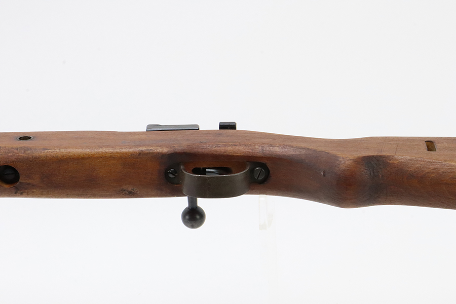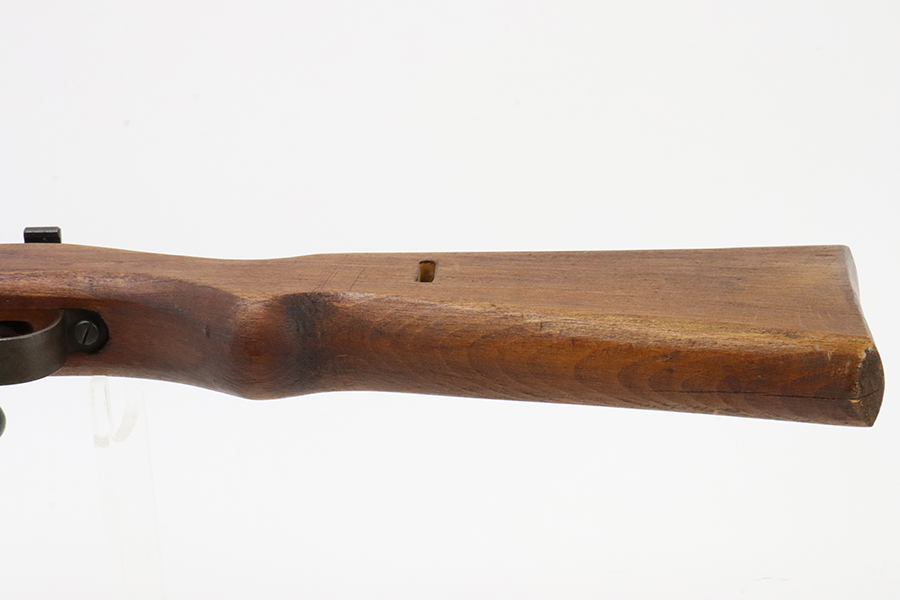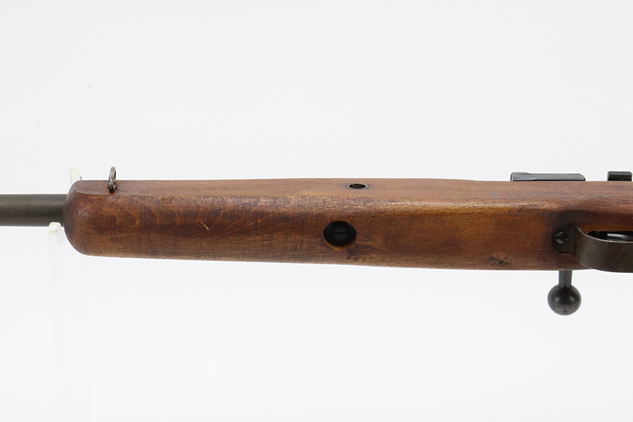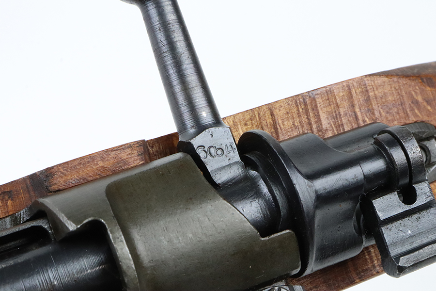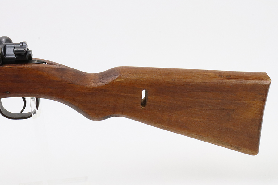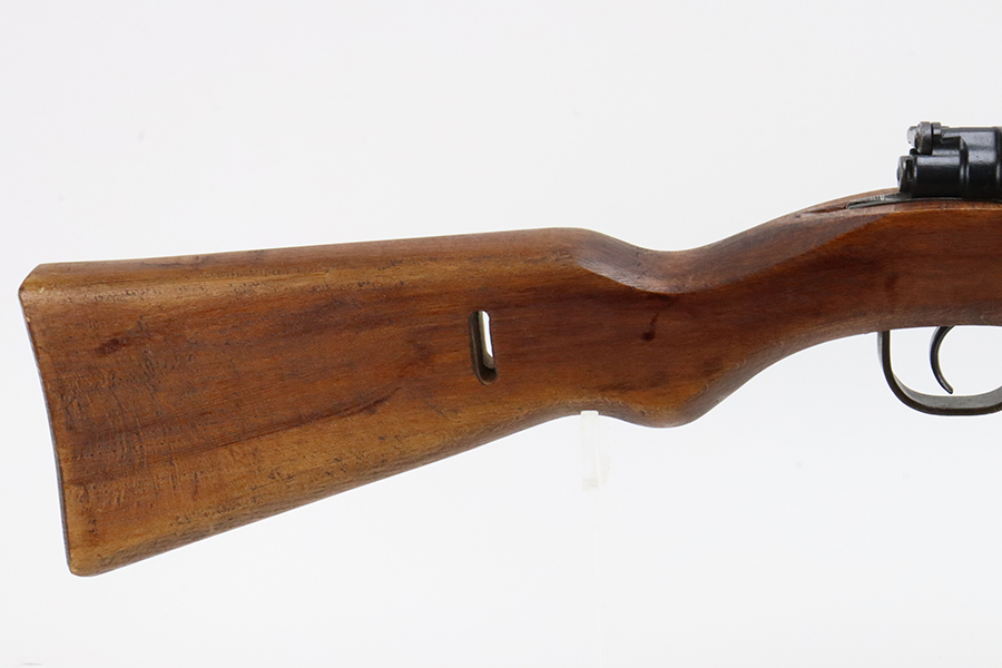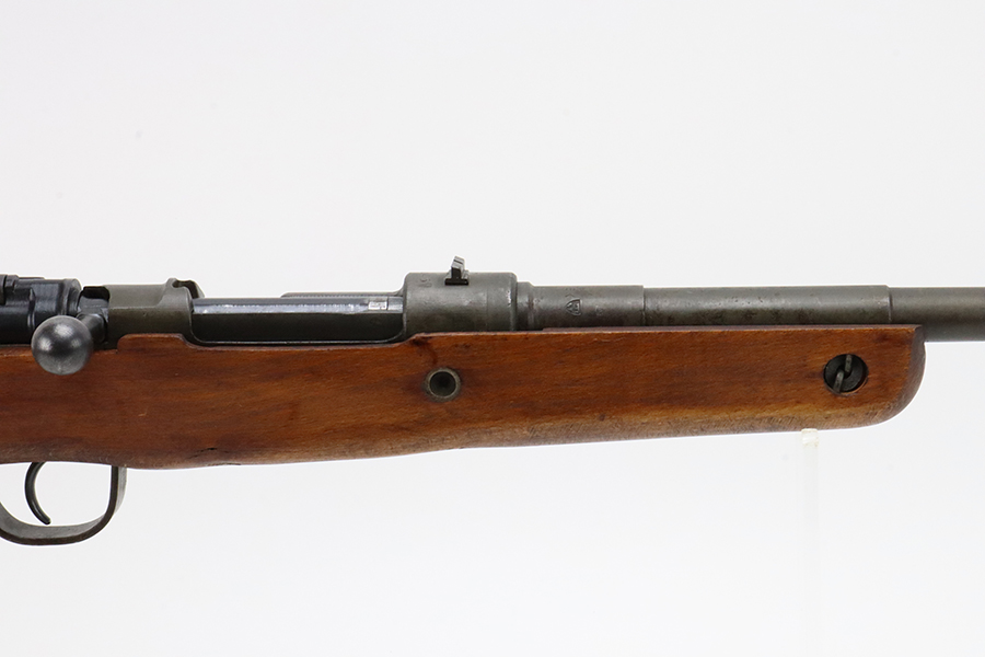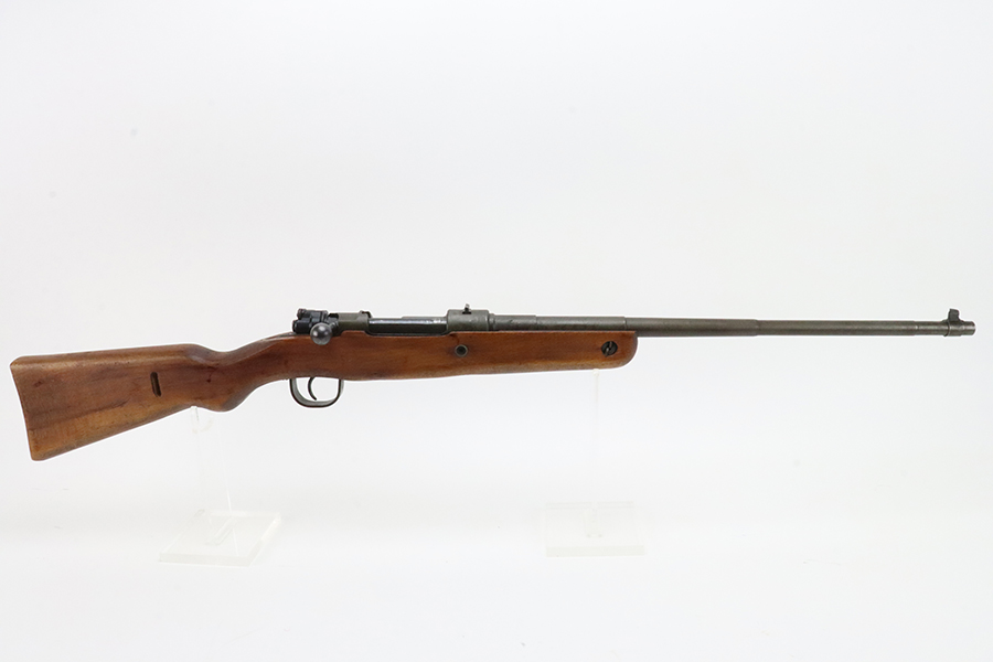 2/29/24 – This is an excellent example of a rare Steyr VG-98 rifle. Manufactured at the very tail end of the WWII, the VG-98 was part of the “Volkswaffen” (People’s Weapon) series of armaments, intended to gear up German 2nd line defensive formations without diverting higher quality armaments still needed by the main formations of the Wehrmacht and Waffen-SS. Most of the units destined to receive these weapons were “Volksturm” (People’s Storm or People’s Assault), which consisted mostly of men too old and boys too young to be properly drafted. When the war came to an end, few VG98s were picked up by Allied trophy hunters since they weren’t as “pretty” as the more common 98k or mechanically novel like some other Volks weapons, resulting in very few being available on the contemporary American market. The heart of the VG98 is a Model 98 receiver, with crude fixed sights, a roughly finished barrel, and a one-piece stock. This particular example is marked ‘bnz 45’, denoting it was made in 1945 at the Steyr factory. The finish is shows minimal wear, and is a mix of phosphated and blued parts. There is some light spotty oxidation on the phosphate parts. Unique straight-bolt. Bolt and receiver are matching. Excellent wood. Mint bore.