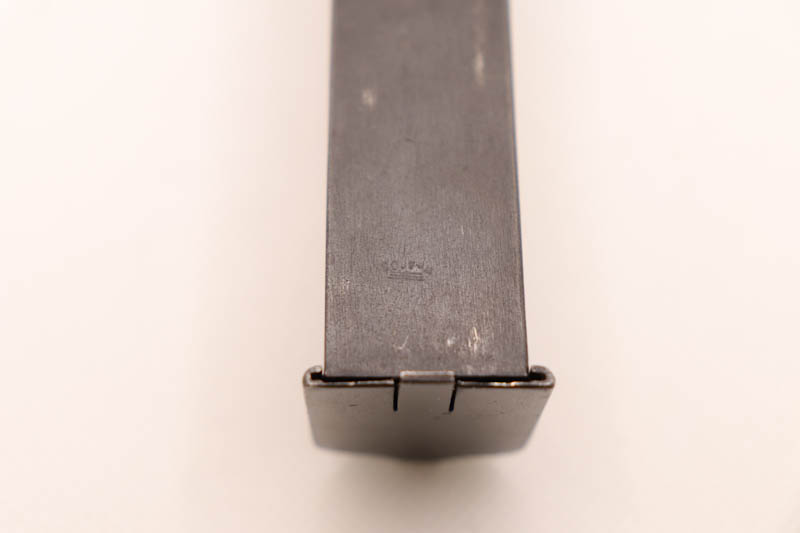 10/17/20 – This is an original WW2 era FN Browning High Power magazine. The magazine is Waffen stamped 103 and is in great condition. There is a bit of rust on the left side (finger side for right-hand shooters) . The spring is strong and fully functional. Guaranteed original and authentic.