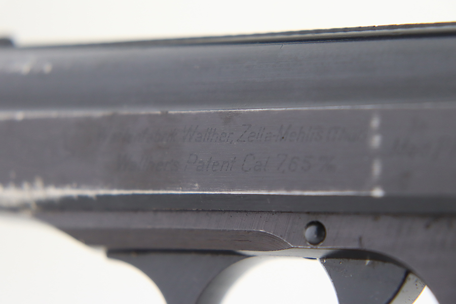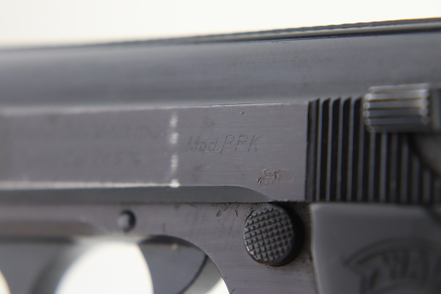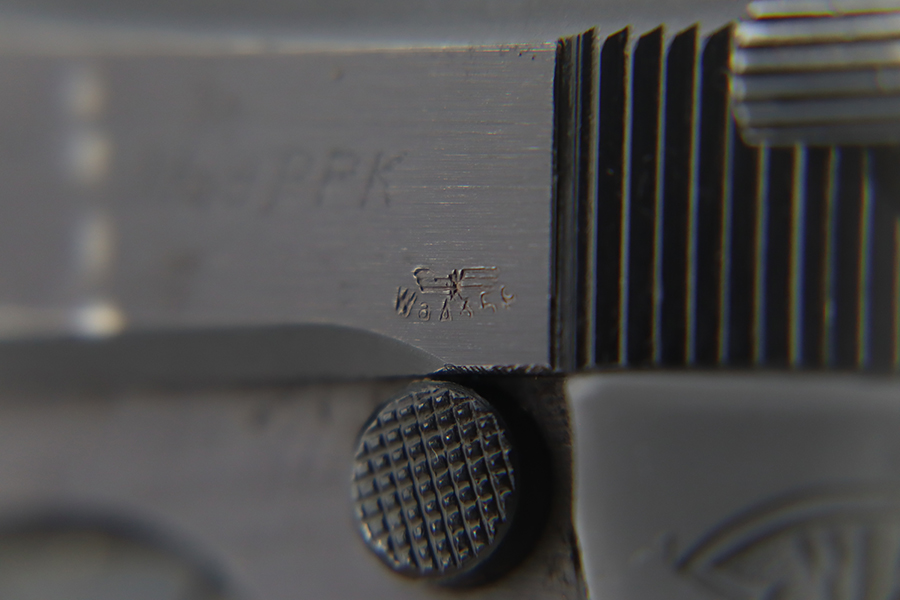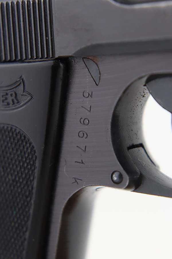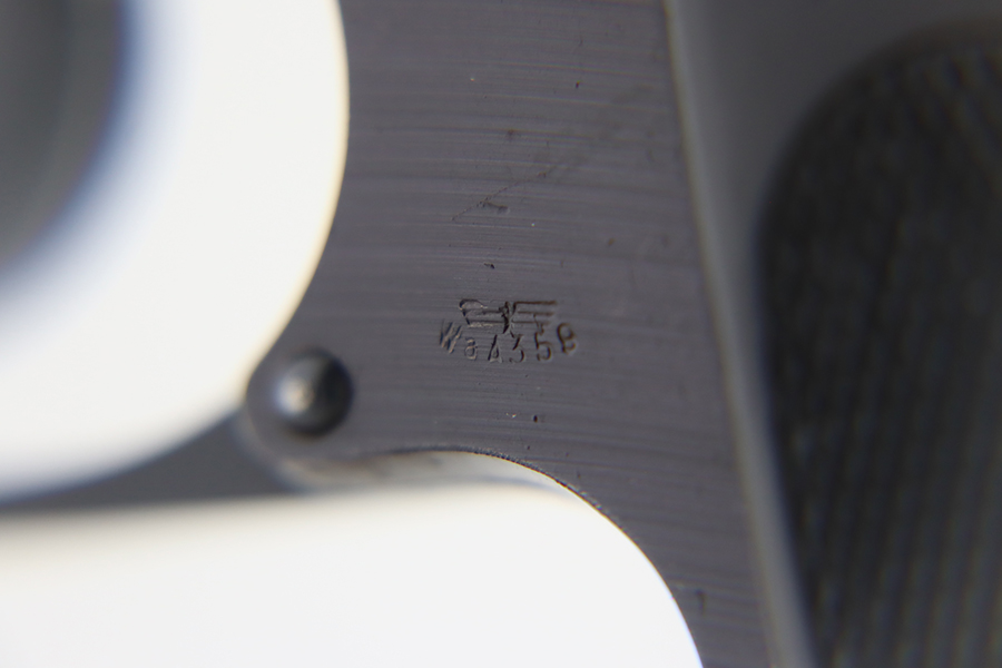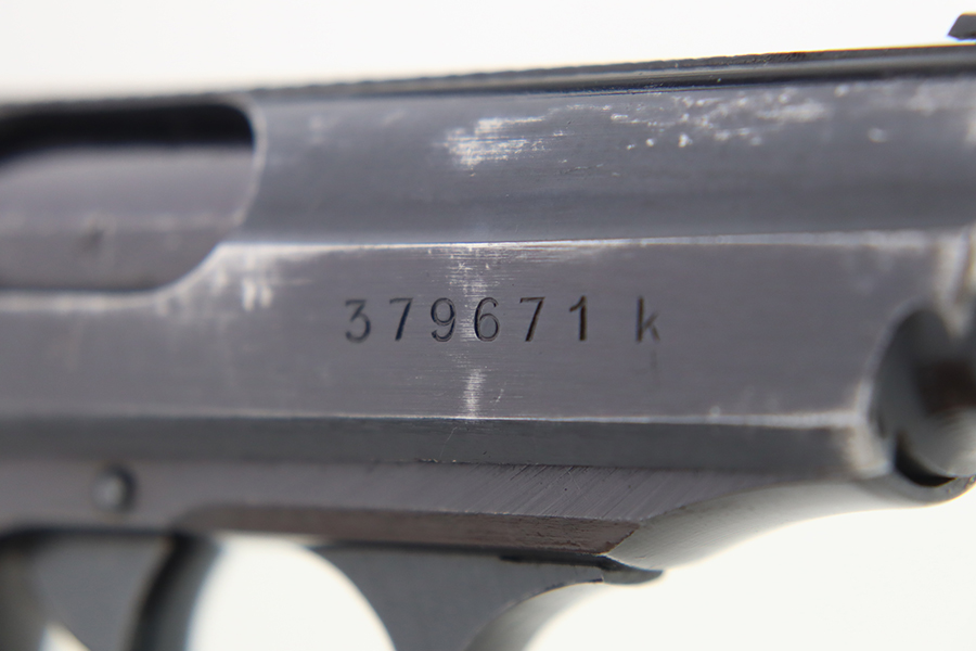 1/31/24 – This is a rare Walther PPK issued to the Nazi military in 1943. It is all matching and has the proper “Waffen 359” military acceptance proofs. This one also comes fitted with a nice black bakelite grip. It has retained about 94-95% of its original wartime finish. There is minor muzzle wear and some small spots of wear on both sides of the slide. Minty bore.
