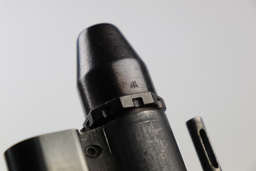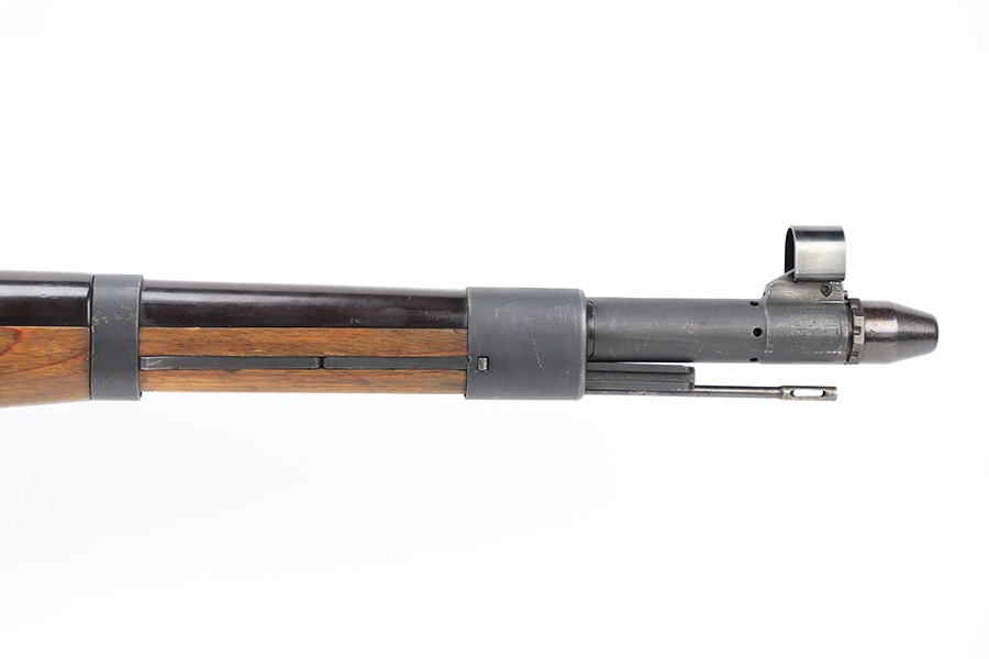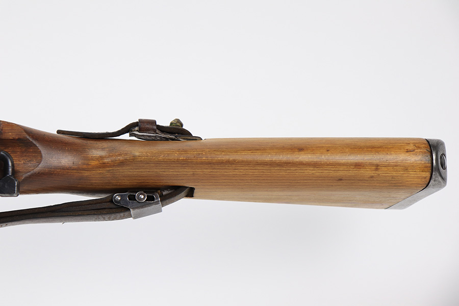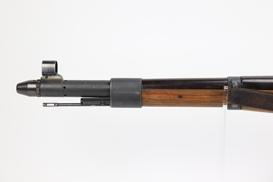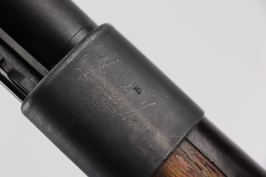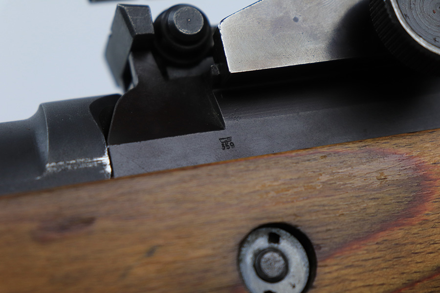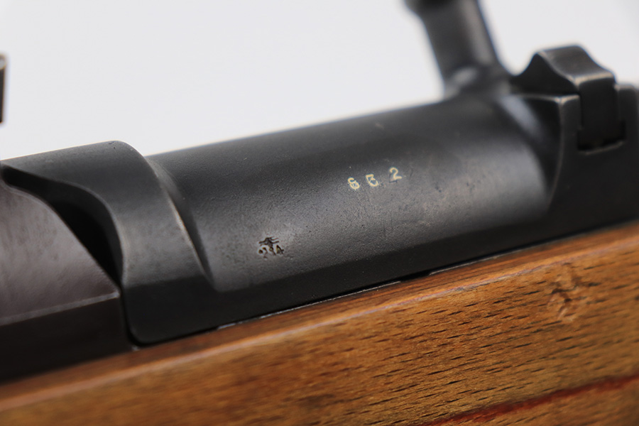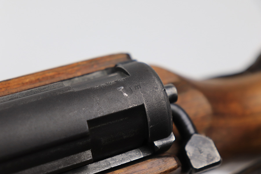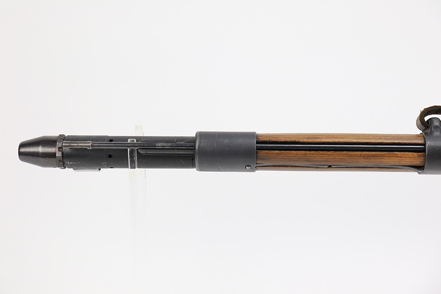 6/8/23 – This is a rare Walther G.41 in sniper configuration from 1943. It features a ZF41 scope with reproduction mount, as well as a rare and original painted scope case. The finish on the rifle has been restored though, looking similar to a parkerized finish. All numbered parts on the rifle match but the bolt carrier has an overstamp. Bore has strong rifling but some frost and freckling in the grooves. Stock is in terrific condition but was sanded at some point. Scope optics are a little cloudy but the reticle is fairly clear. Rifle comes with a cleaning rod and sight hood. Also has a period original sling.
