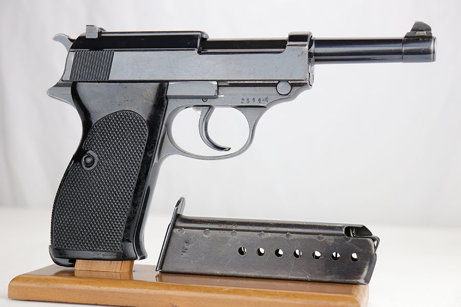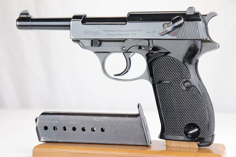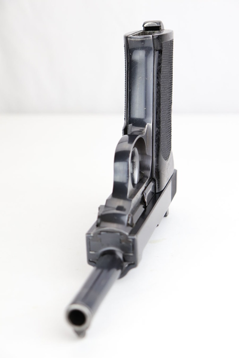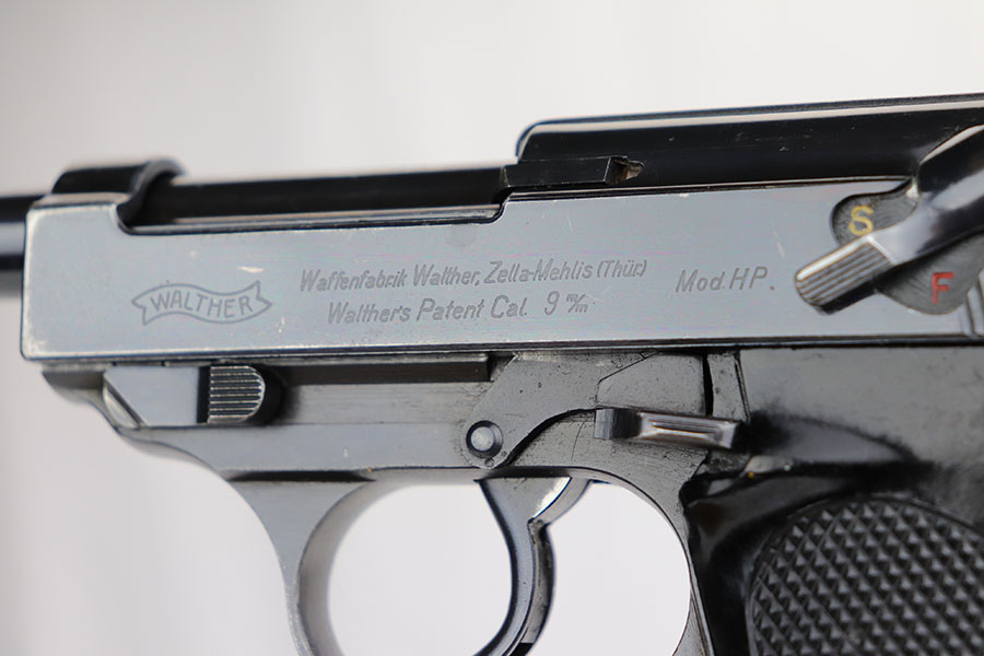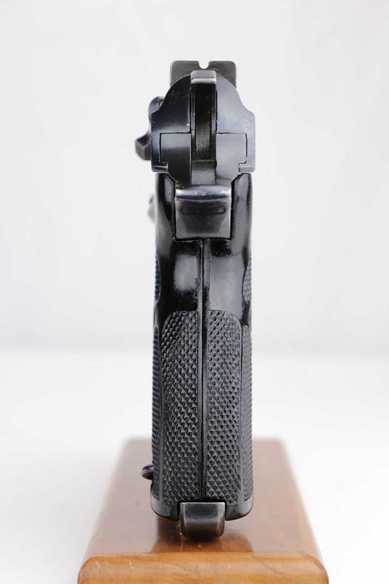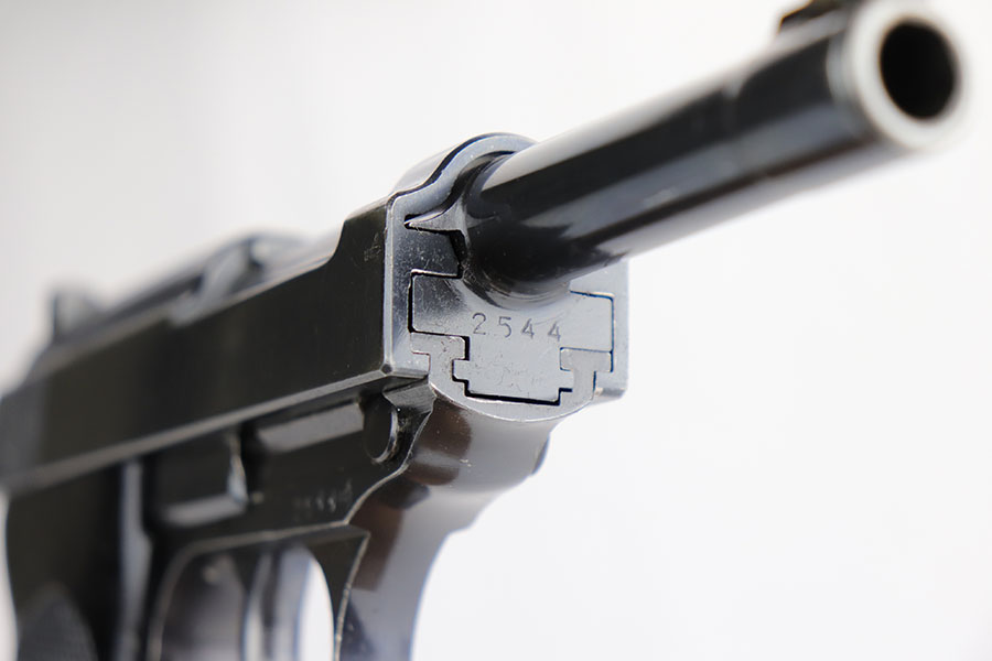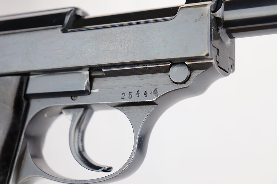 10/16/19 – This is a rare early Walther P.38, marked and known as the Mod HP or M/39, that was part of the second Swedish contract order for these pistols. There were only about 500 of this variant produced, all in April of 1940. This pistol has very nice, early high polish finish that rates around 95%. The condition is somewhat difficult to grade as there are many very tiny surface scratches on the slide, which is surprisingly common on these guns. There’s also light finish loss on the edges of the slide, as well as on the muzzle. The front strap similarly shows minor finish loss / thinning. The bore has wear towards the muzzle-end, and this is mostly patina / roughness in the grooves. The rifling is excellent, 7/10 overall on the bore. The grips are original and correct.