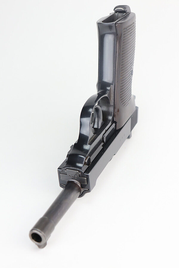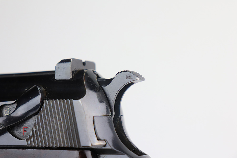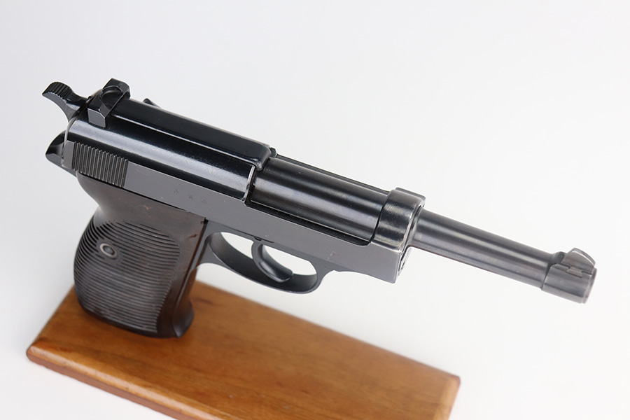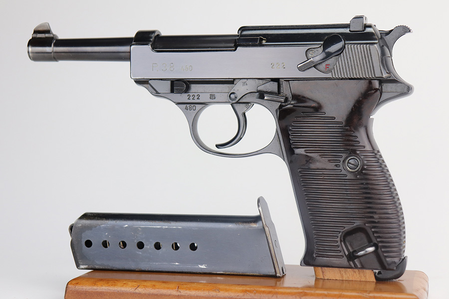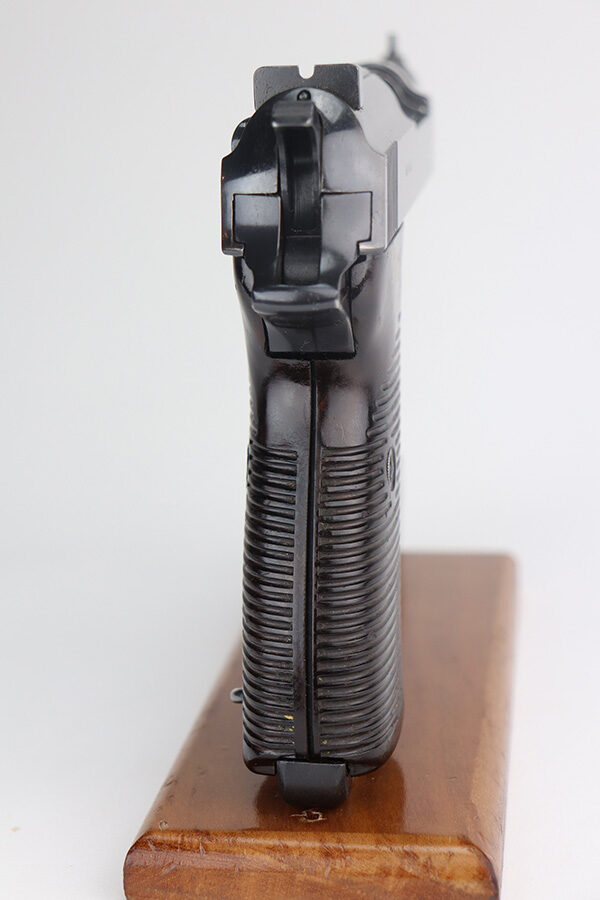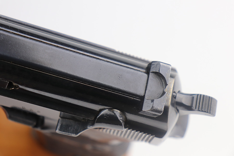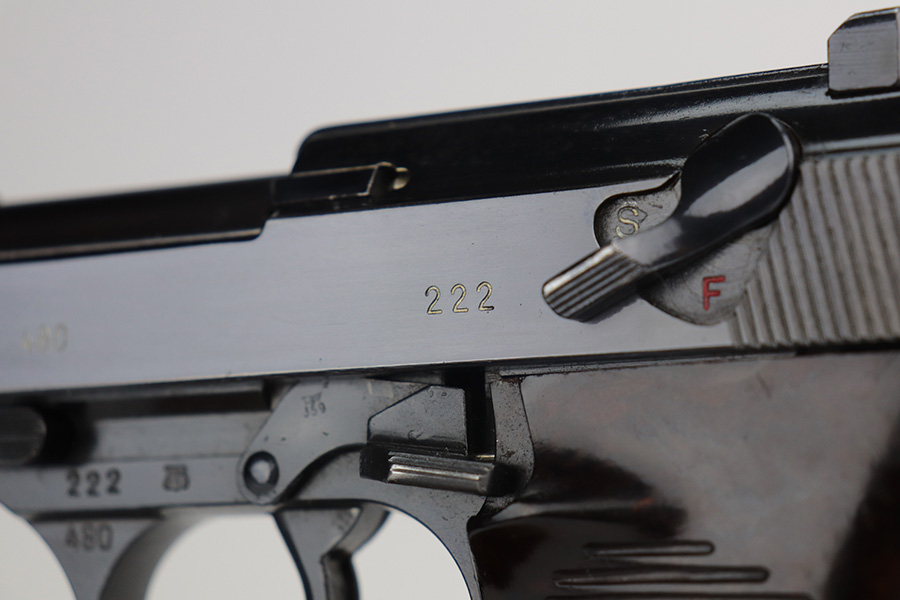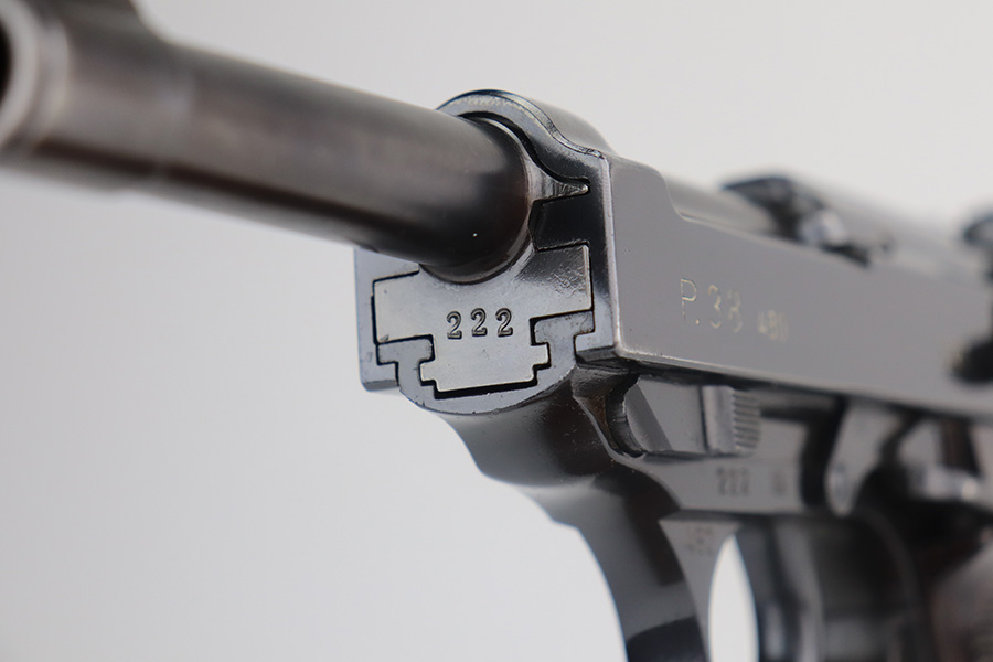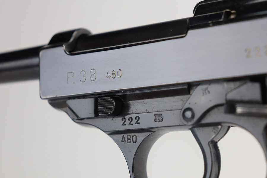 6/2/21 – This is a rare “480 Code” Walther P.38 issued to the Nazi military in 1940. The gun is all matching and has the proper “Eagle 359” military proofs throughout. We believe the finish has been professionally restored. It has retained more than 98% of this gorgeous bright blue finish. There is just a hint of wear on the front edges of the slide and around the muzzle. Very minor pin-pricking under the bluing on the front strap. Minor freckling on the top of the slide. Comes with excellent grips and a proper magazine. Minty bore. De-cocker does not work.