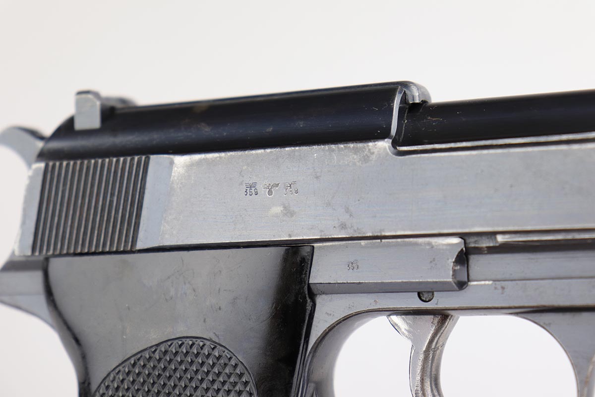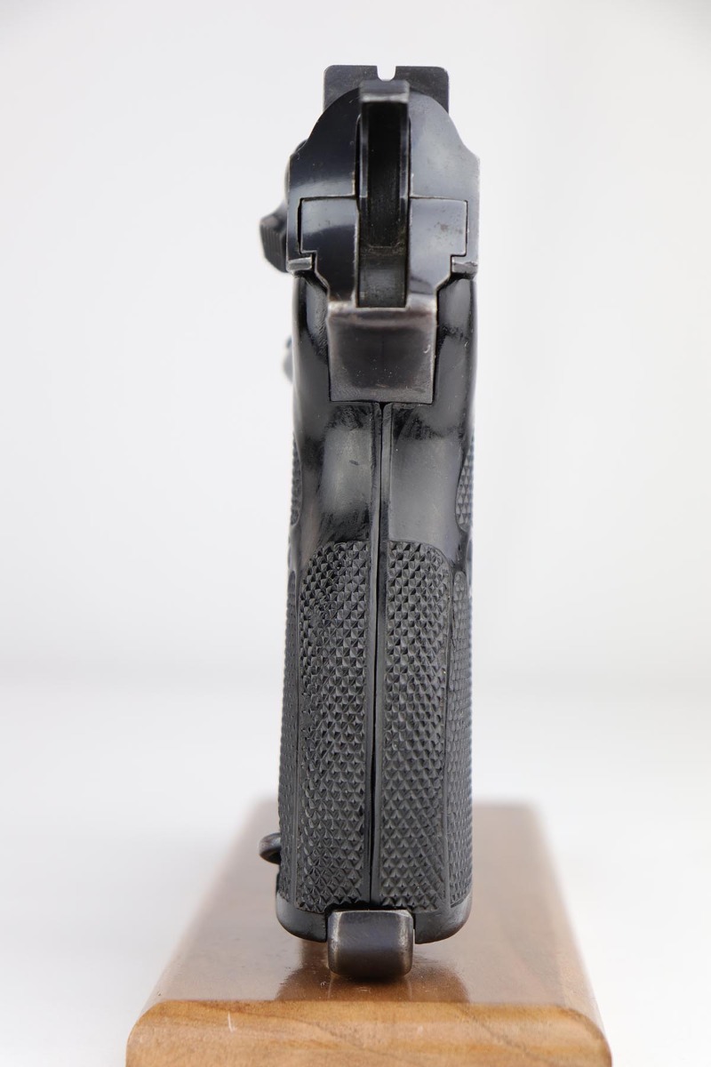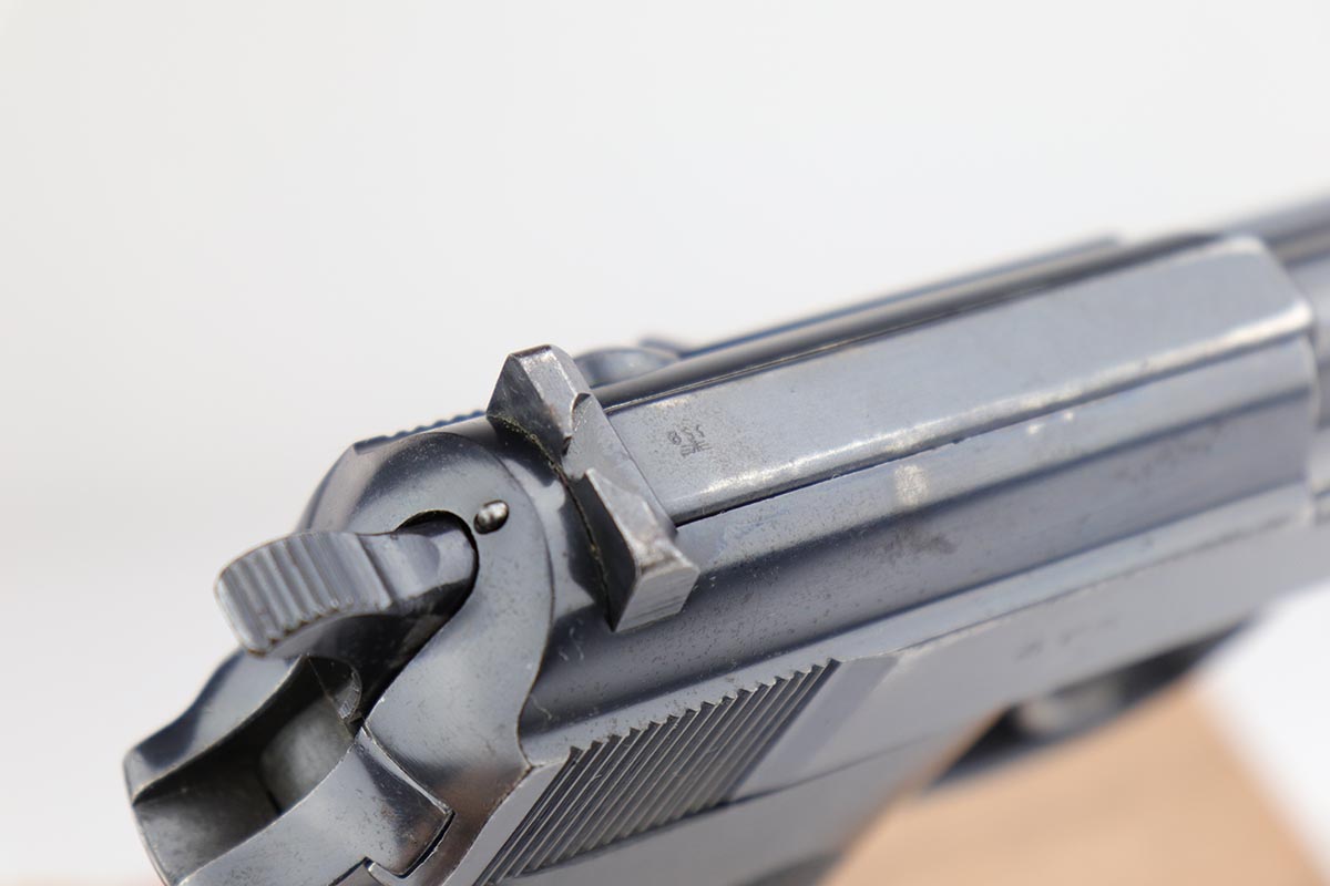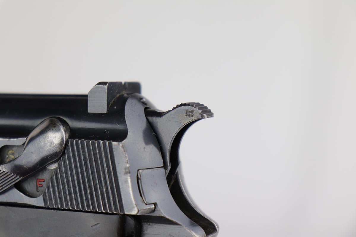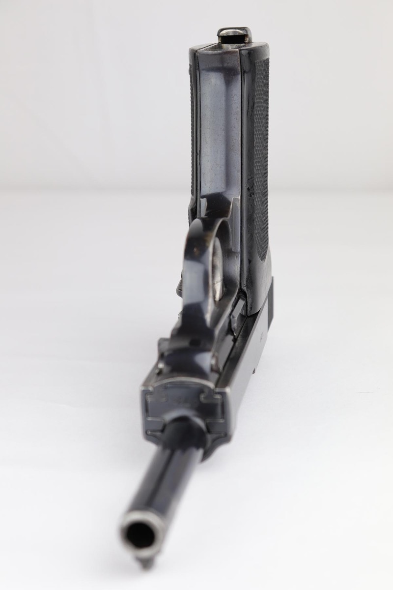 8/28/19 – This is a rare and highly desirable Zero Series Walther P.38, part of the first variation run of these pistols. Only about 1,000 of these pistols were produced and very few exist in such condition. The pistol is all matching and original with about 92-94% high-polish blue remaining. Muzzle and edges show the majority of the finish loss, with some more on the trigger guard and right side slide. Serial number means this would be the 735th P.38 ever made. The grips are matching numbered to the pistol, and the magazine is mismatched but an original zero series magazine. Bore is shiny and strong with only minor frost. Concealed extractor and rectangular firing pin are present and correct. Good mechanics, including de-cocker.