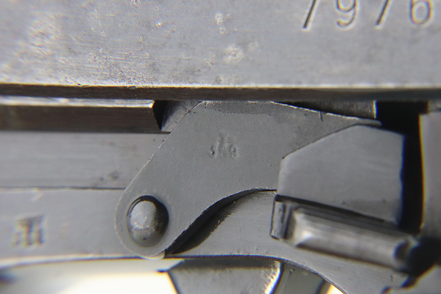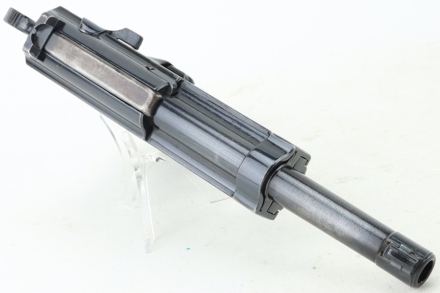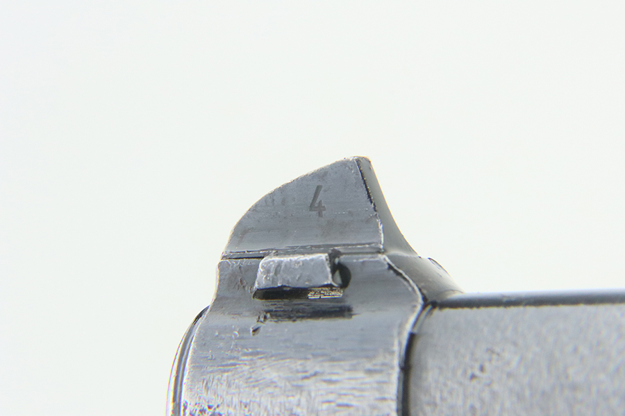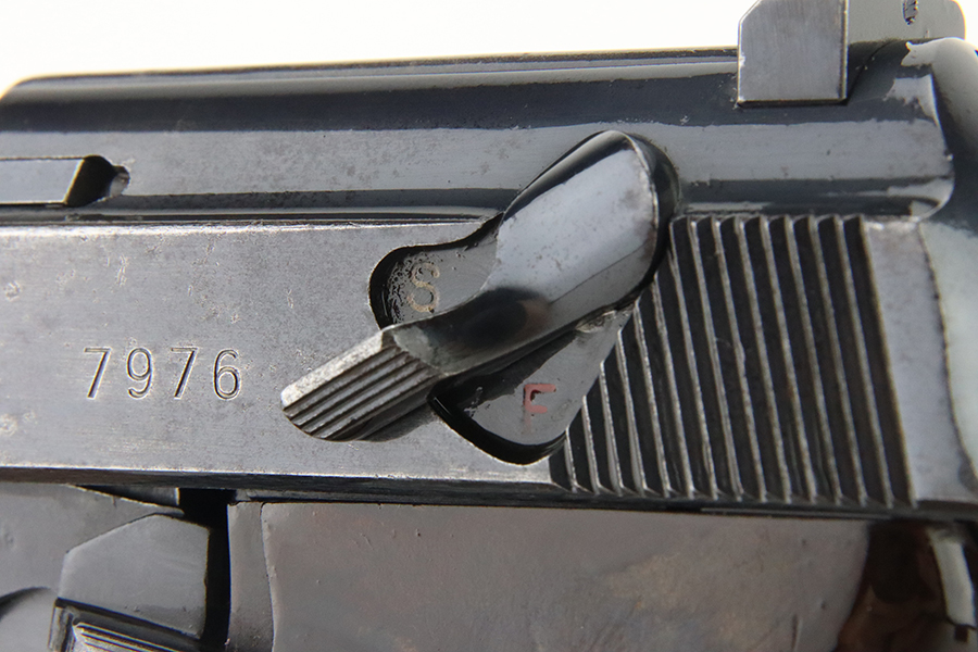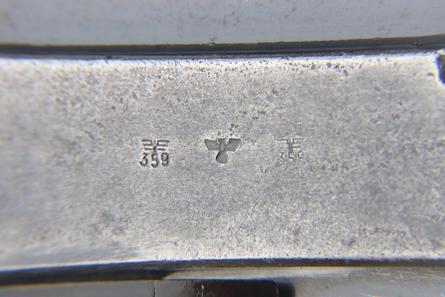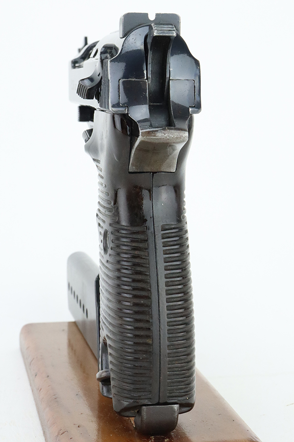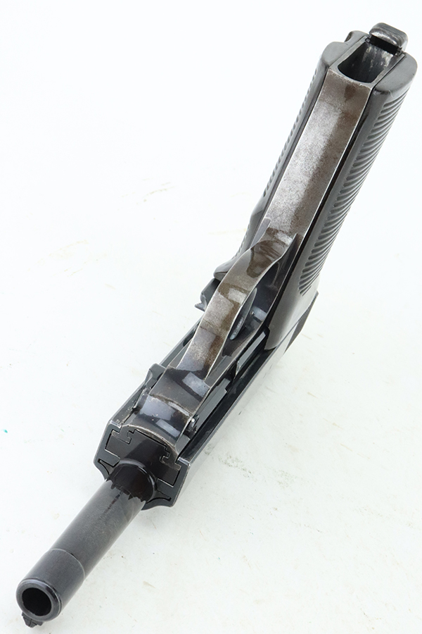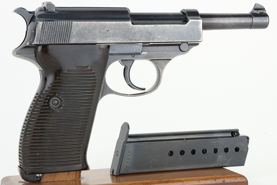 5/15/24 – This is a very rare and desirable Nazi Walther P.38 from 1940. Referred to as the “ac no date”, there were only about 2,500 of these produced, and this one is in the correct serial range. There’s only about 50 reported examples known. The numbered parts on this one match but the full barrel assembly is not numbered, including the locking block. It has retained roughly half of its original high polish finish with obvious wear throughout and some areas of pin-pricking on the slide and on the front strap. Fitted with matching-numbered and waffen-proofed grips. Comes with a proper double “Eagle 359” proofed magazine, but it is mismatched. The bore is mostly shiny with great rifling, but there is pin-pricking in the grooves. De-cocker is functional.