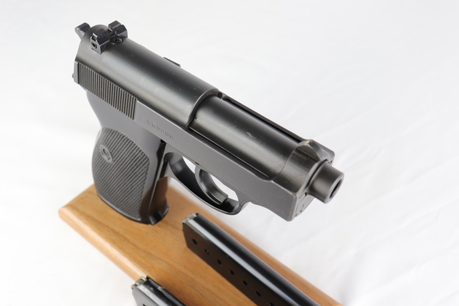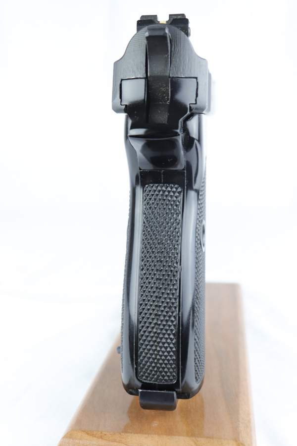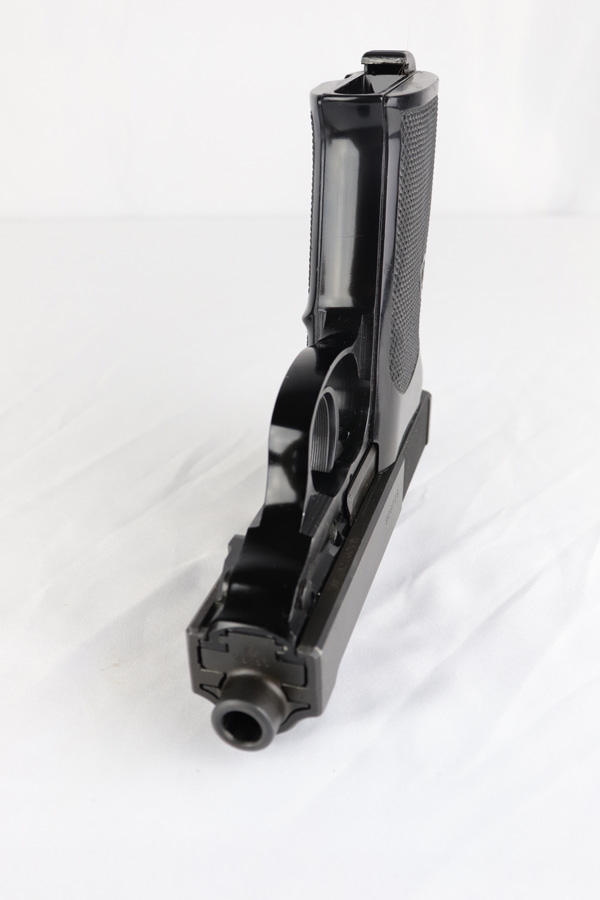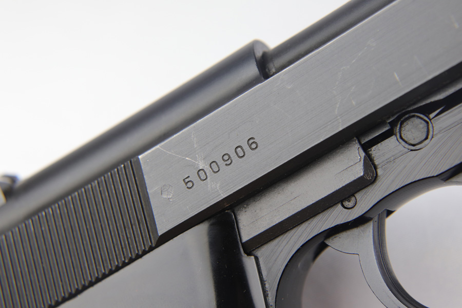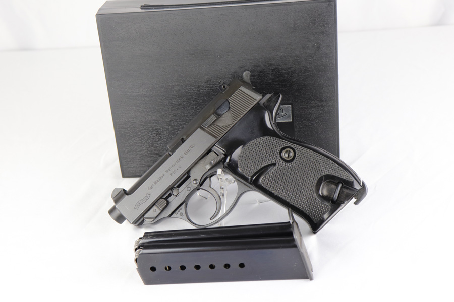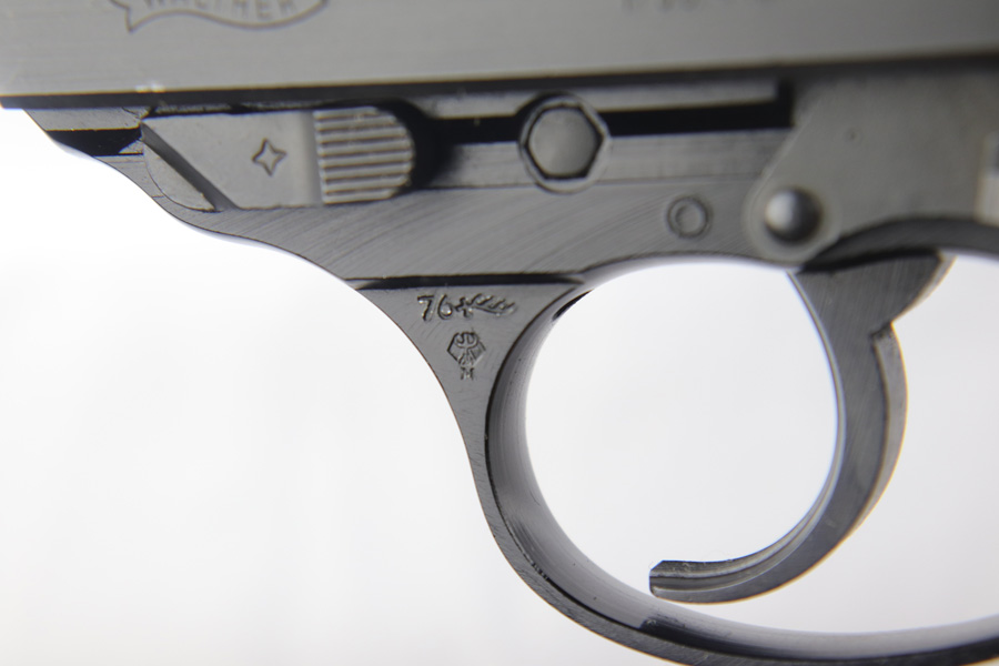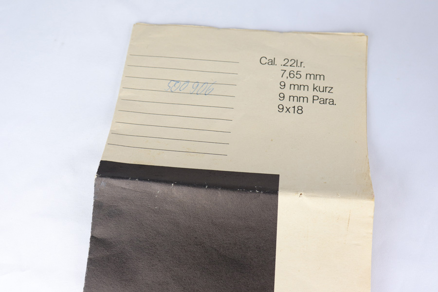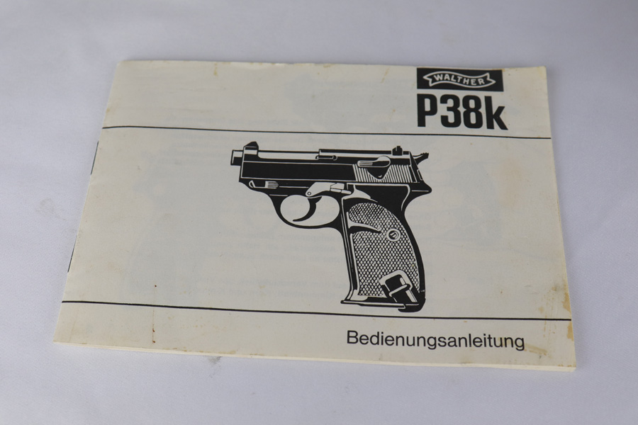 2/6/19 – This is a very scarce variant of Walther P38 pistol, made with a shortened 2.5 inch barrel in 1974 in West Germany. This particular pistol is especially rare as it is not import marked, and doesn’t have the serial on the side of the frame. Nearly every other example we have seen has been import marked, generally by Interarms. This would likely imply that it was meant for the European commercial market and brought here “covertly”. The gun is practically ‘as new in the box’ with just a few tiny spots of handling wear and mint grips and bore. Only 2,600 of these interesting pistols were made in the 1970s and even fewer were actually imported into the US. This gun is complete with manual, matching test target, and original but unnumbered box. Also includes a spare mag. 1976 date is present on frame. Manual is specifically marked P.38-K, which is also hard to find.