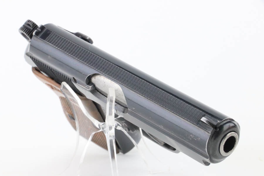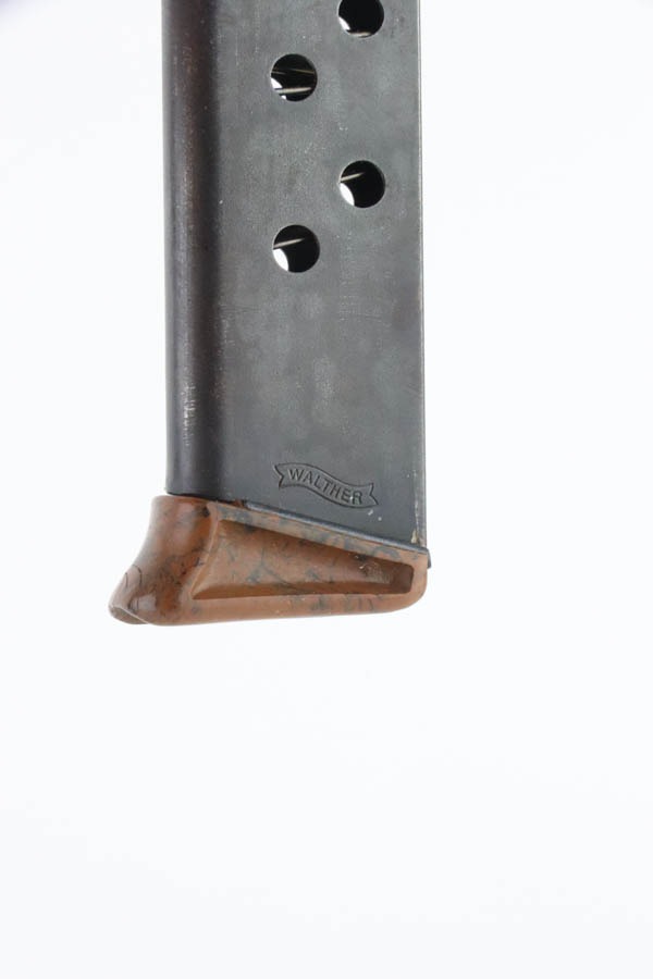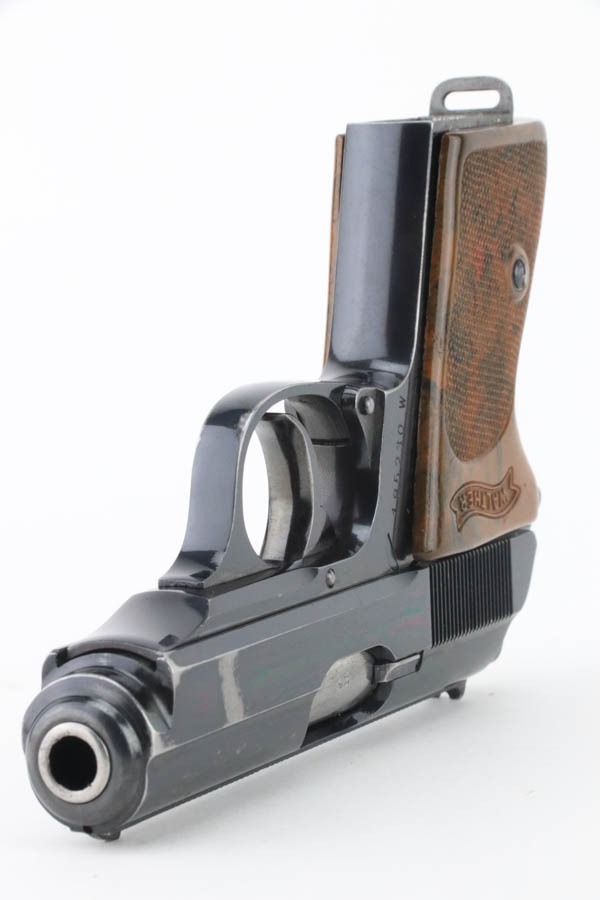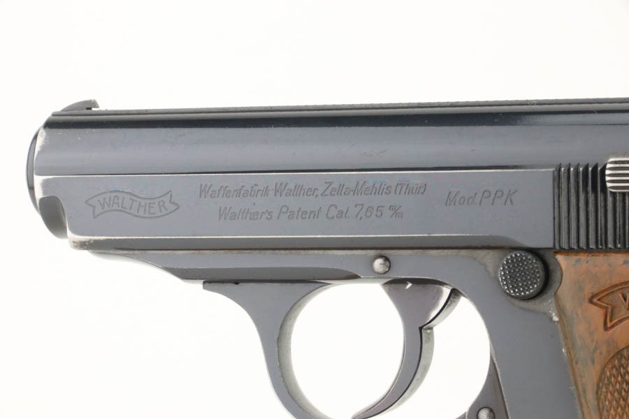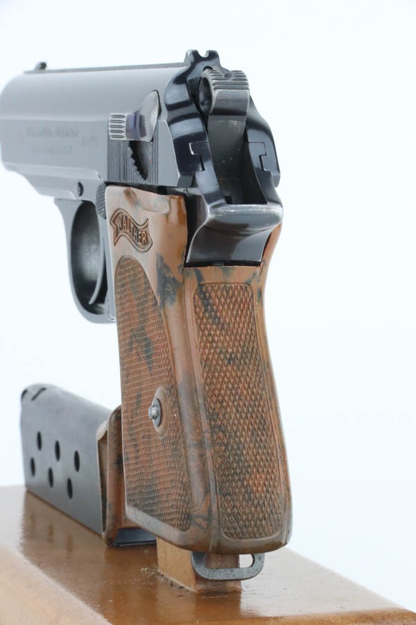 10/7/24 – This is a rare “W-suffix” Walther PPK manufactured in 1939. It is all matching and has the proper “Crown N” proofs. There’s very limited knowledge on this variation of PPK, so we aren’t sure the significance. Definitely an interesting wartime commercial production piece. It has retained about 94-95% of its original high polish finish. There is minor muzzle wear and one small spot of wear on the right side of the slide. Fitted with a very nice marbled brown Walther grip and comes with a proper Walther banner-only finger extension magazine. Mint bore.