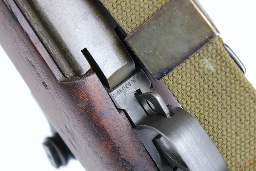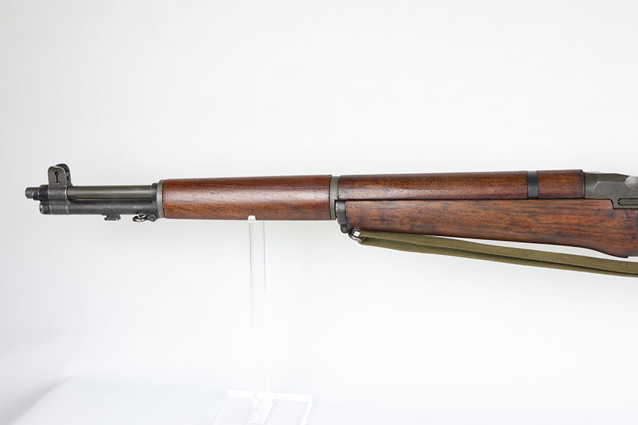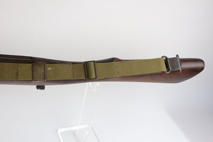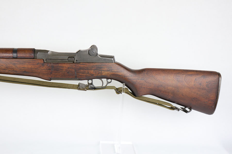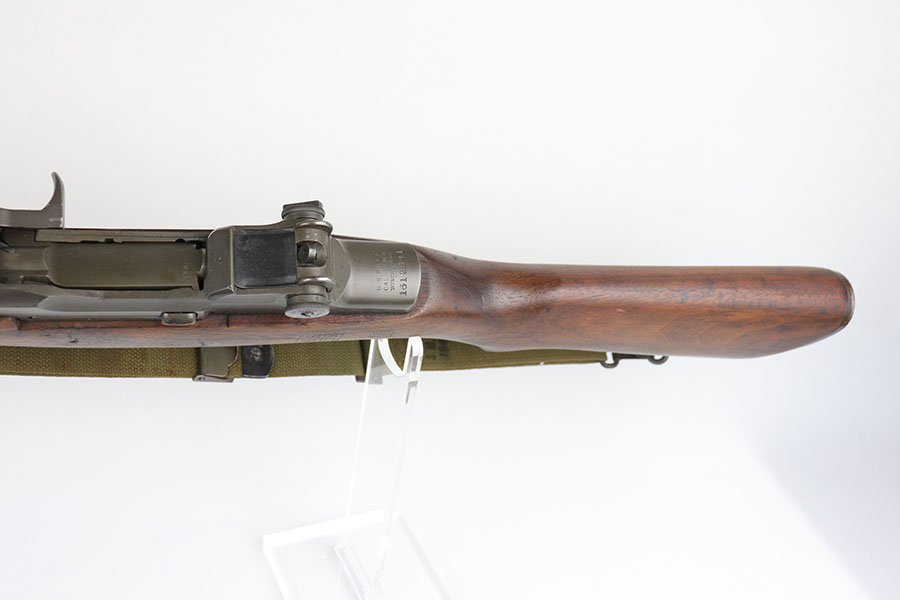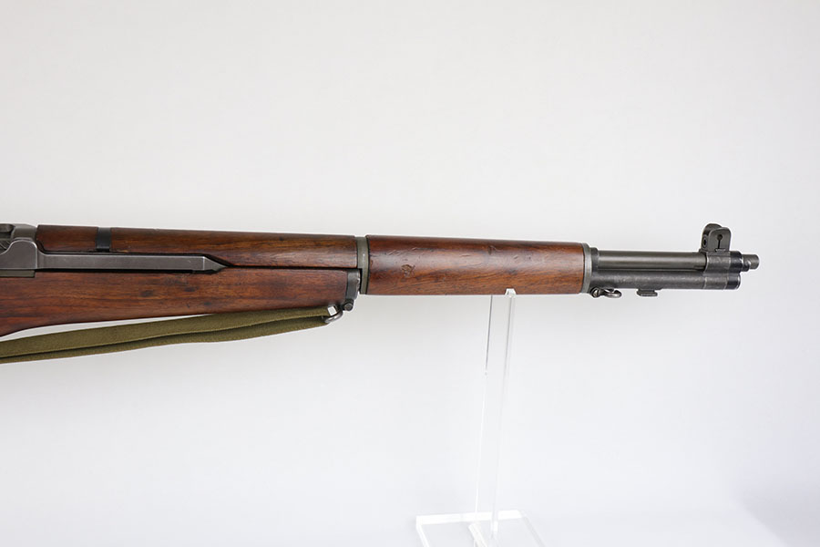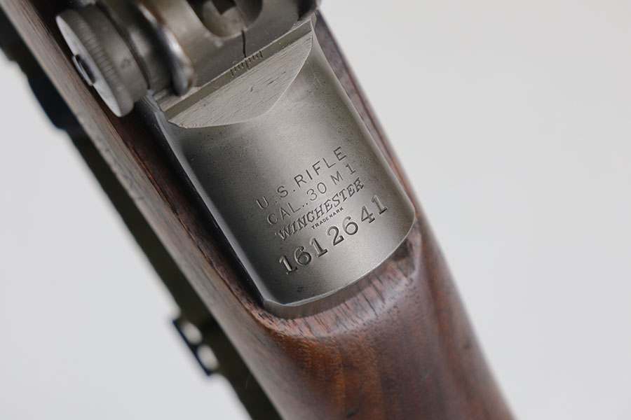 6/10/20 – This is an excellent example of a Winchester produced M1 Garand from 1945, also referred to as a Win-13. Produced by Winchester late in World War II, the “WIN-13” (aka “Dash 13”) Winchester M1 Garands were built using receivers that had been manufactured in 1943 and laid aside until late to mid 1945. Found in a serial number range of “1601150” to “1642000”, itself an overrun of one of Springfield’s assigned serial number blocks from 1943, the Win-13 Garands represent the very end of Winchester’s WWII Garand run, numbering less than 40,000 out of over a half-million (about 8%) Winchester M1s. The finish on the metal parts shows minimal wear, mostly a little thinning on the trigger group and some wear on the gas tube. Beautiful receiver finish. Winchester proofed stock with GHD inspector mark and crossed cannons cartouche. Winchester marked barrel and trigger group. Original sling. Bore has strong rifling but a bit of frost in the grooves. Muzzle rating is a 1, throat is less than 1.