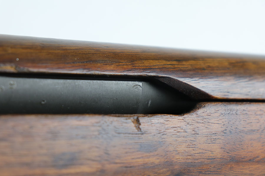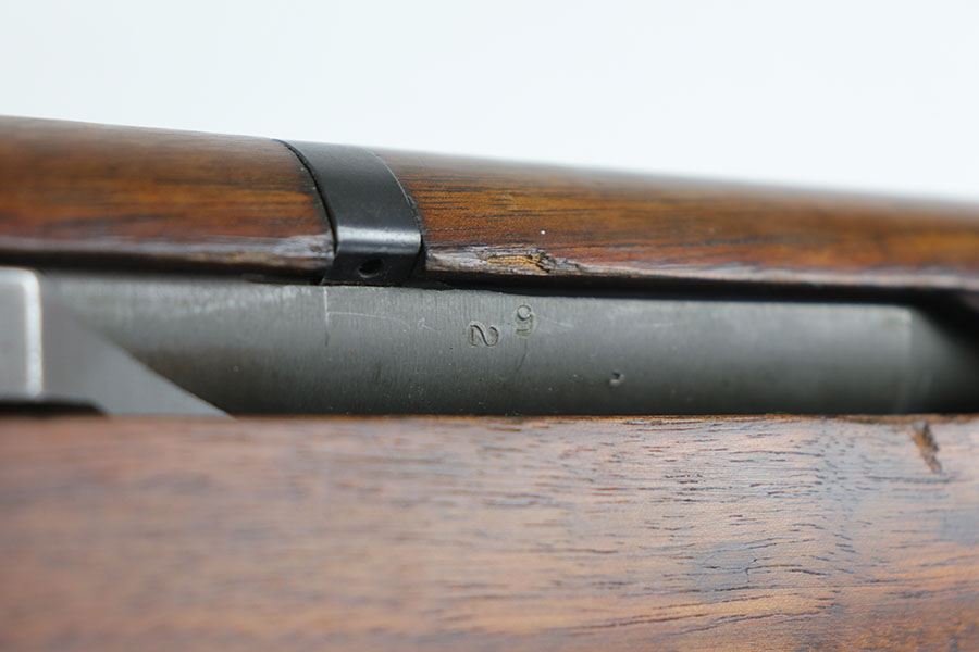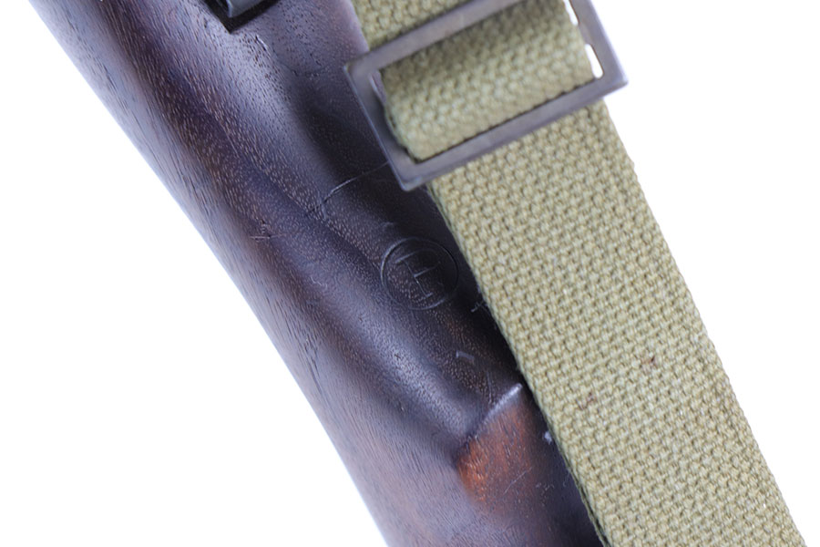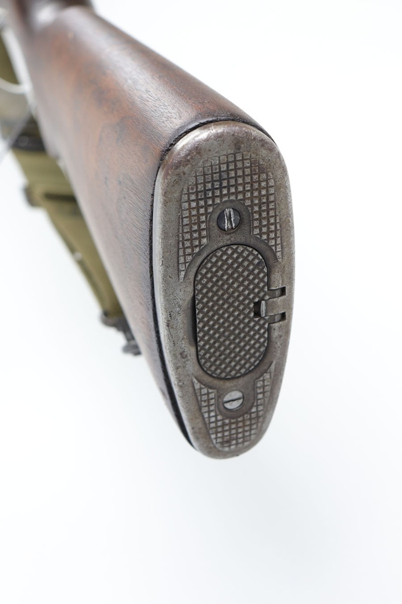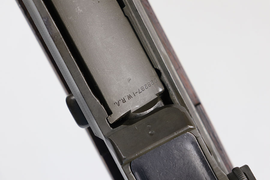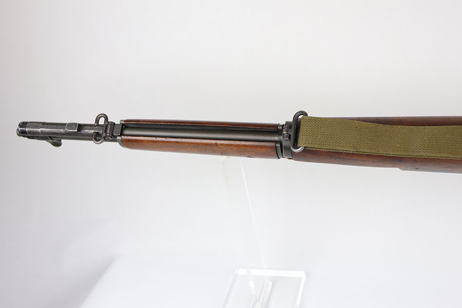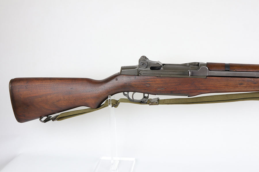 6/10/20 – This is an excellent example of a Winchester produced M1 Garand from 1945, also referred to as a Win-13. Produced by Winchester late in World War II, the “WIN-13” (aka “Dash 13”) Winchester M1 Garands were built using receivers that had been manufactured in 1943 and laid aside until late to mid 1945. Found in a serial number range of “1601150” to “1642000”, itself an overrun of one of Springfield’s assigned serial number blocks from 1943, the Win-13 Garands represent the very end of Winchester’s WWII Garand run, numbering less than 40,000 out of over a half-million (about 8%) Winchester M1s. The finish on the metal parts shows minimal wear, mostly a little thinning on the trigger group and some wear on the gas tube. Beautiful receiver finish. Winchester proofed stock with GHD inspector mark and crossed cannons cartouche. Winchester marked barrel and trigger group. Original sling. Bore has strong rifling but a bit of frost in the grooves. Muzzle rating is a 1, throat is less than 1.