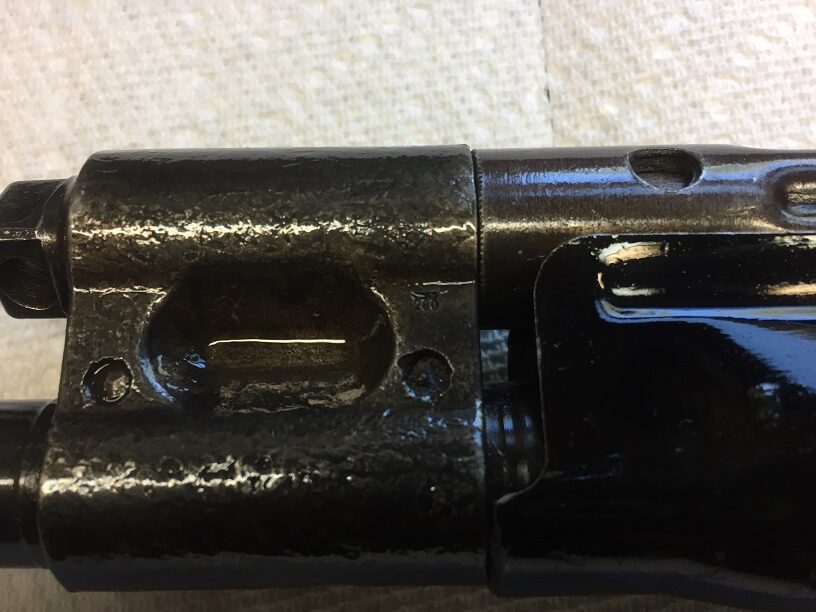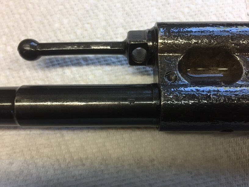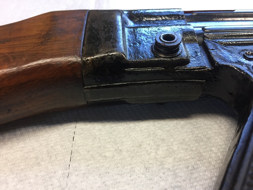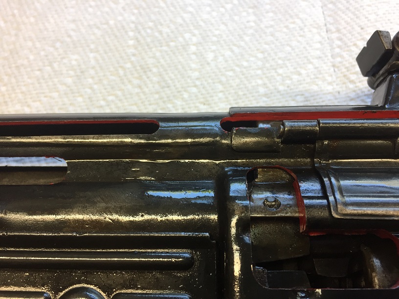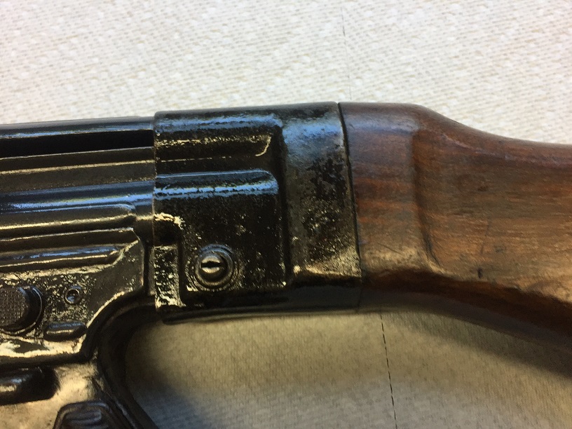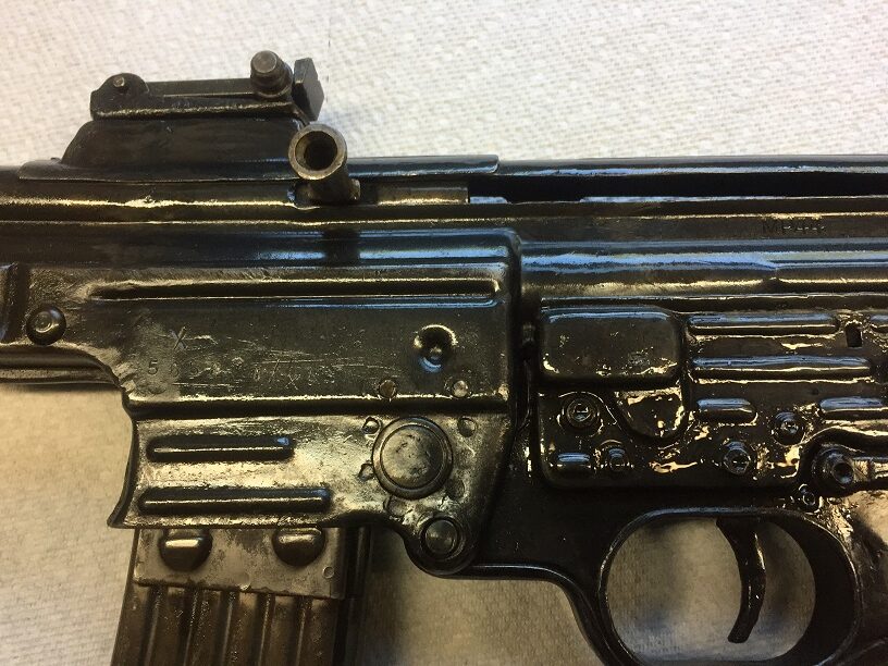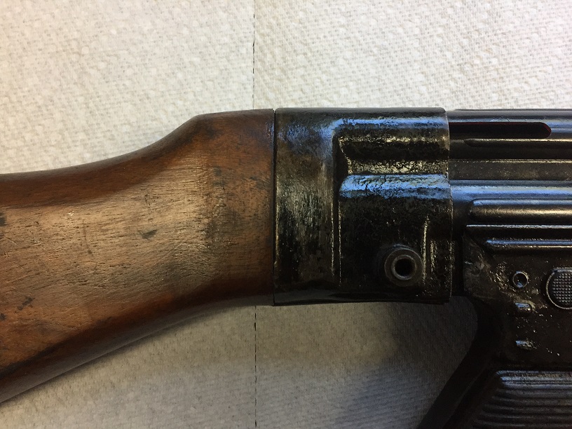 This receiver has all original markings on it, including a very late war serial number and factory marking, and correct Waa markings under the trunnion. It also bears an X stamp on it, which would appear to indicate that it was a Russian capture at some point after its construction. This receiver is very rare and unique, and the fact that it was likely a Russian capture adds some interesting history to an already very historical offering. This rifle was likely constructed before March of 1945, and likely saw combat on the Russian front as Allied forces closed in on the heart of the Reich. It is reasonable to assume that this rifle saw combat, as no STGs were held in reserve depots, as were many K98k’s which were captured in non combat conditions. It is also reasonable to assume that this rifle saw action in one of the most hellish theaters of modern combat history.