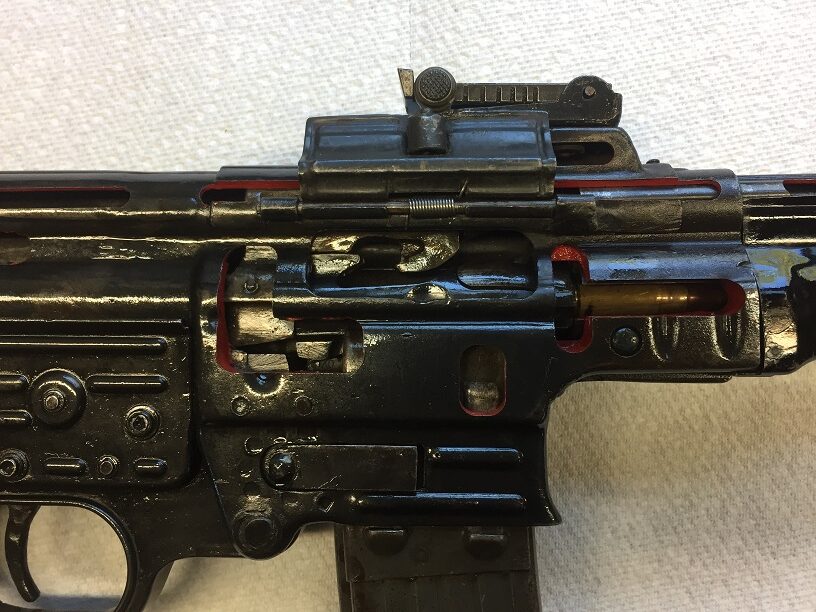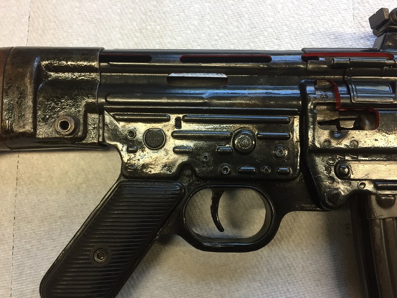 This trainer has the following original WW2 parts. Please note that none of these parts were serviceable upon their inclusion into this cutaway rifle, as that would be near heresy. I build live fire STGs and all of the parts included here, form bolt to gas block to barrel, were parts I was unable to include on live fire rifles, for a variety of defects, damage or age. I feel this was a constructive and historically appropriate use for what otherwise was a bunch of non useable parts, and now they will live a life outside of slowly degrading in a drawer.