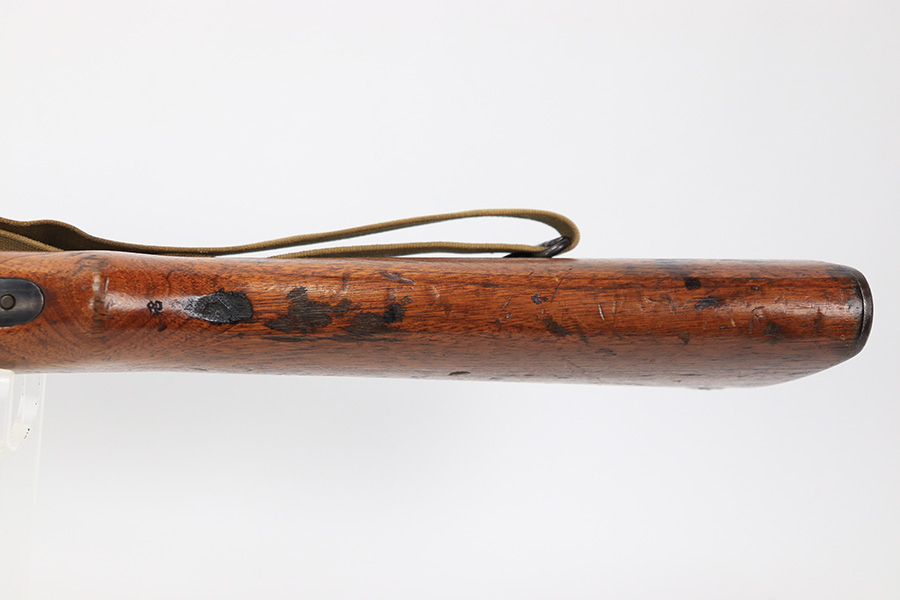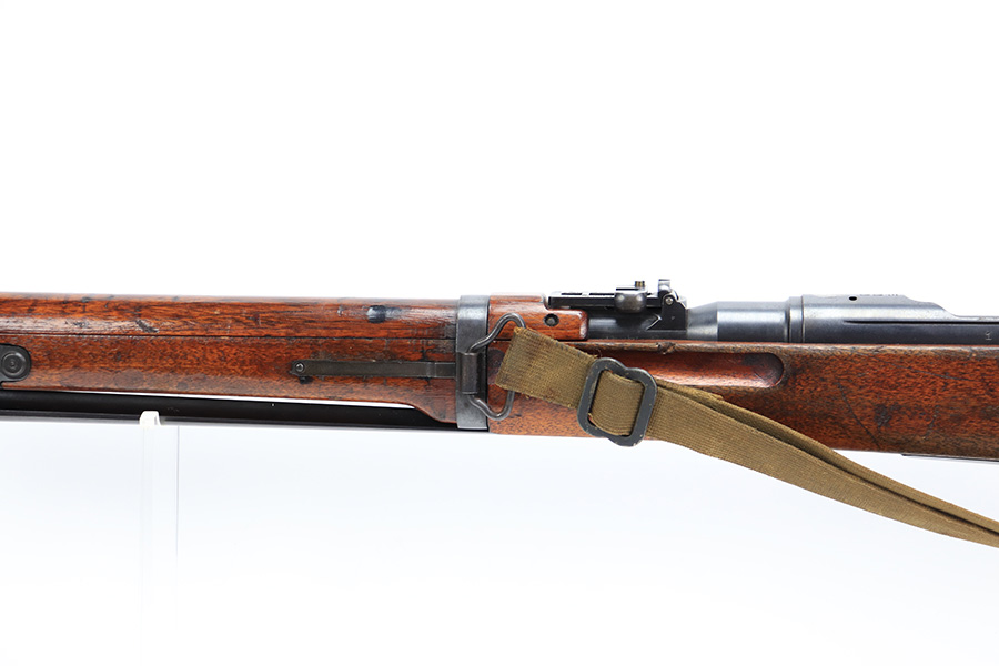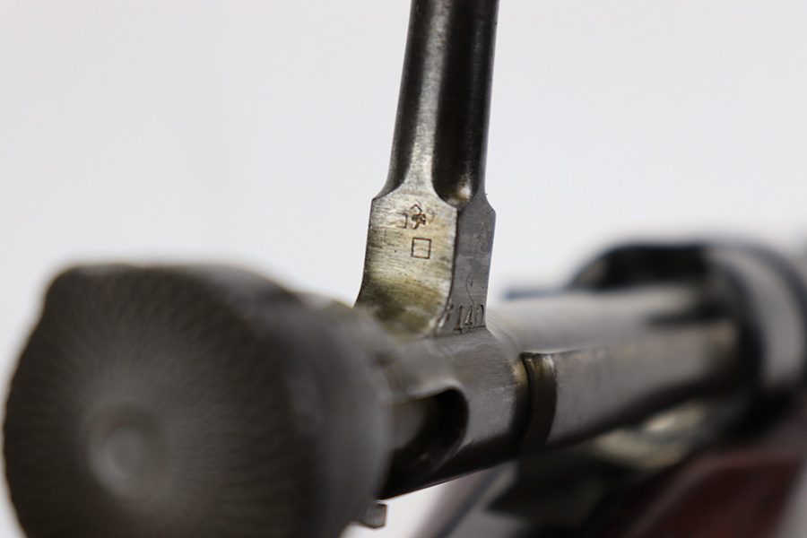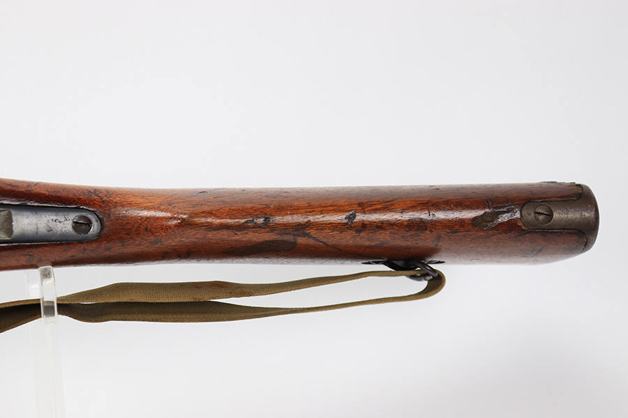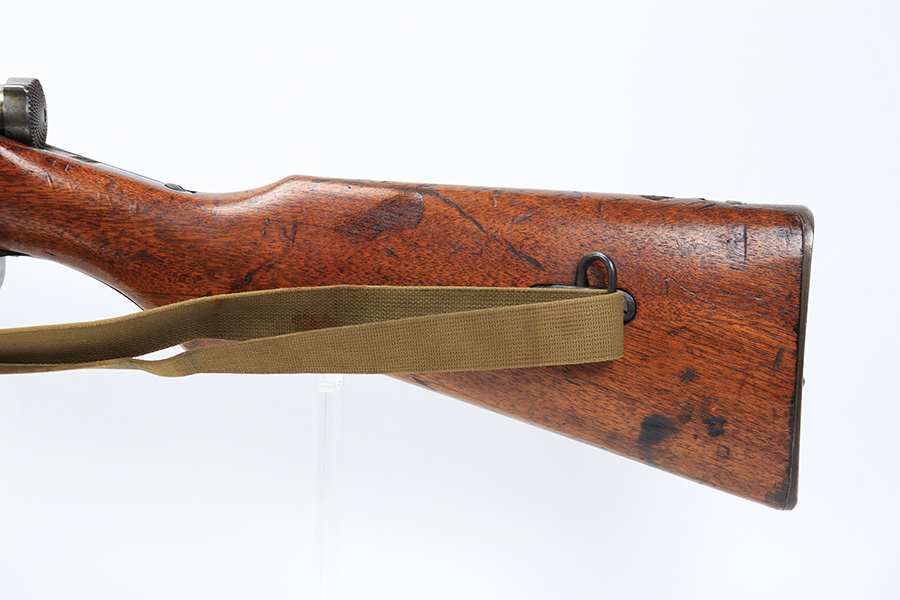 8/30/23 – This is a minty example of a rare Nagoya Arsenal-made Zero-Series Arisaka Type 44 Carbine. Only about 2-3,000 produced. This one is all matching, but has a ground Imperial mum stamp on the receiver. The metal parts have retained nearly all of their finish with just very minor pin-pricking around the muzzle and on the bayonet lug. Very nice wood furniture with the typical signs of wear and use. Comes with a period-correct canvas sling. Mint bore.