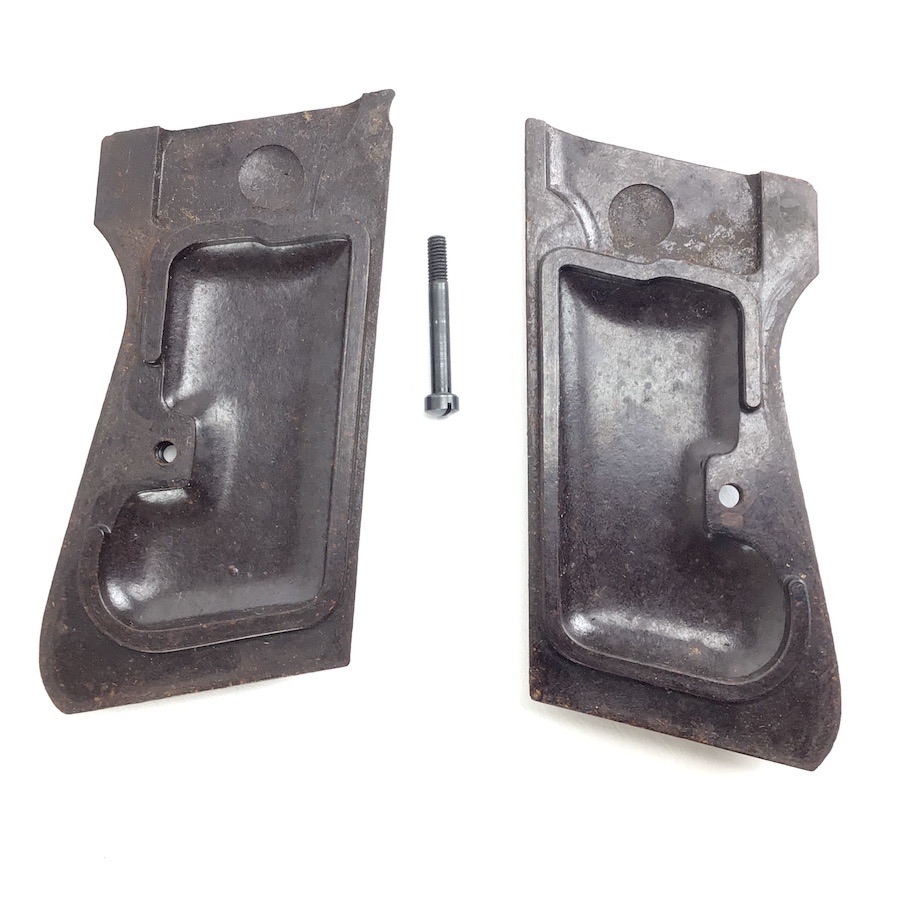 9/26/24 – This is a rare, and original pair of WW2 era Walther PP grips. The grips are a reddish / brown bakelite color, which is the most uncommon of the PP grips. The grips are correct WW2 wartime variation with no weighted inserts. These grips are in excellent condition with no cracks or chips and includes an original screw.