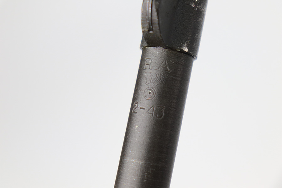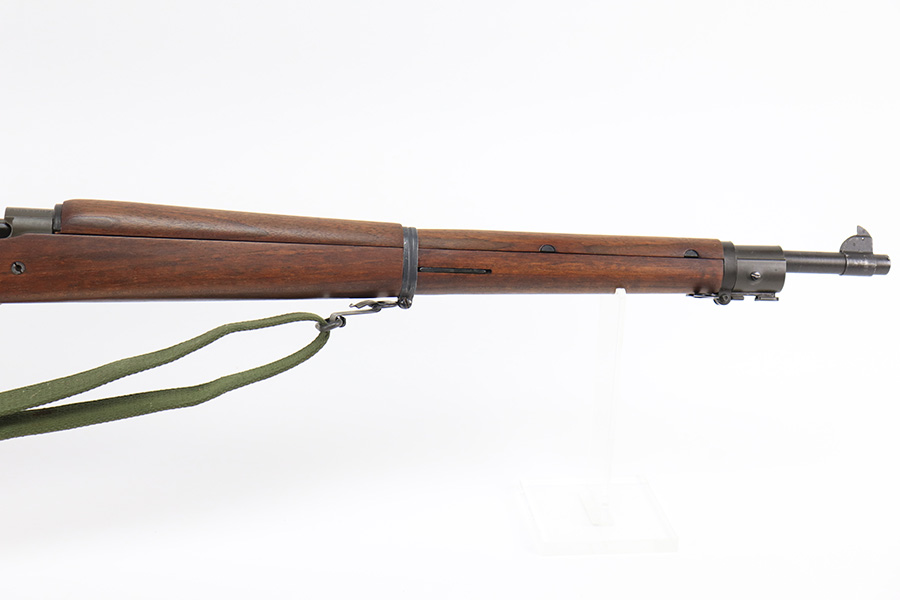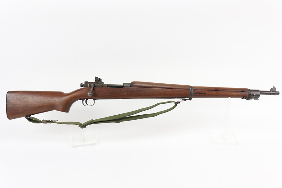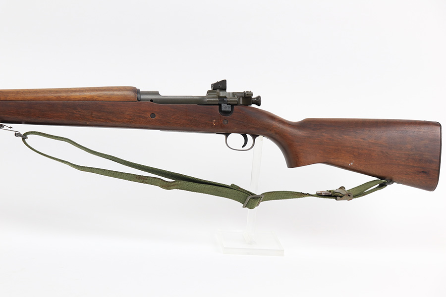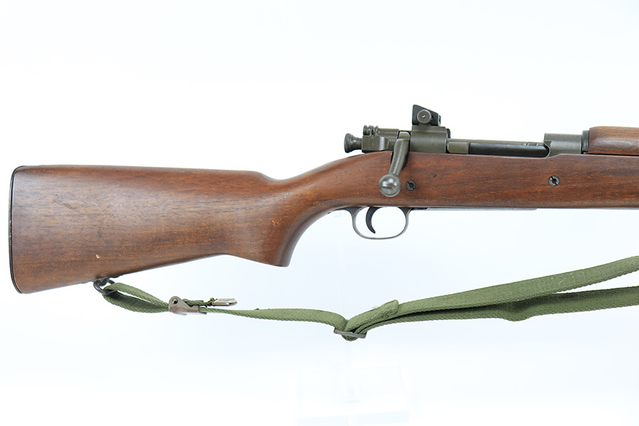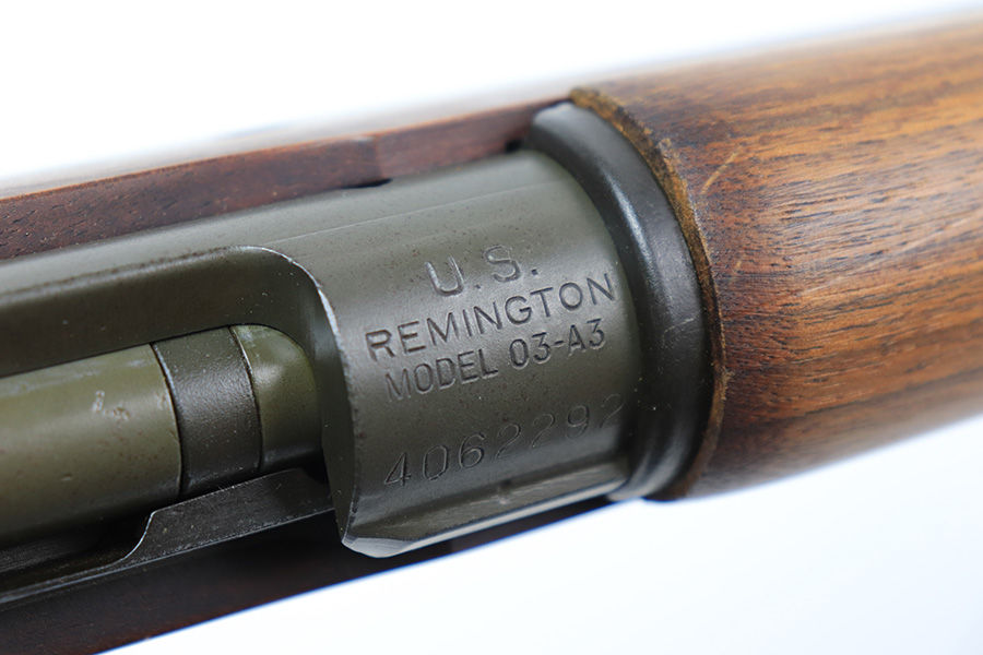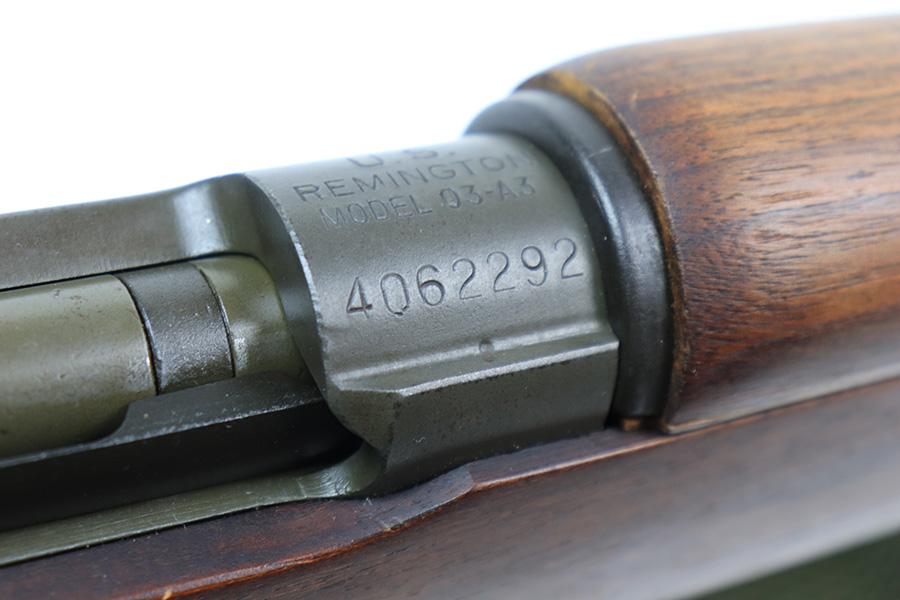 3/23/22 – This is a nice Remington 03-A3 rifle from World War II. Excellent finish on receiver and barrel but most of the wear is on the trigger group. Remington receiver, barrel and bolt. Barrel is dated to February of 1943. Terrific bore, would make a good shooter. The stock is unmarked and likely a replacement. Comes with a canvas sling.